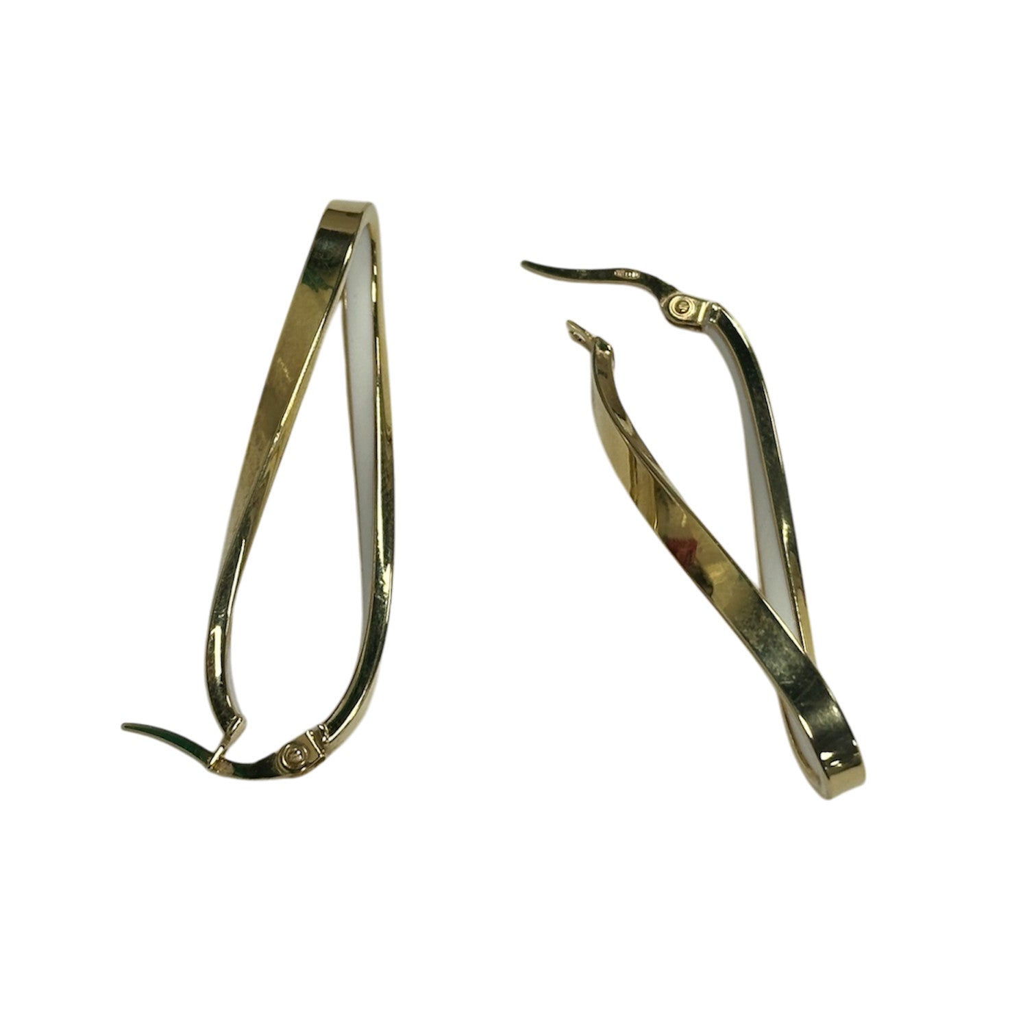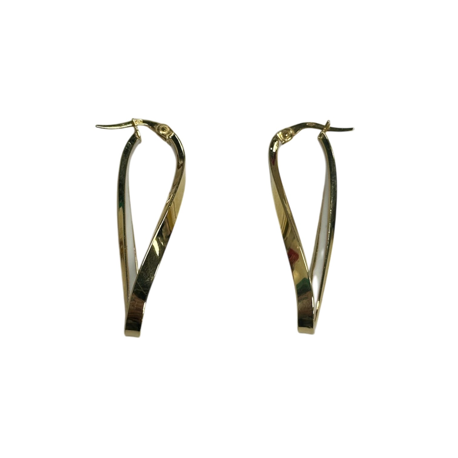 Magnifiques boucles d’oreilles en or jaune avec détail blanc à l’intérieur