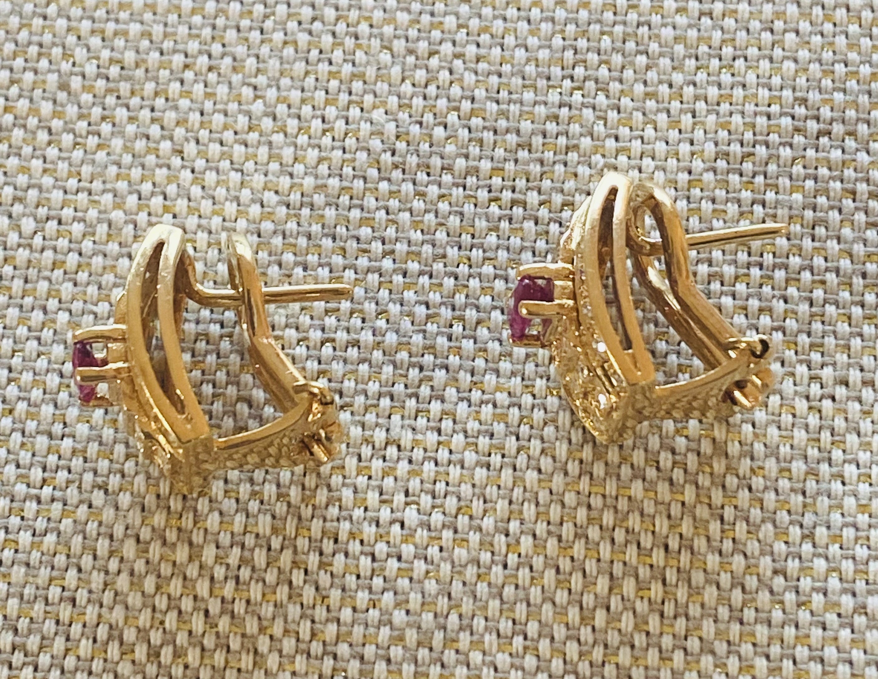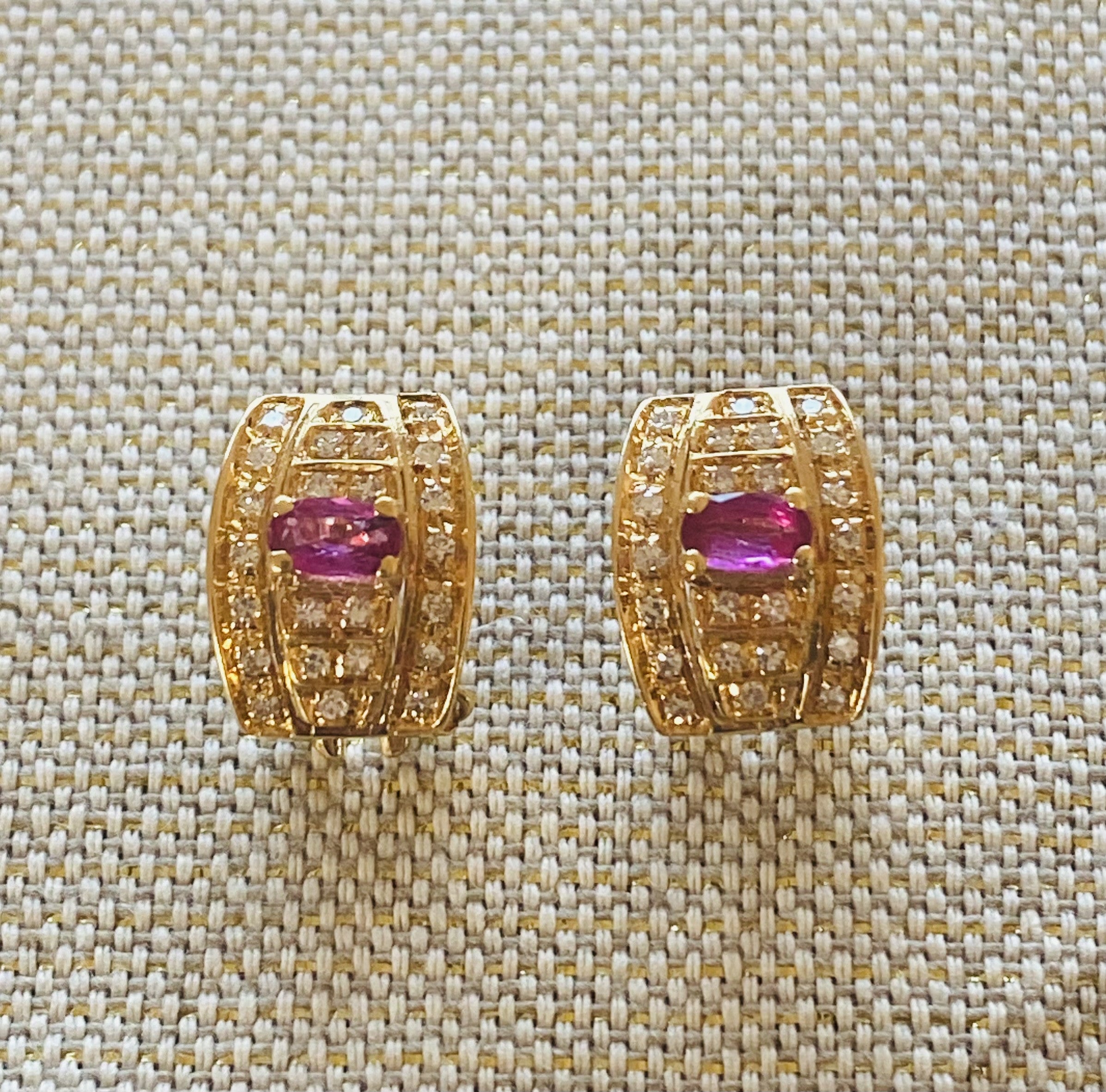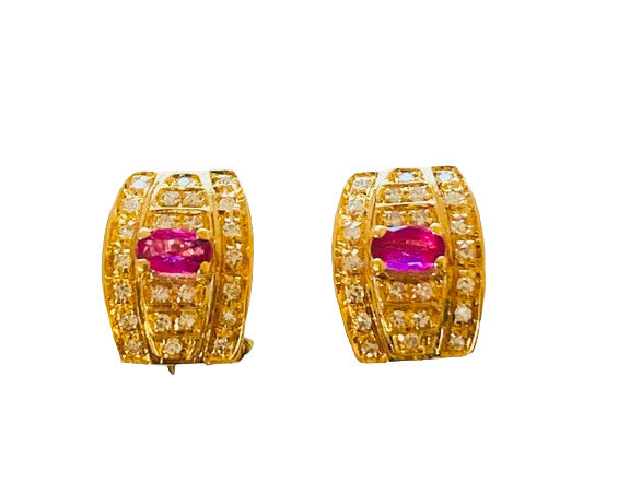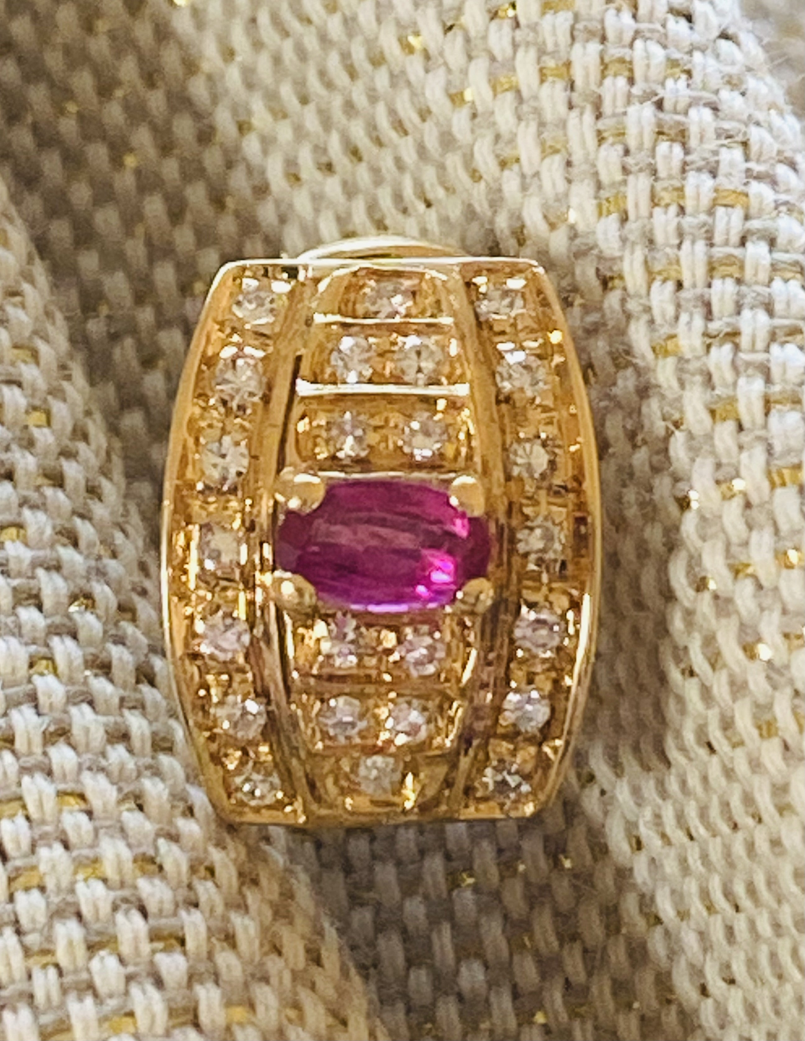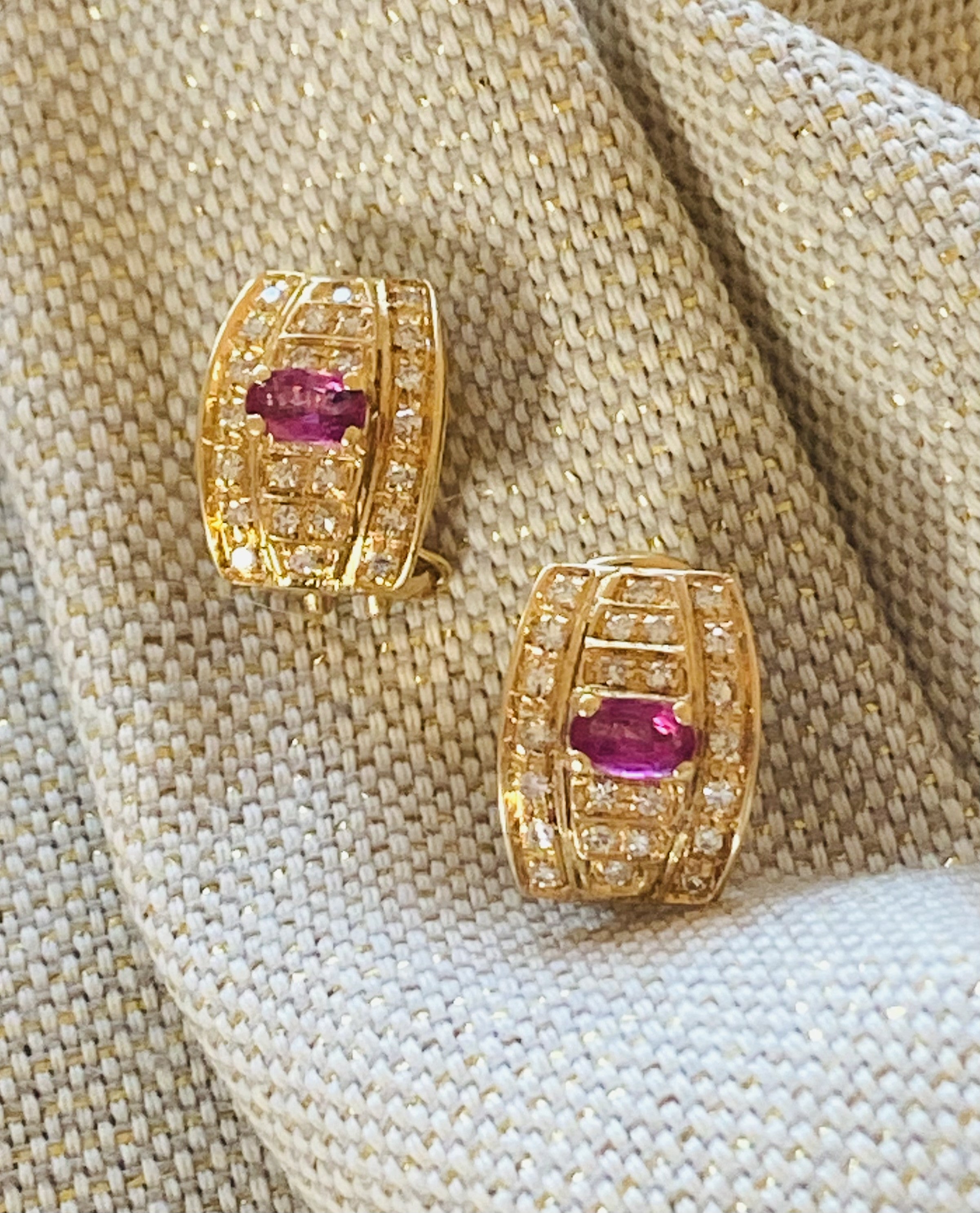 Magnifique boucle d’oreille avec fermeture oméga , serti de rubis et diamant ( 24 diamant sur chaque boucle ) poids total de diamant 0,5 carat environ