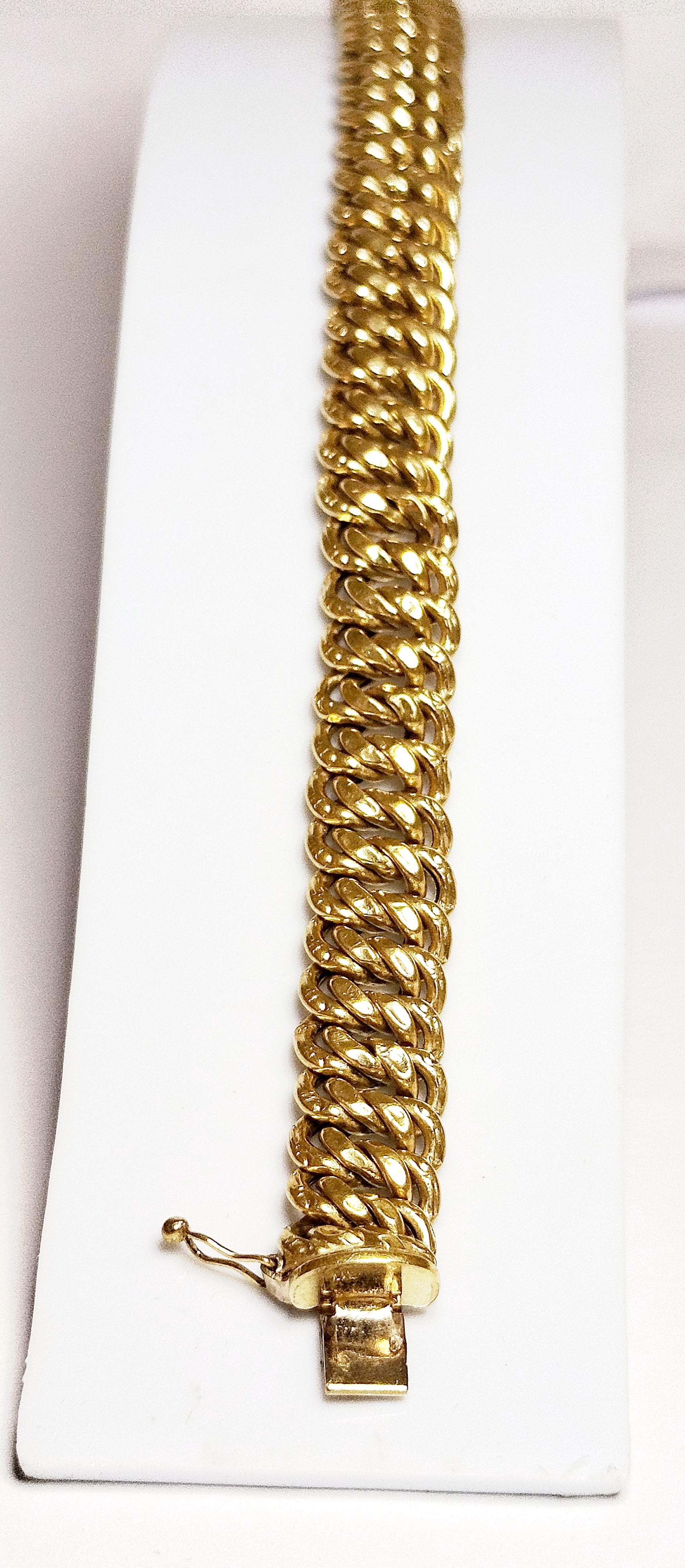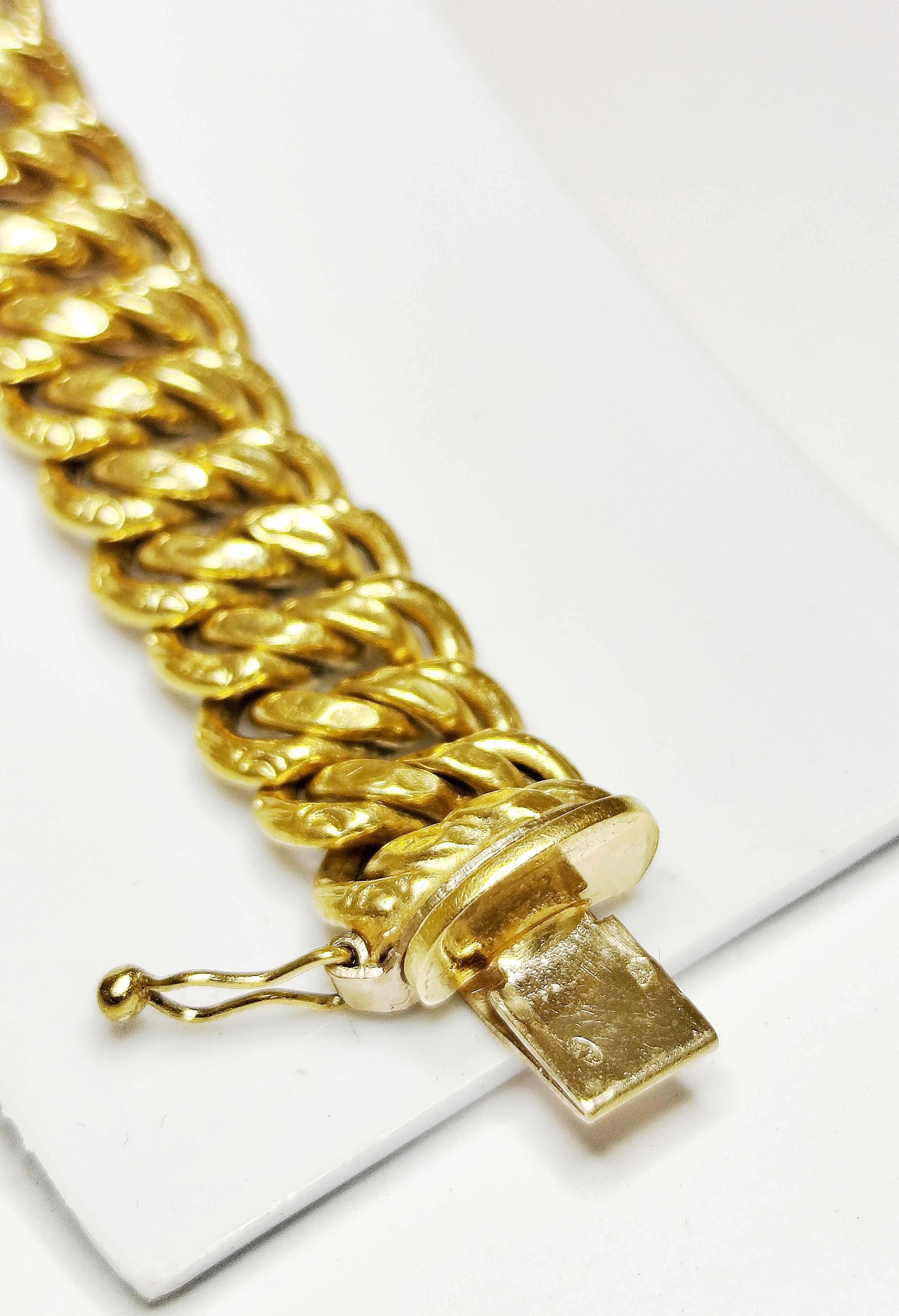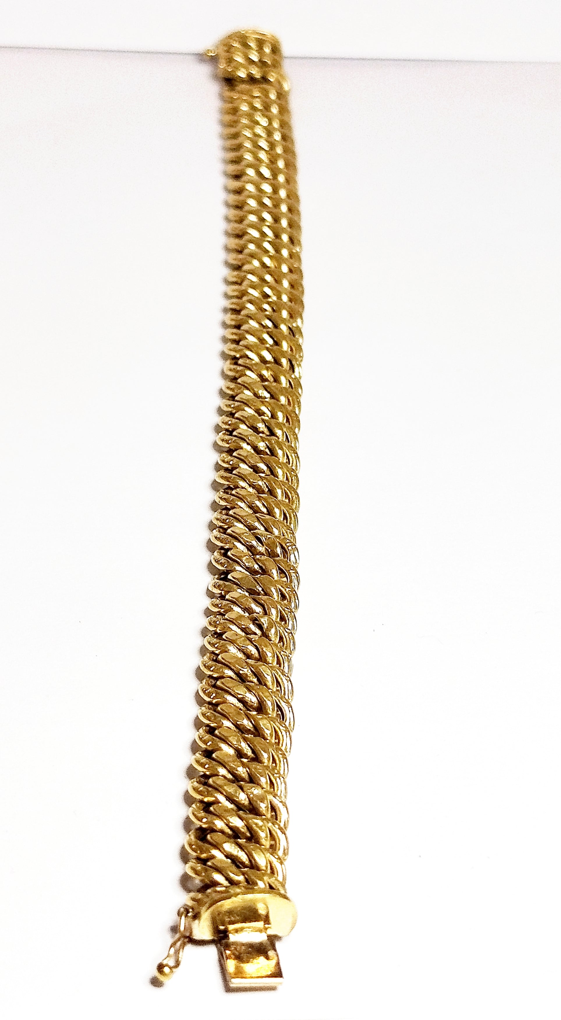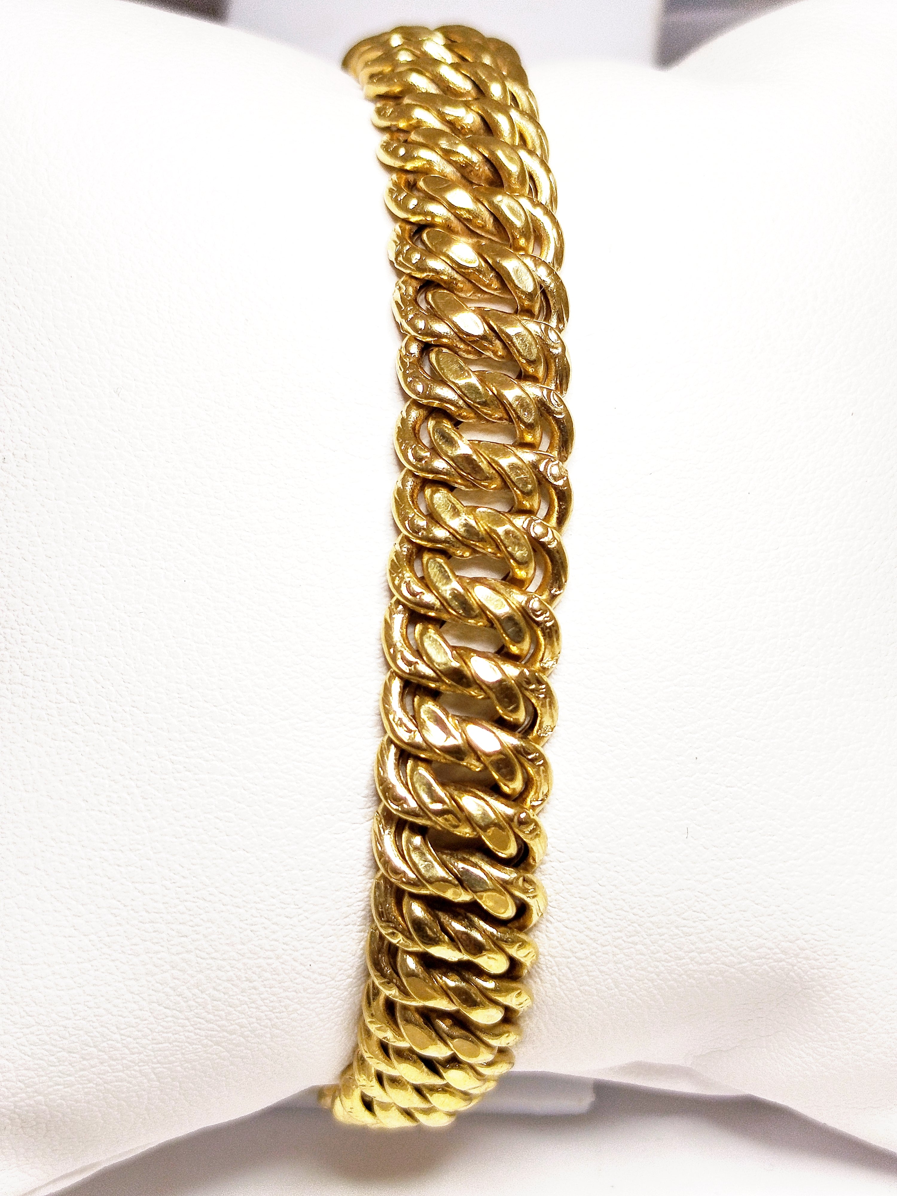 Bracelet et en maille américaine en or jaune 18 carats (750/1000), est à la fois élégant et facile à porter. Avec un fermoir a cliquet pesant 20,40 grammes avec une longueur de 20 cm.