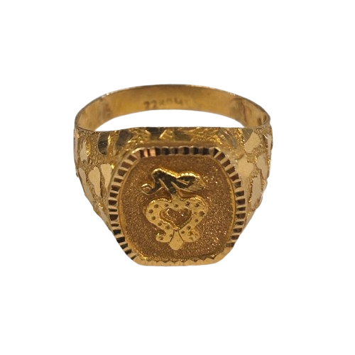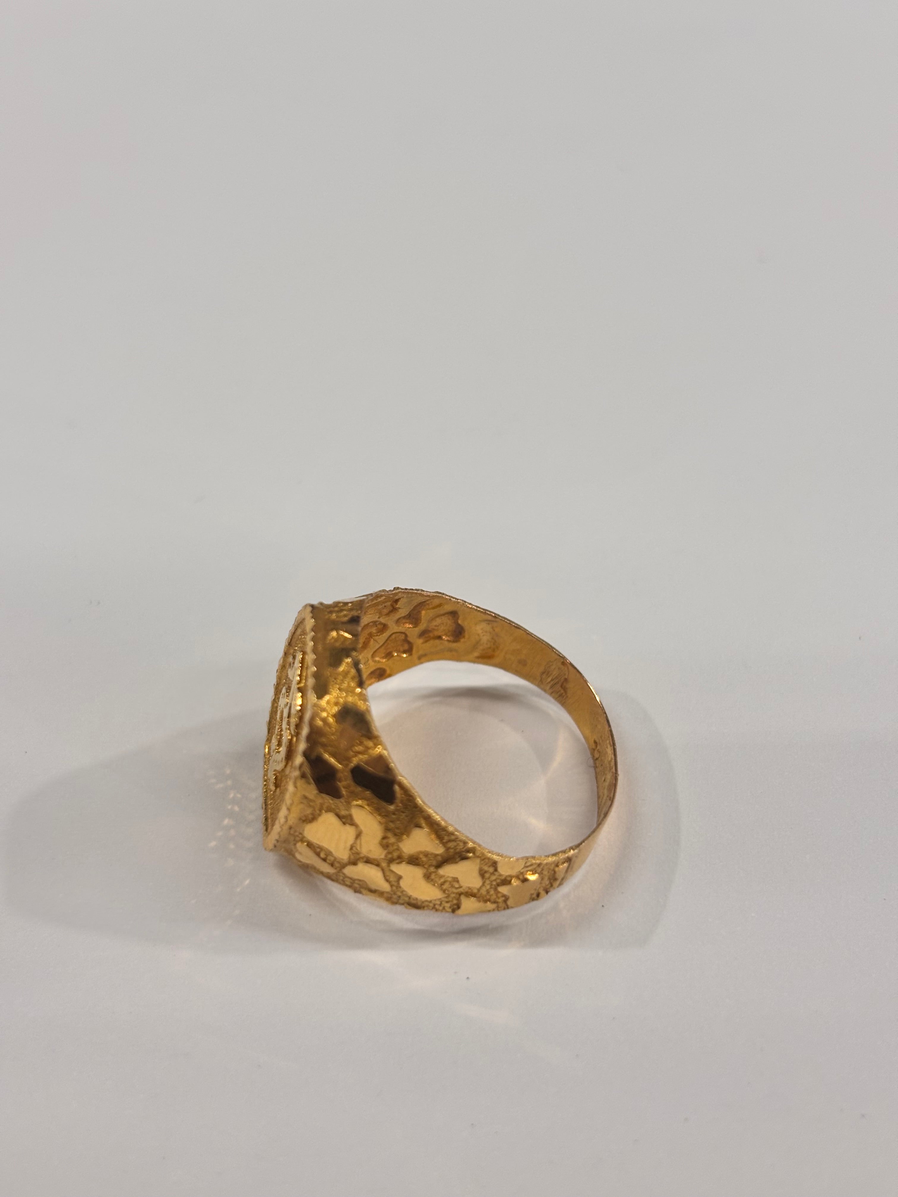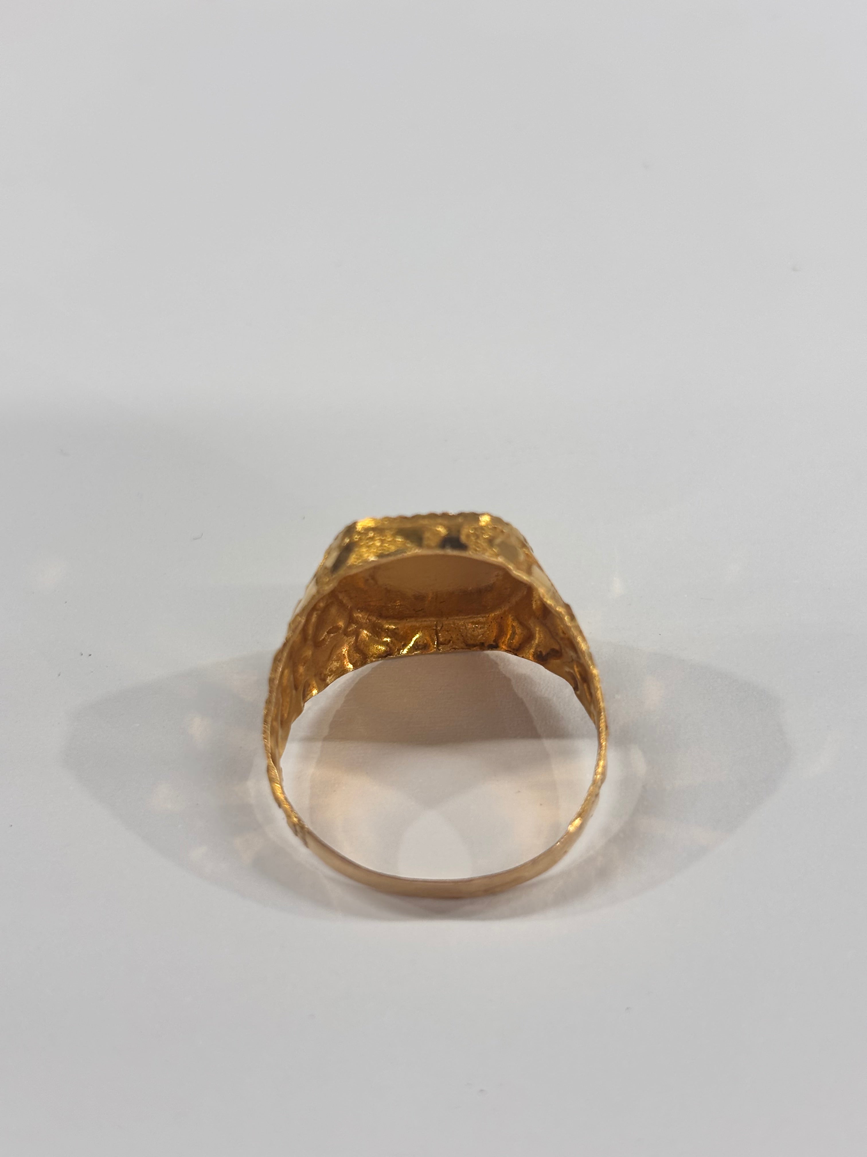 Chevalière en or jaune 22 carats (916/1000), poinçonnée 22k. Poids : 3,92 g. Taille : 60. Sans pierre. Très bon état.