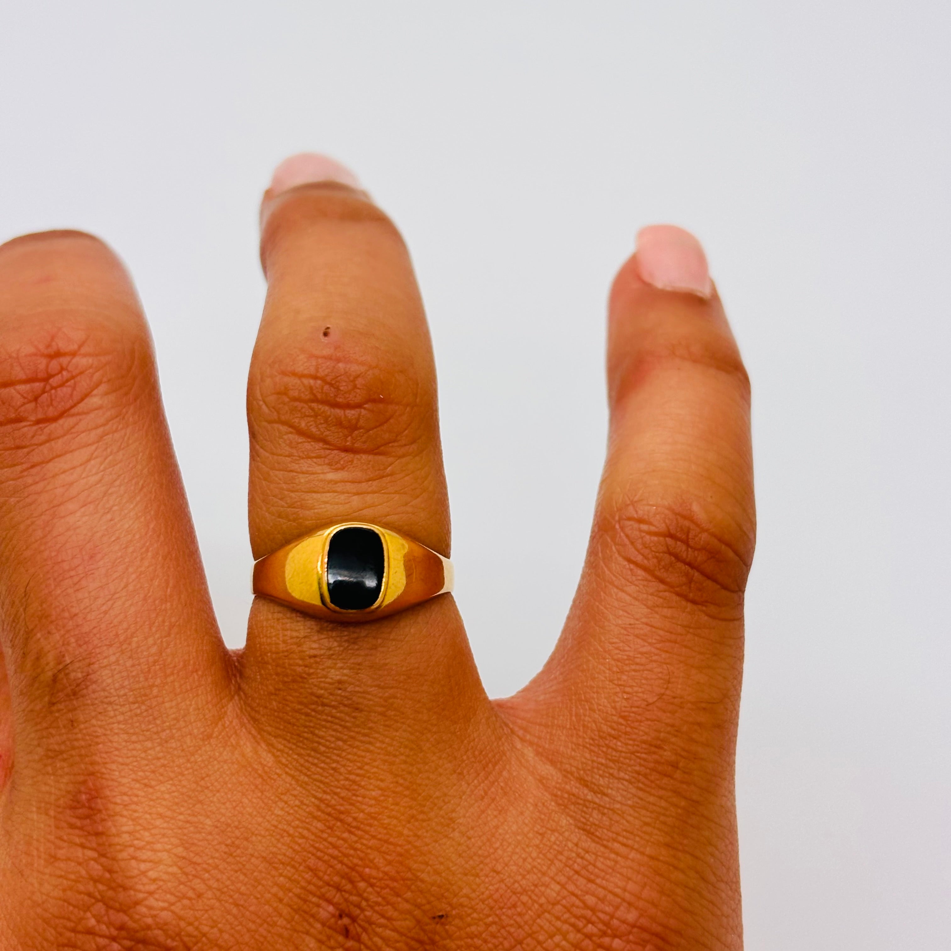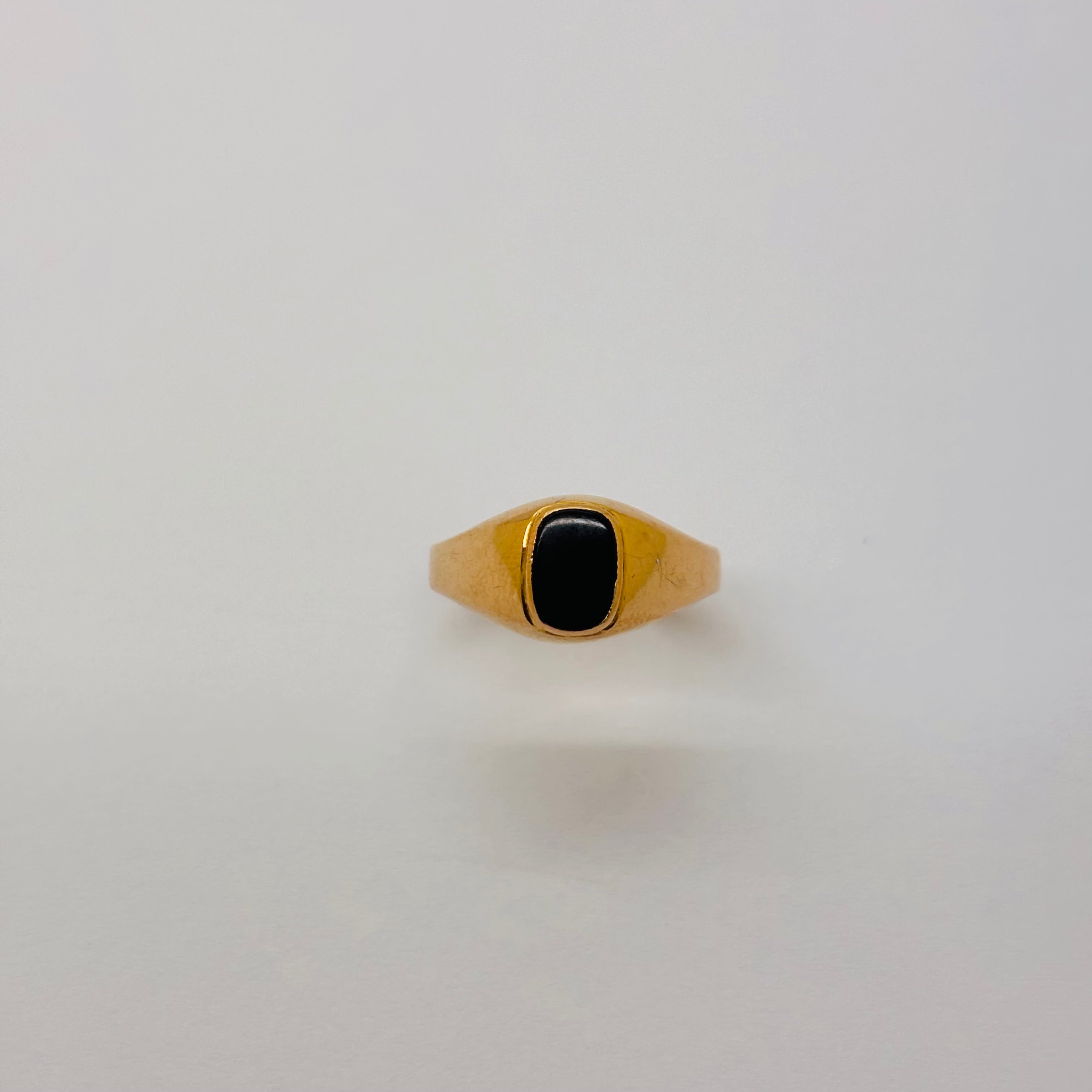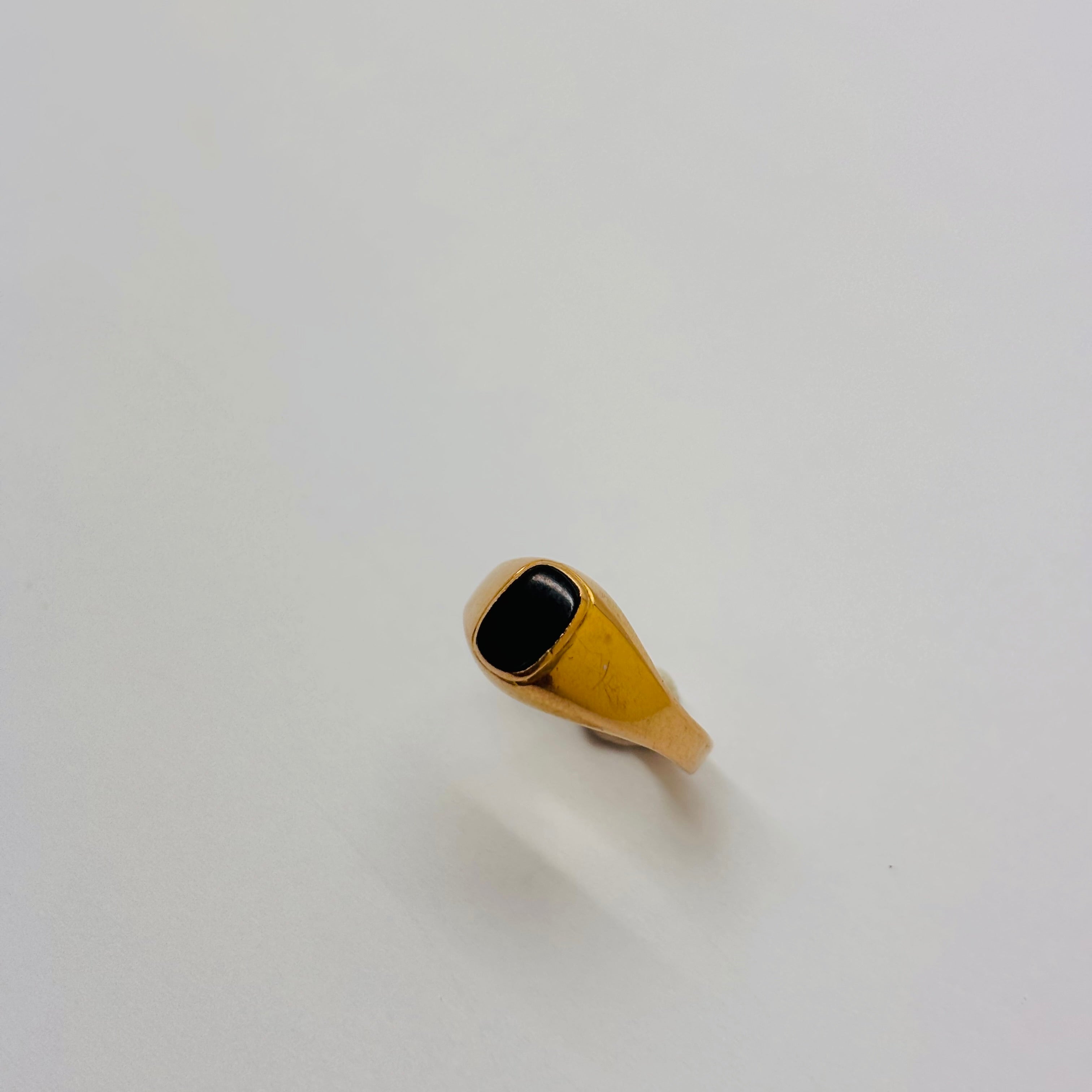Magnifique chevalière en or jaune 18 carats (750/1000), ornée d’un onyx central.