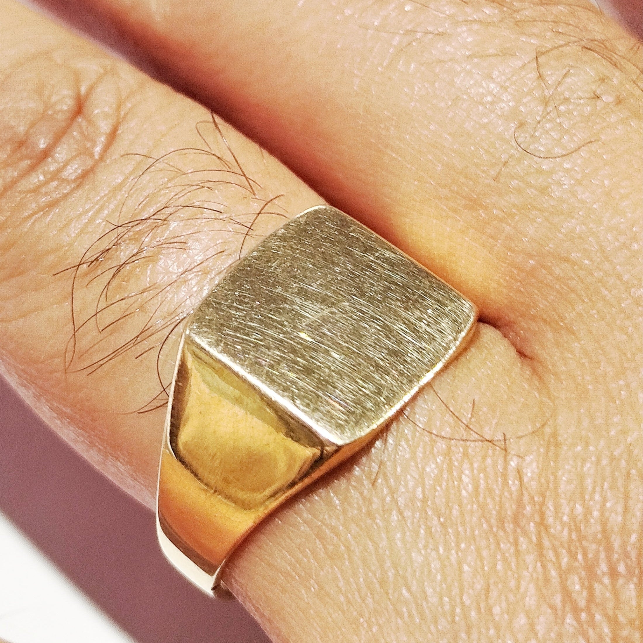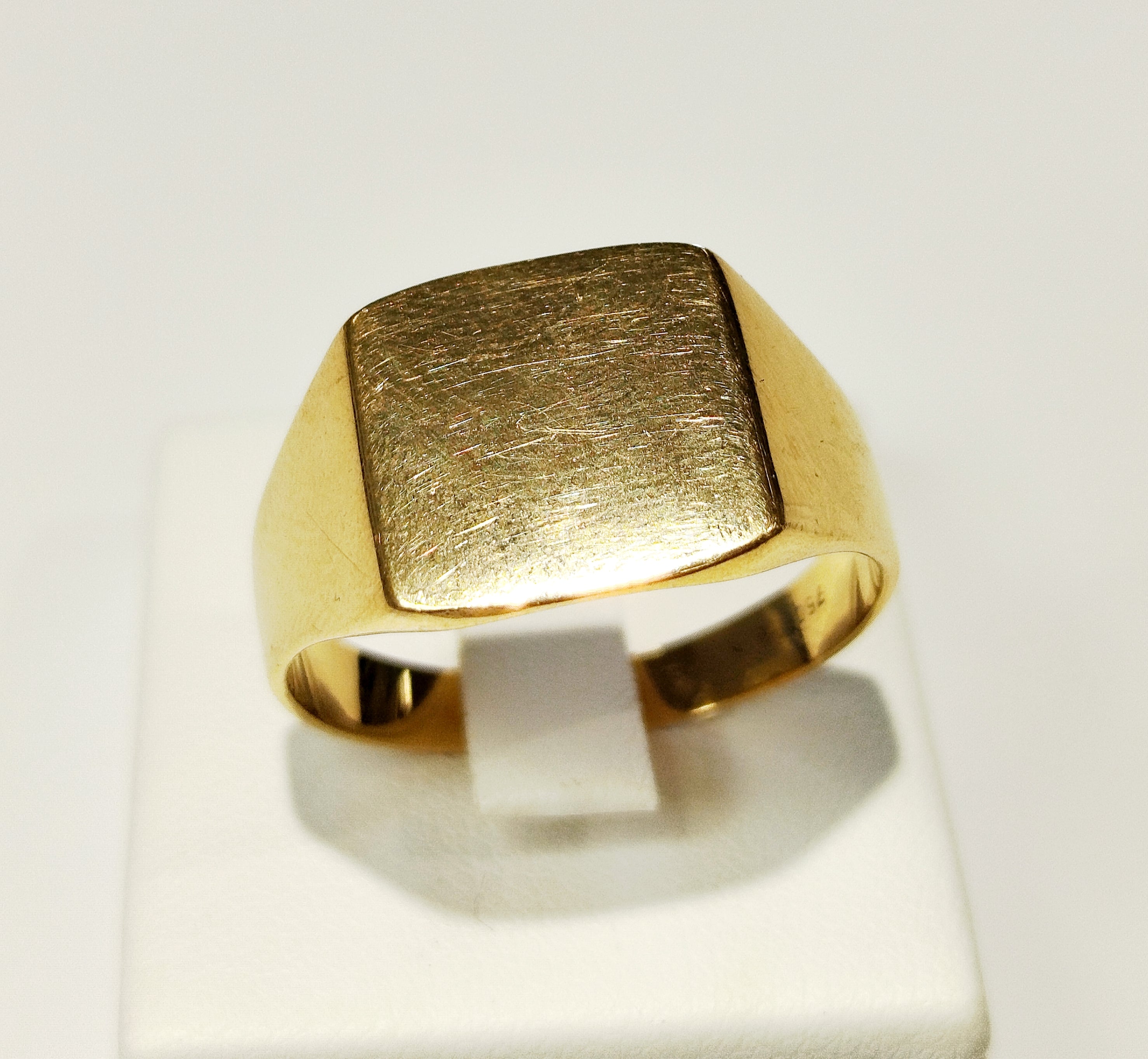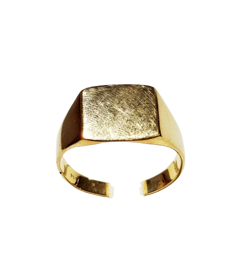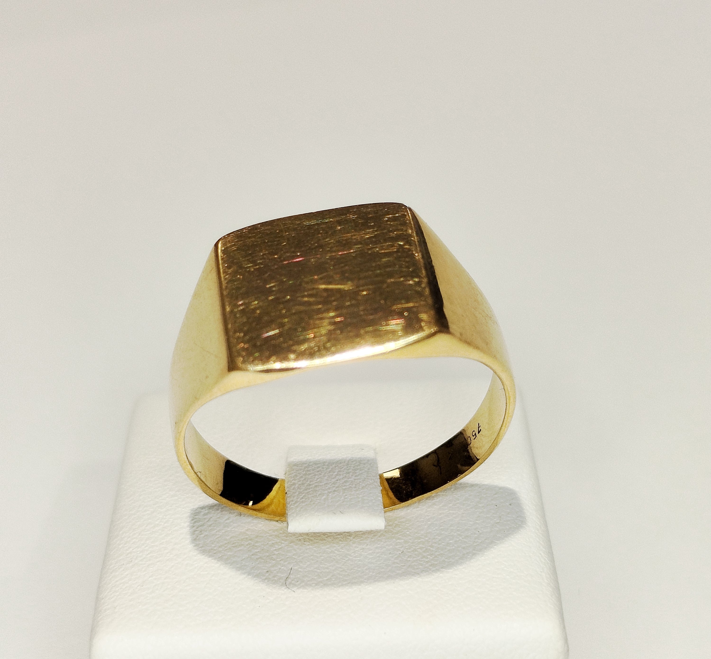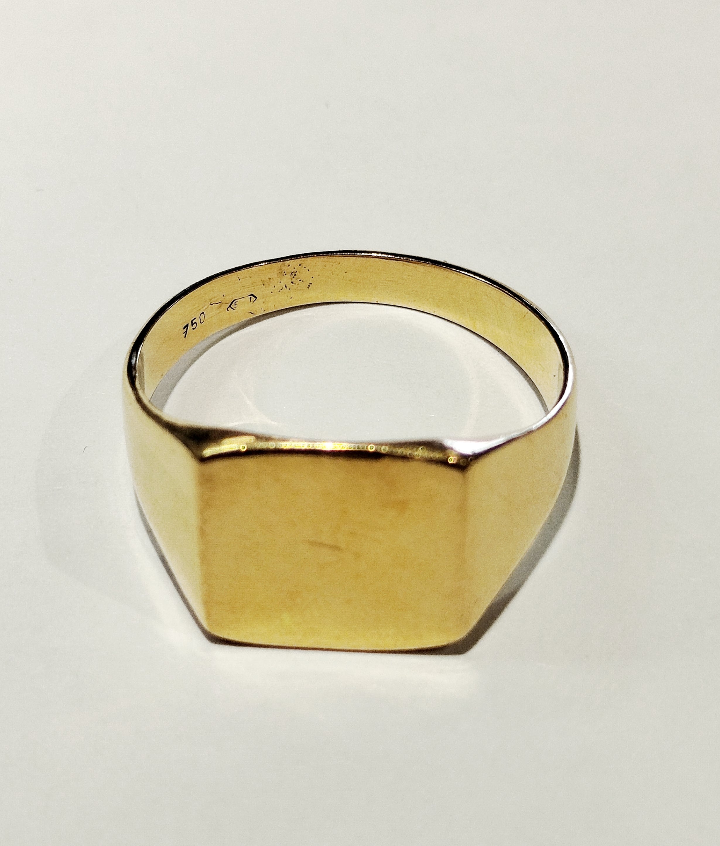 Bague de type chevalière en or jaune 750/1000 (18 carats), poinçonnée 750, d’un poids de 7,95 g et de taille 68. Cette pièce sobre, sans pierres, est en bon état.