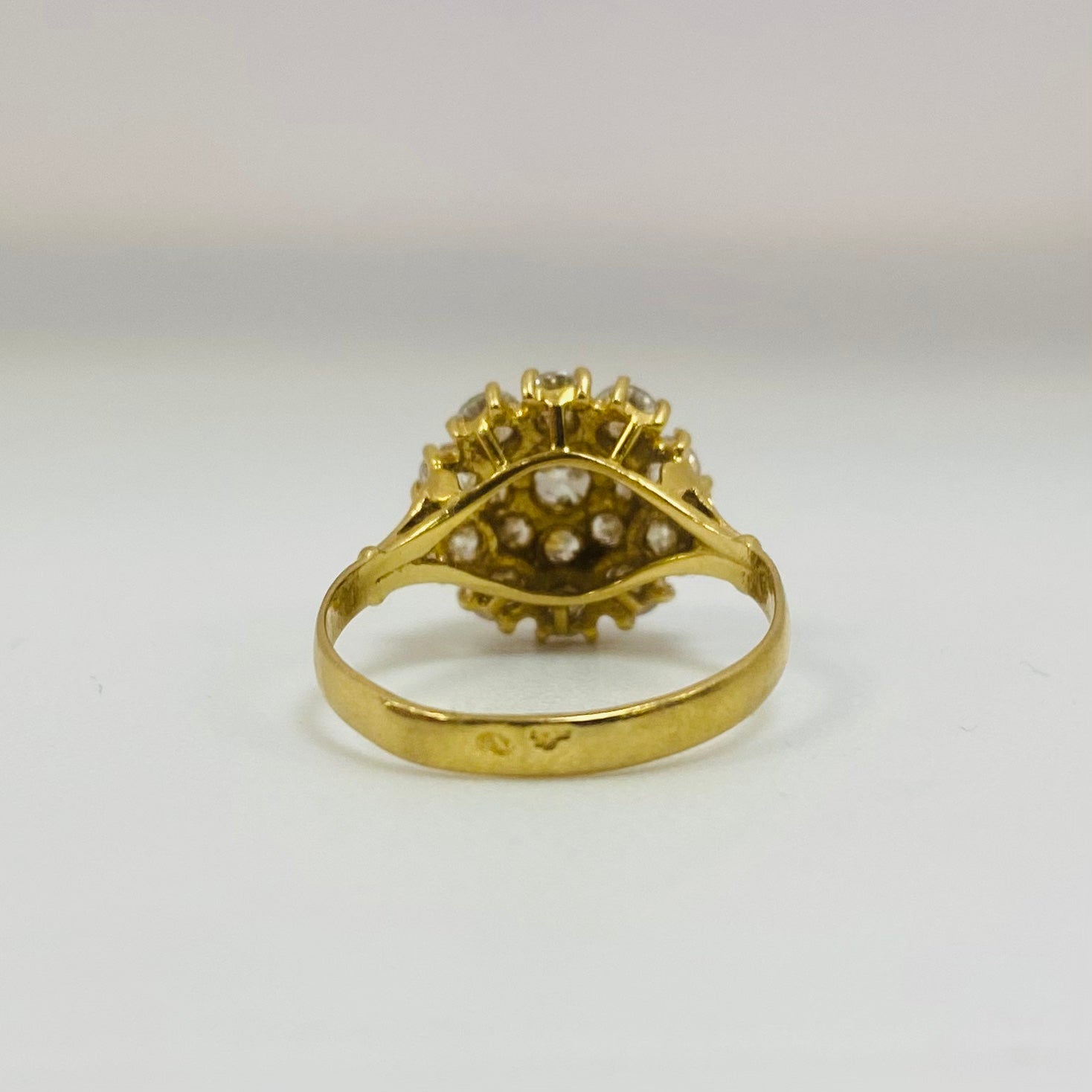 Élégante bague Chou en or jaune 18 carats, sublimée par 20 zirconiums étincelants. Un bijou raffiné et lumineux, taille 52, poinçonnée 750, pour un poids de 3,80 g. En très bon état, parfaite pour ajouter une touche d’éclat à votre quotidien.