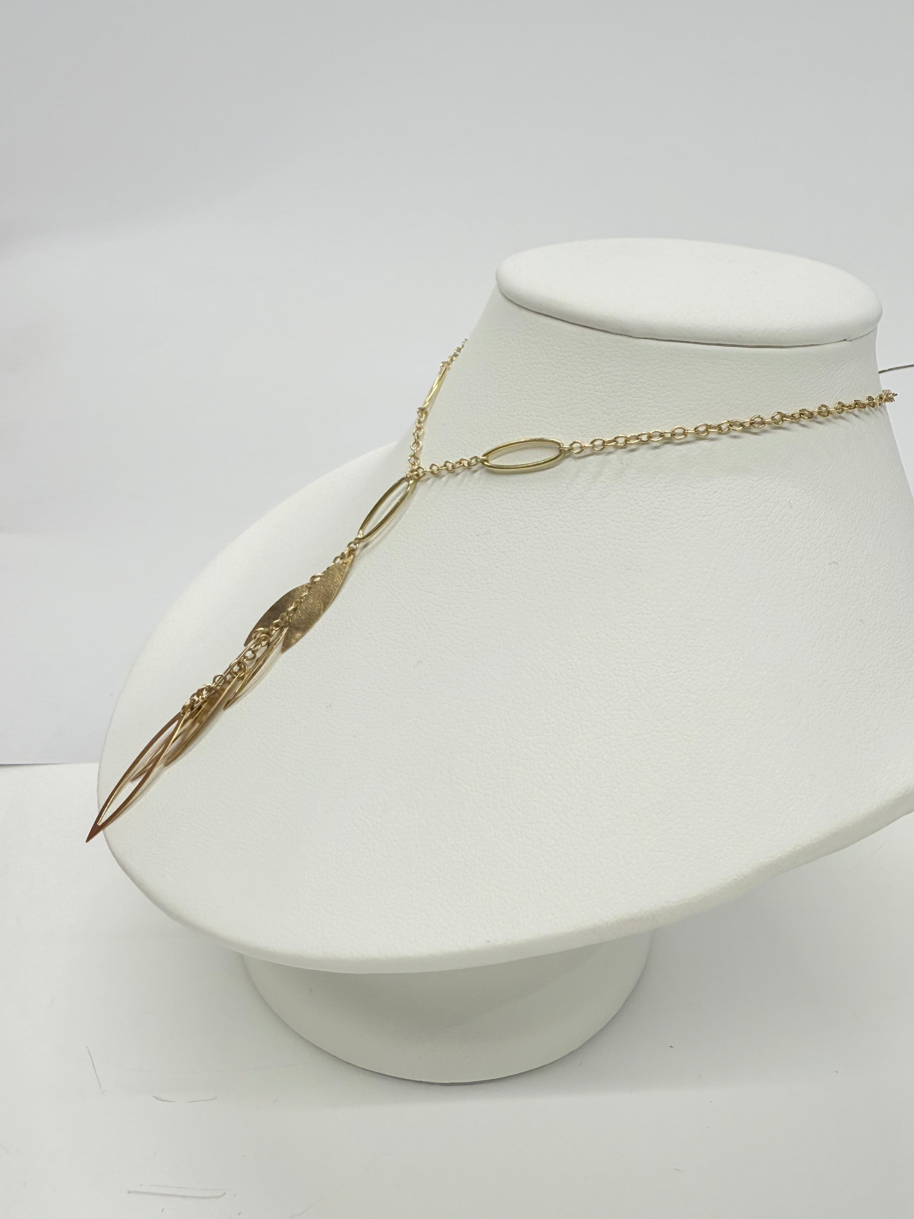 Collier en or jaune 18 carats (750/1000), poinçonné 750, avec une maille forçat fine et élégante. Pesant 5,13 grammes et mesurant 41 cm de longueur, il est parfait pour celles et ceux qui recherchent un bijou alliant simplicité et sophistication. Son pendentif en forme de feuille apporte une touche naturelle et poétique à son design intemporel.