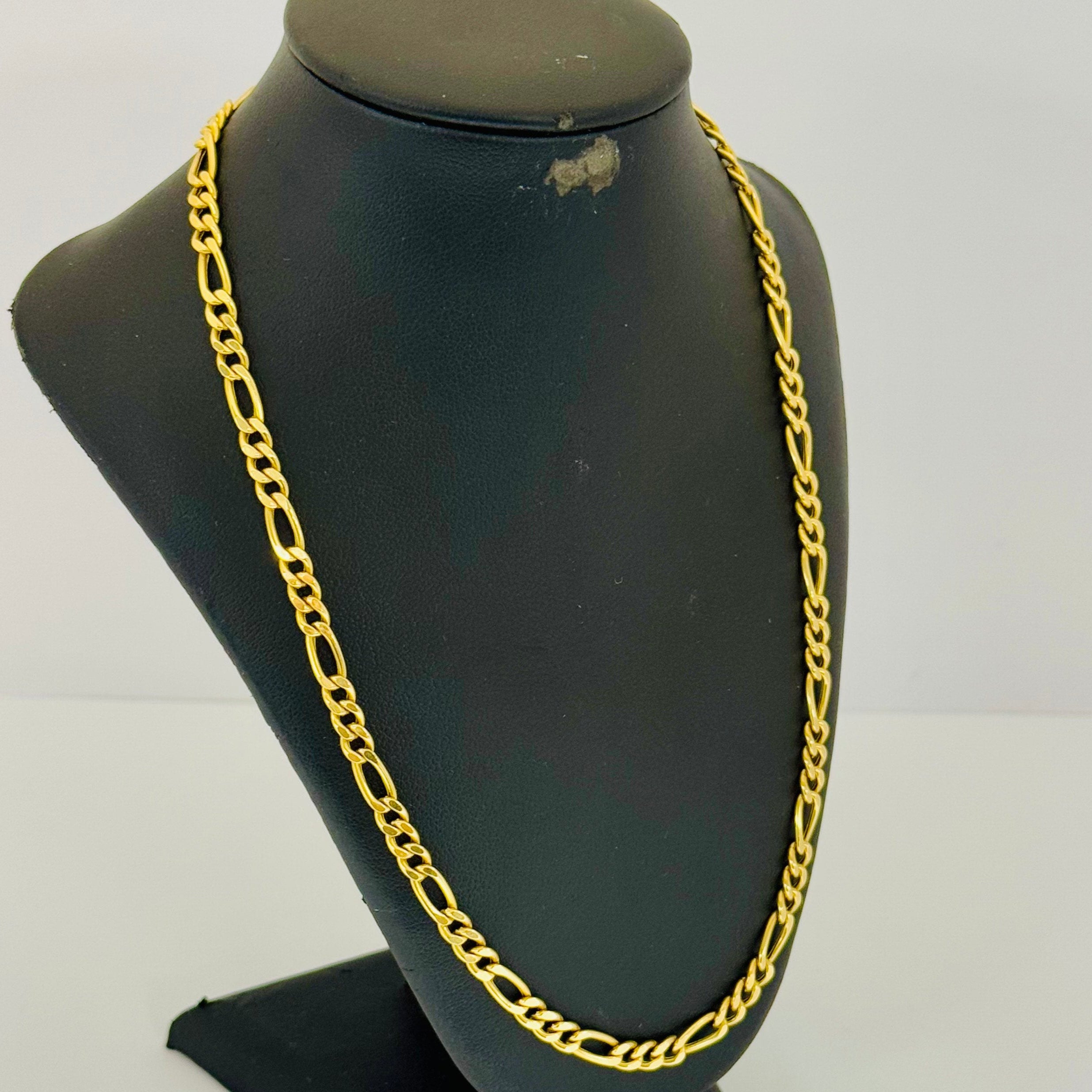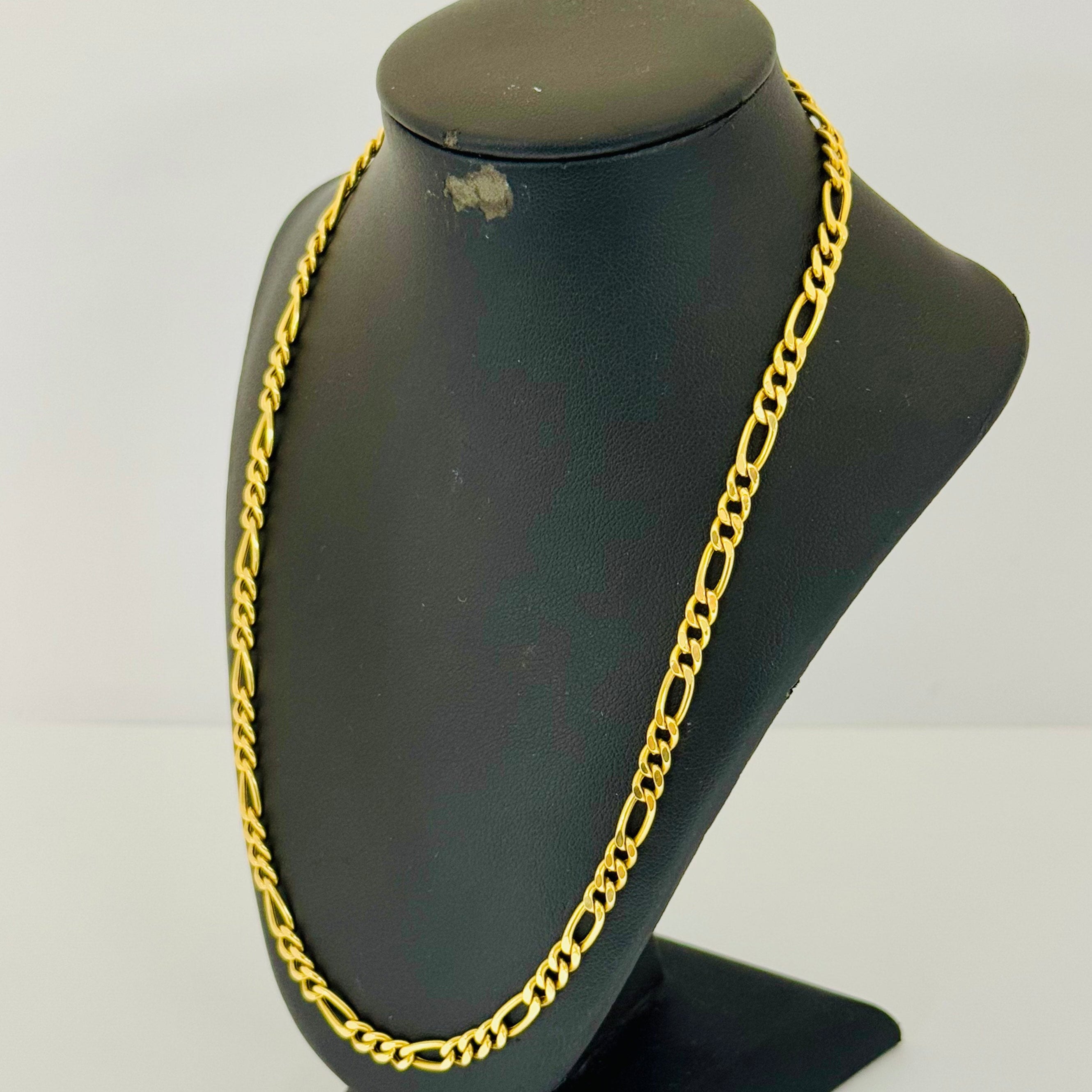 Collier de type matinée en or jaune 18 carats (750/1000) est composé d'une maille Figaro, alliant élégance et solidité. Il mesure 60,5 cm de longueur, 5 mm de largeur et 3 mm d’épaisseur, pour un poids total de 13,39 grammes. Équipé d’un fermoir mousqueton sécurisé et poinçonné 750, ce bijou se présente en très bon état général.