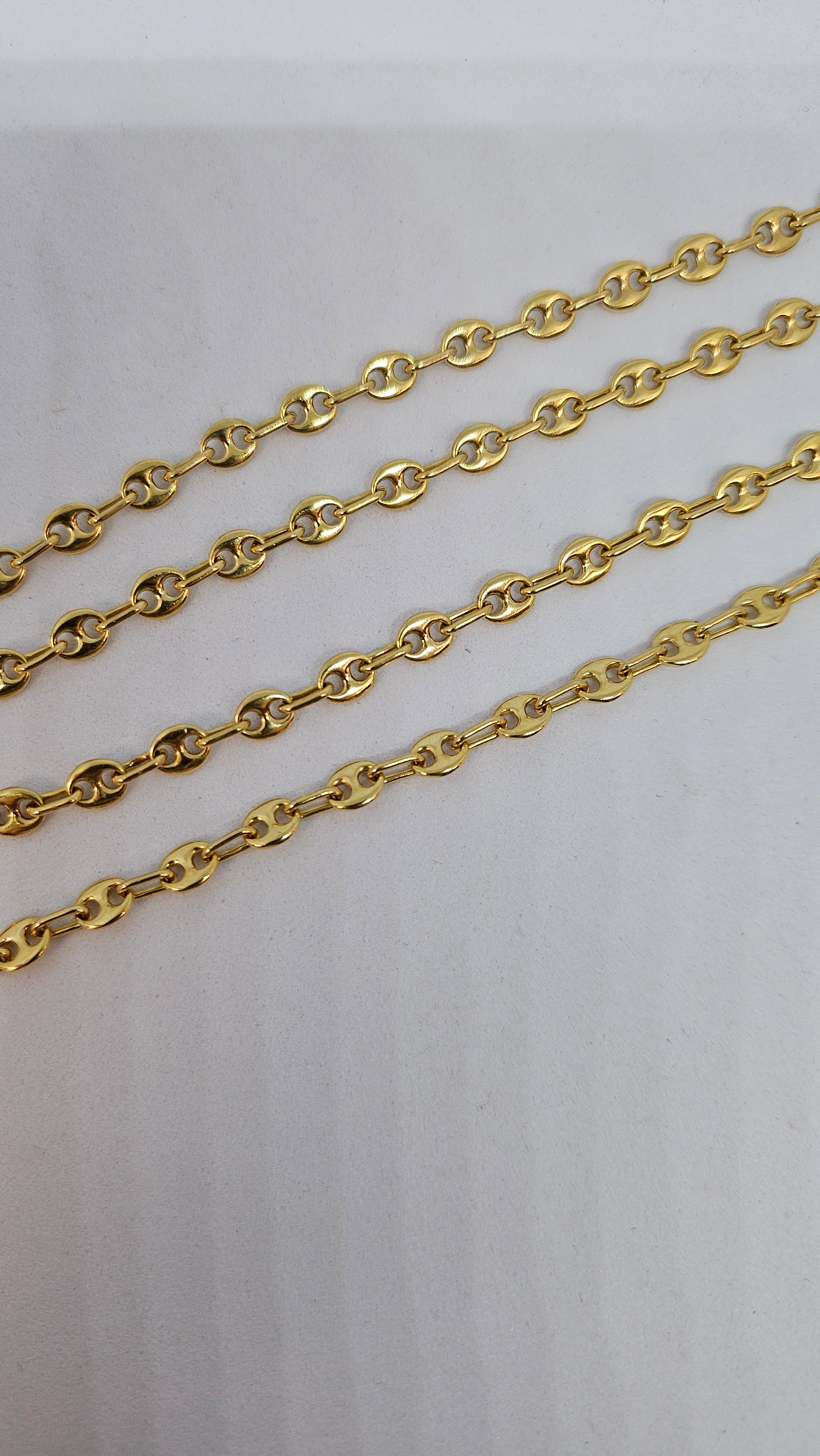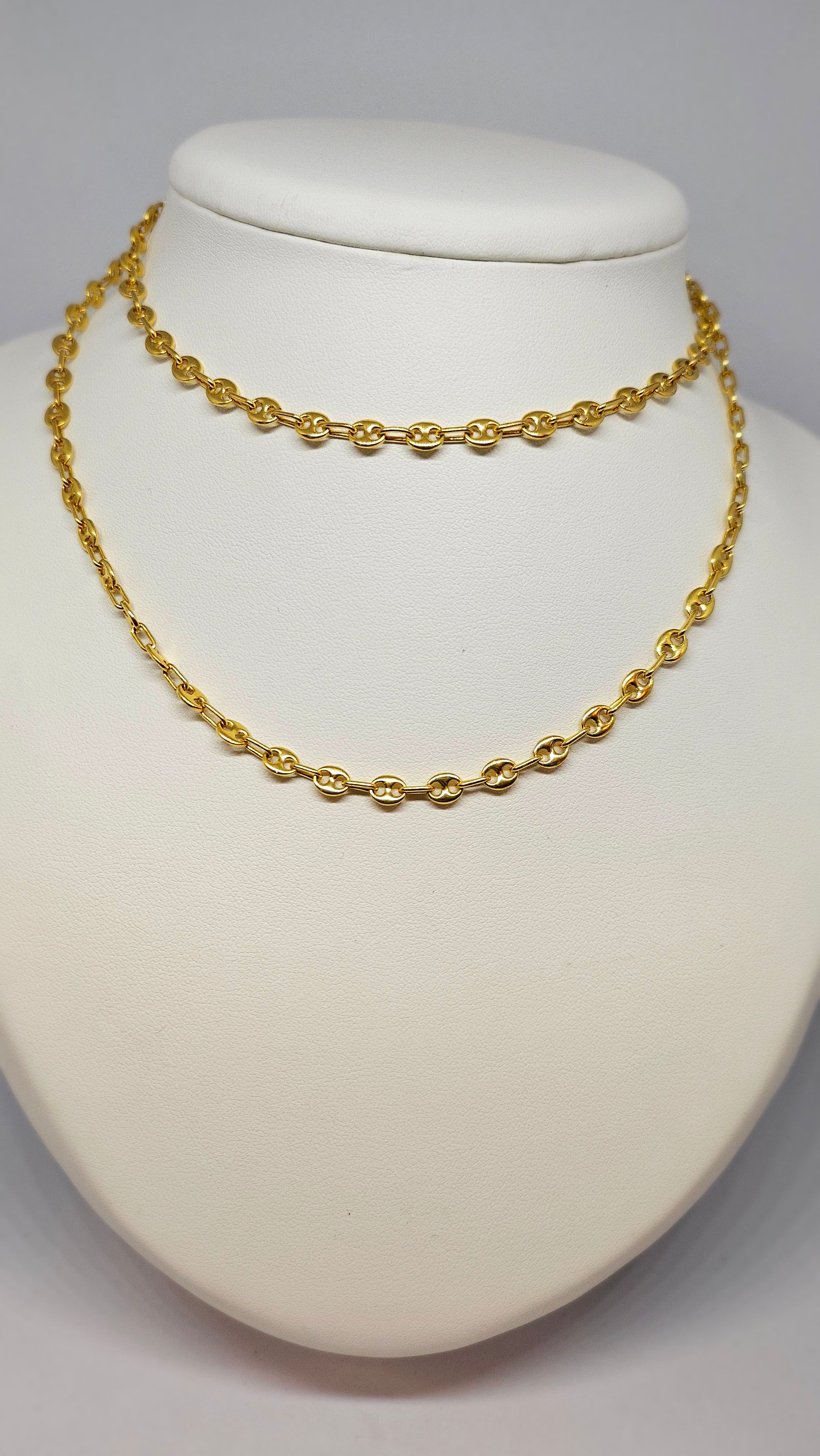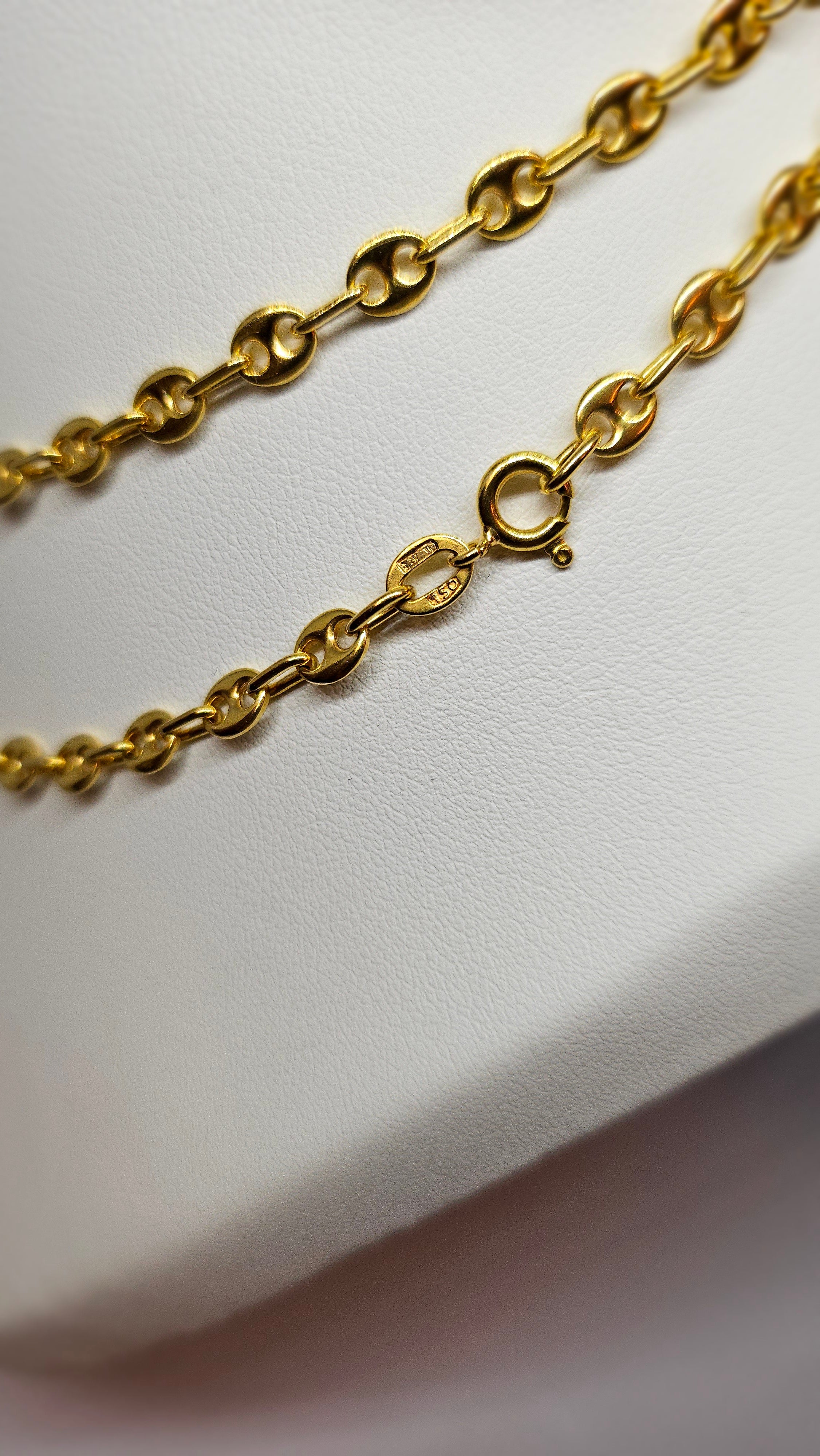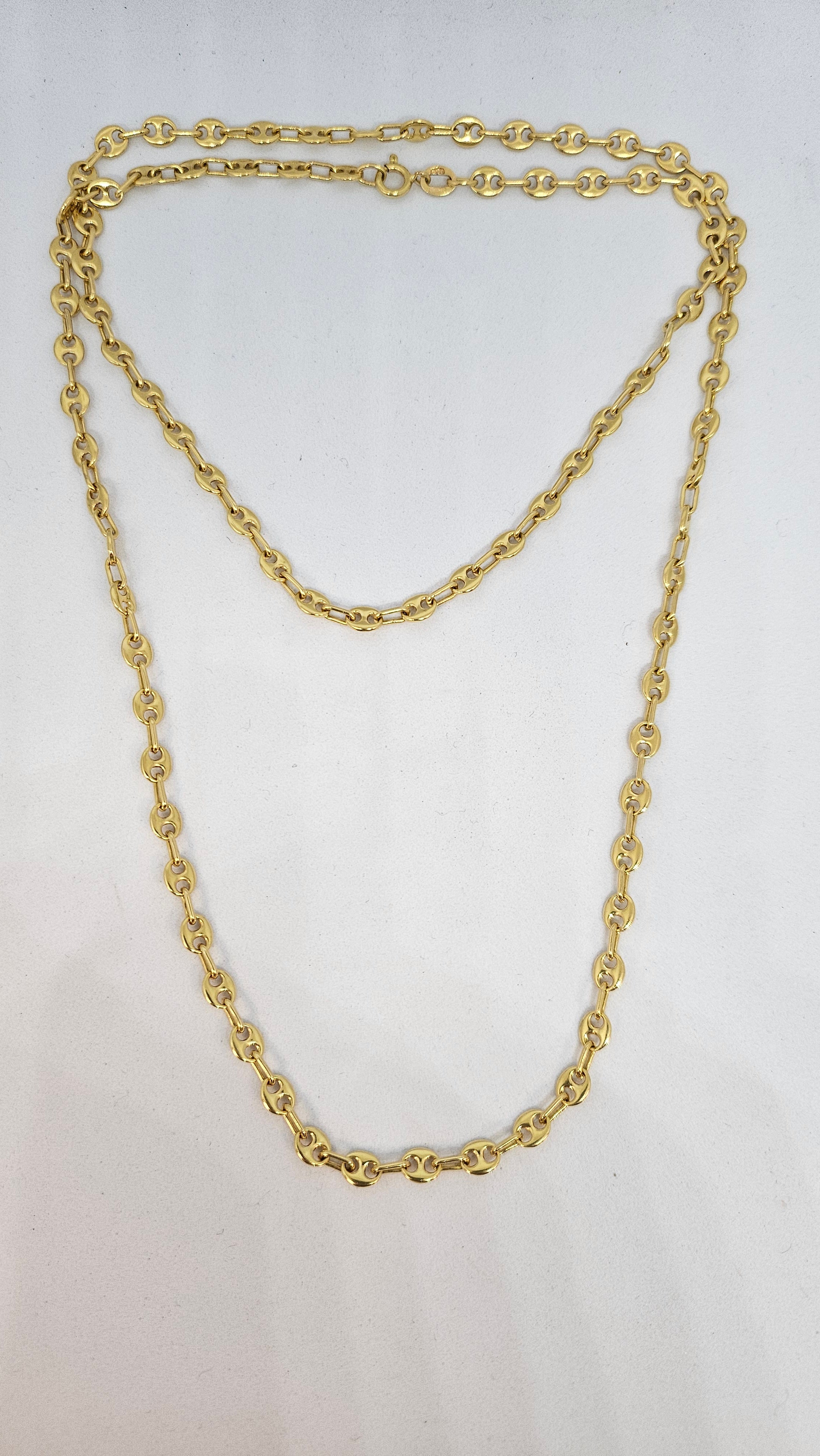 Cette chaîne matinée en or jaune 18 carats, avec sa maille grain de café, incarne l’élégance et la finesse. Son poinçon 750, son poids de 26,23 g et sa longueur de 75 cm en font une pièce majestueuse, parfaite pour sublimer votre style avec distinction.