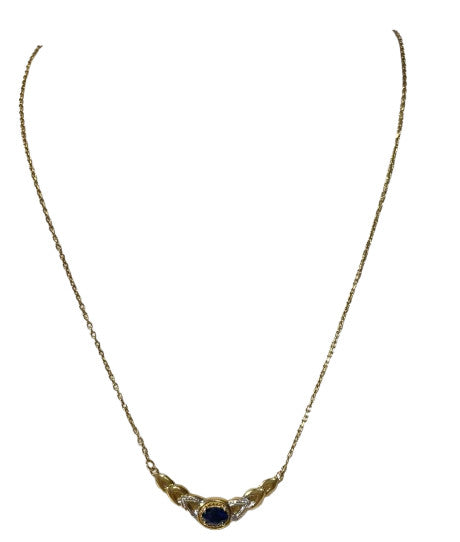 Ravissante chaîne fine avec pendentif serti avec pierre bleue