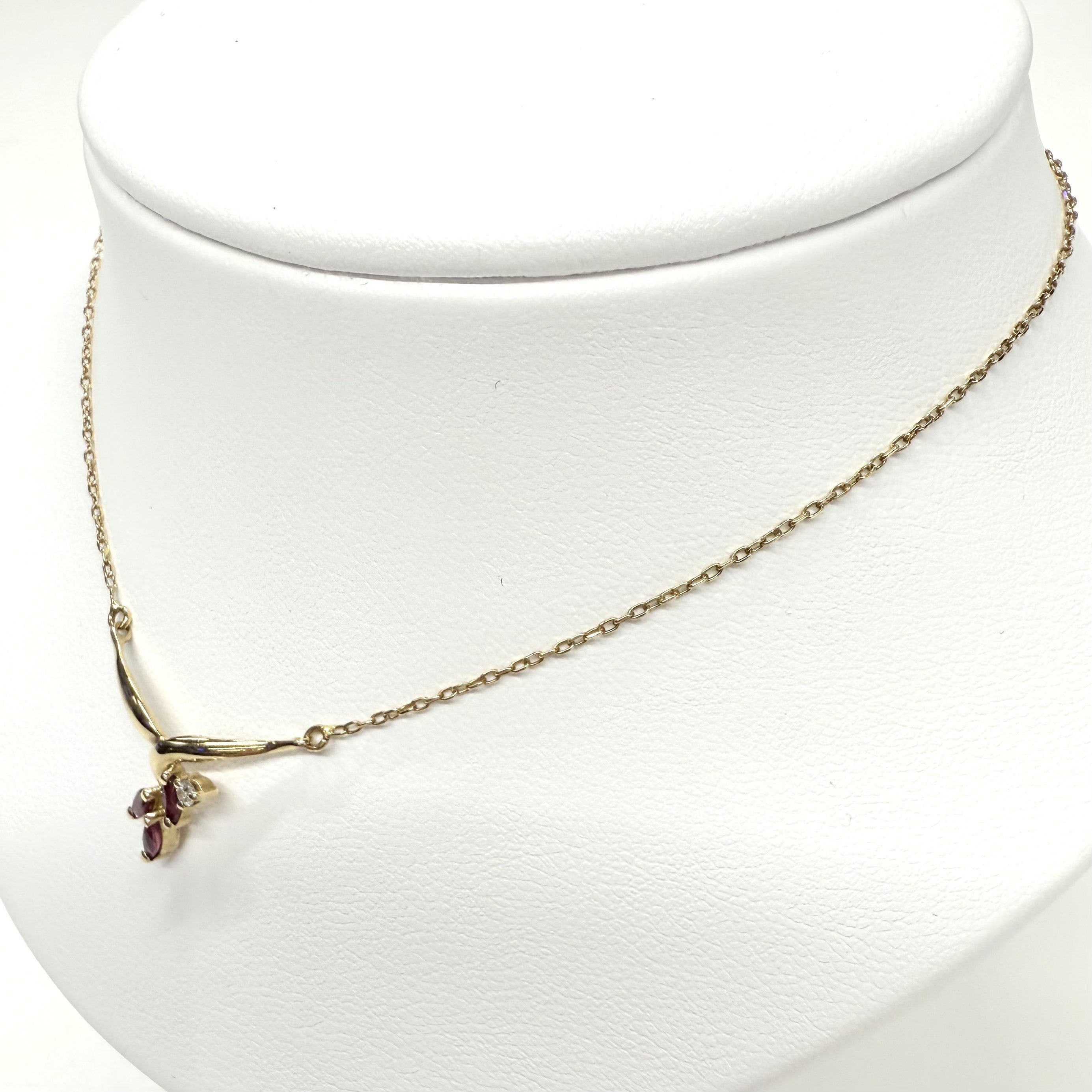 Magnifique collier en or jaune 18k avec 3 rubis et un diamant