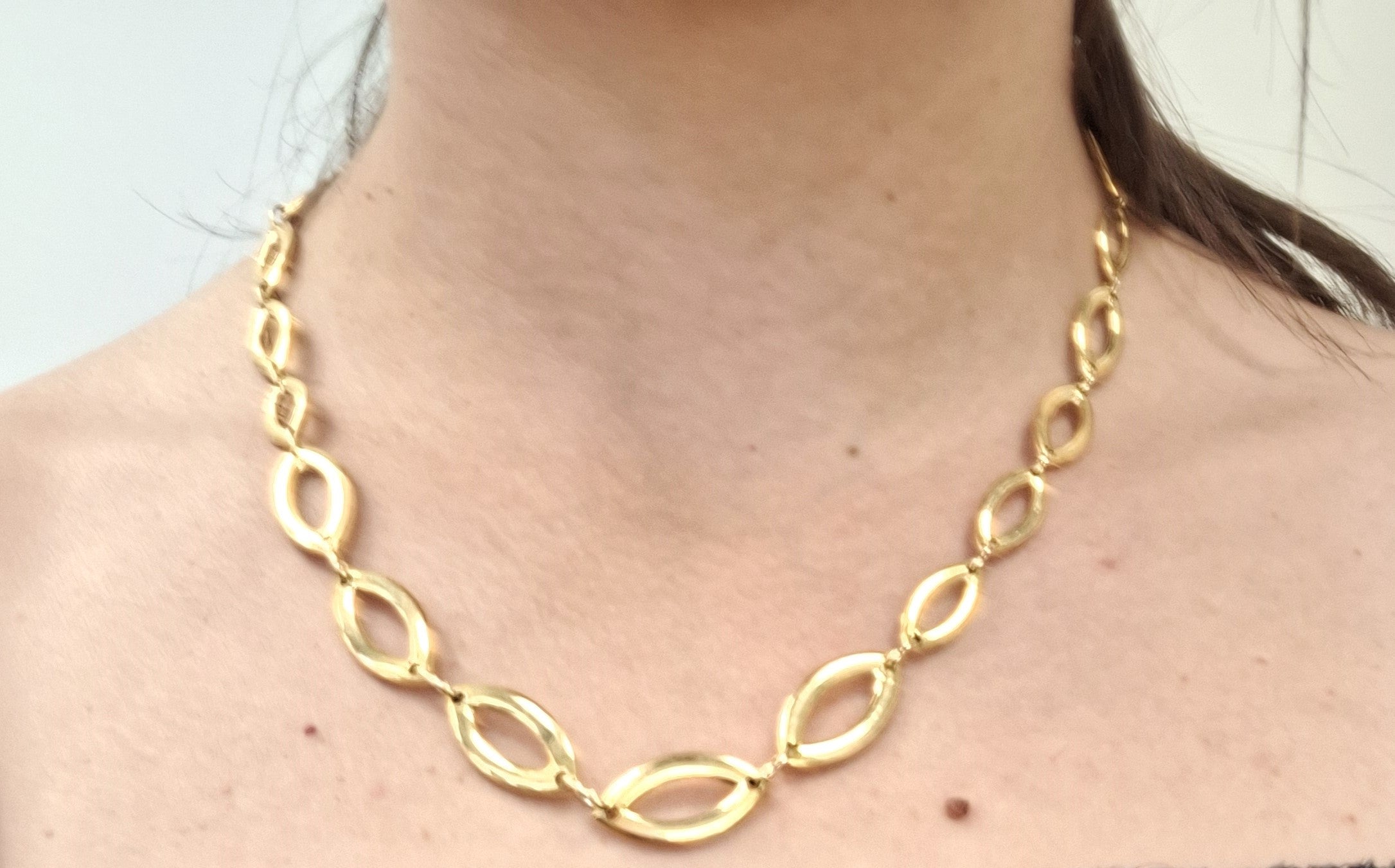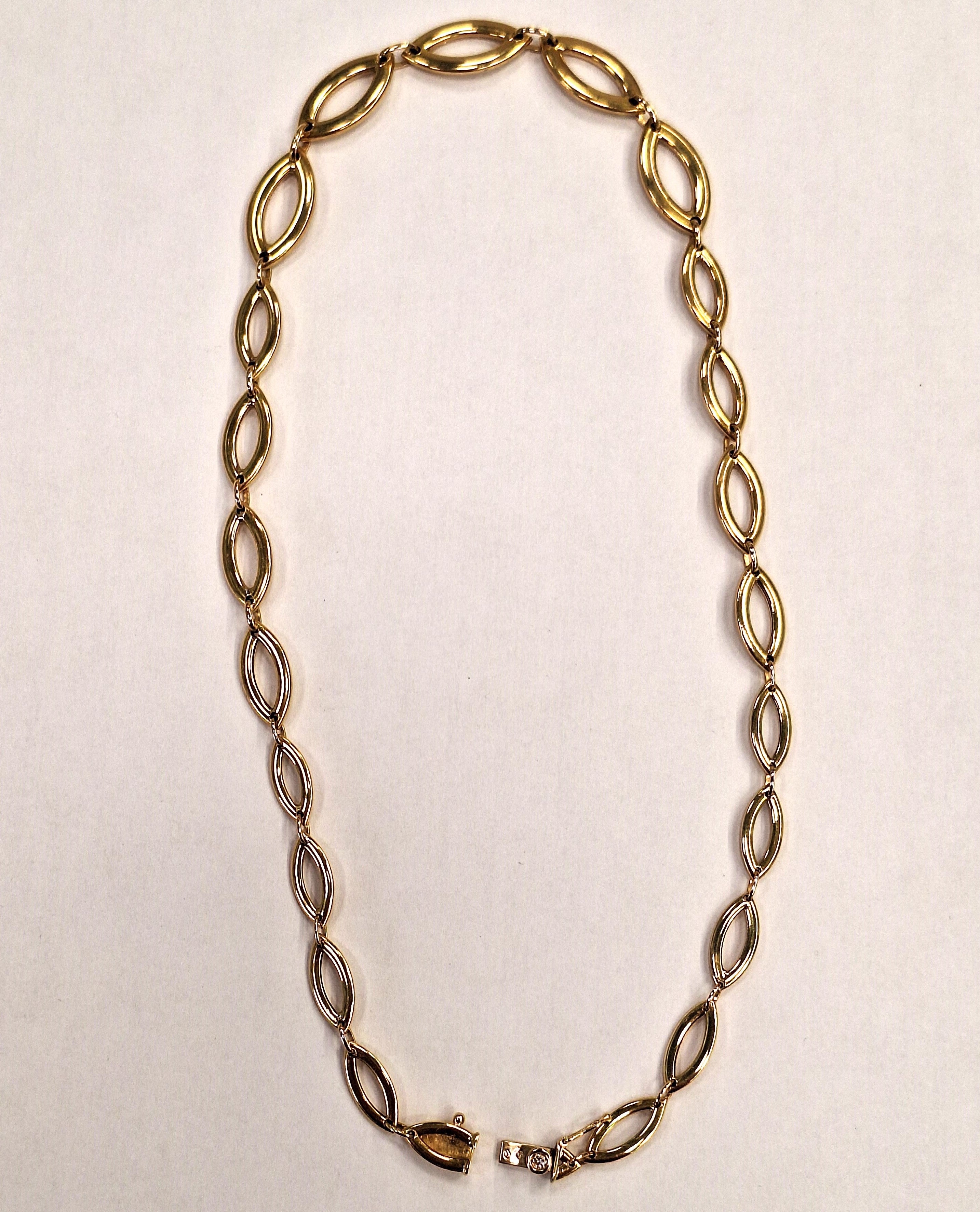 Très joli collier en or jaune 18 carats serti d'un diamant de 0.02 carats au niveau du fermoir.