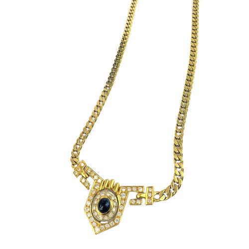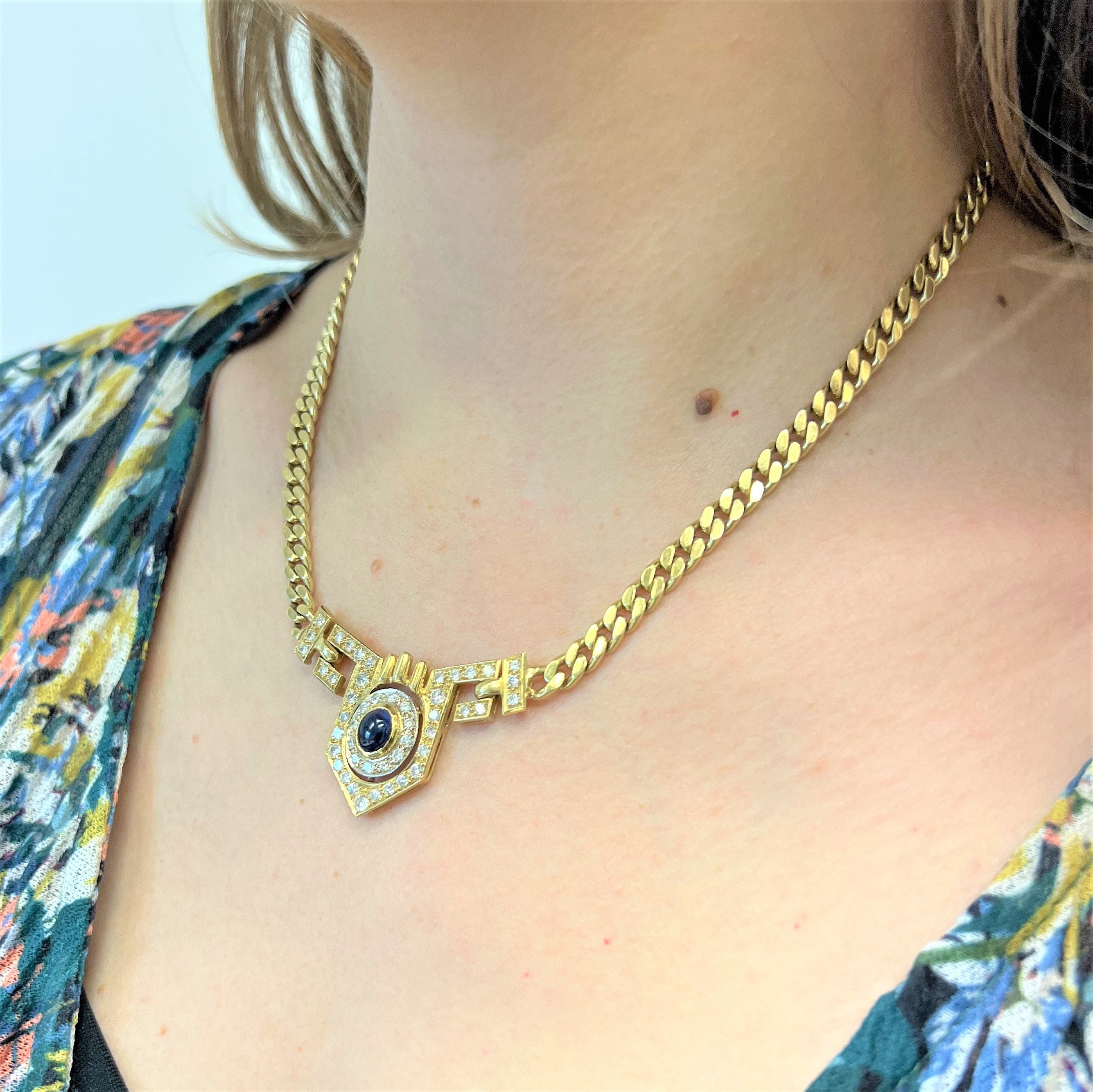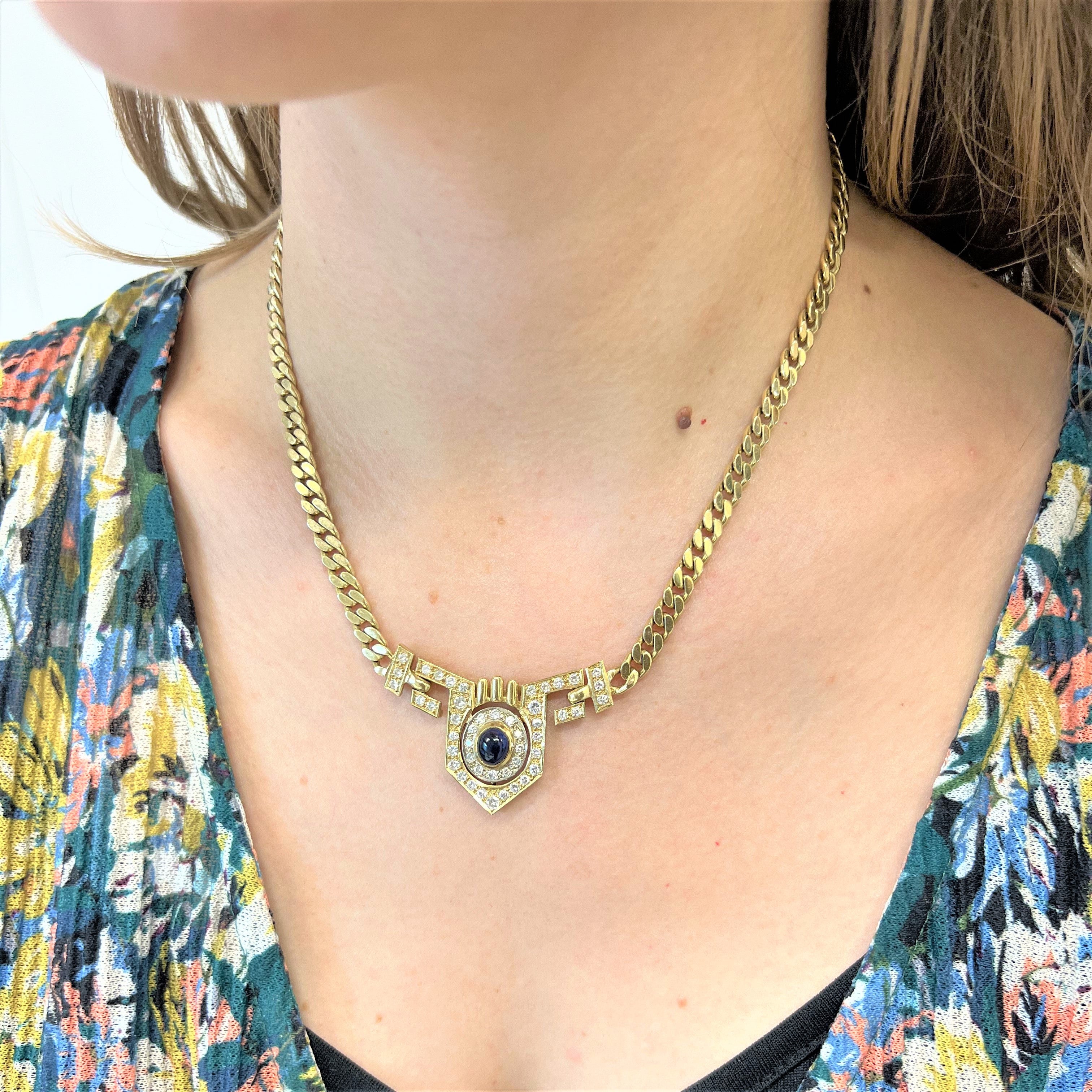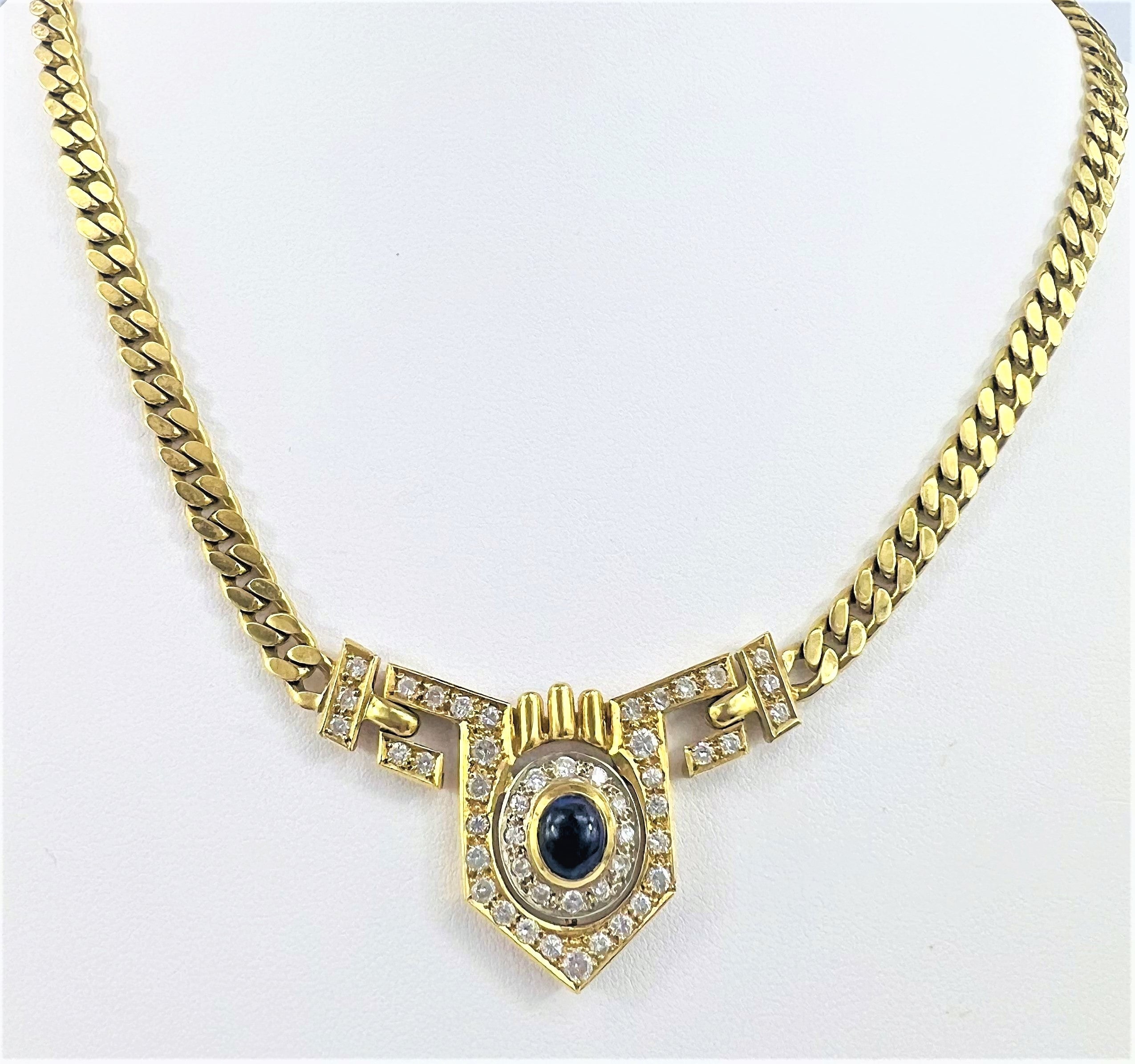 Très Joli collier en or jaune 18k avec saphir Cabochon et diamants