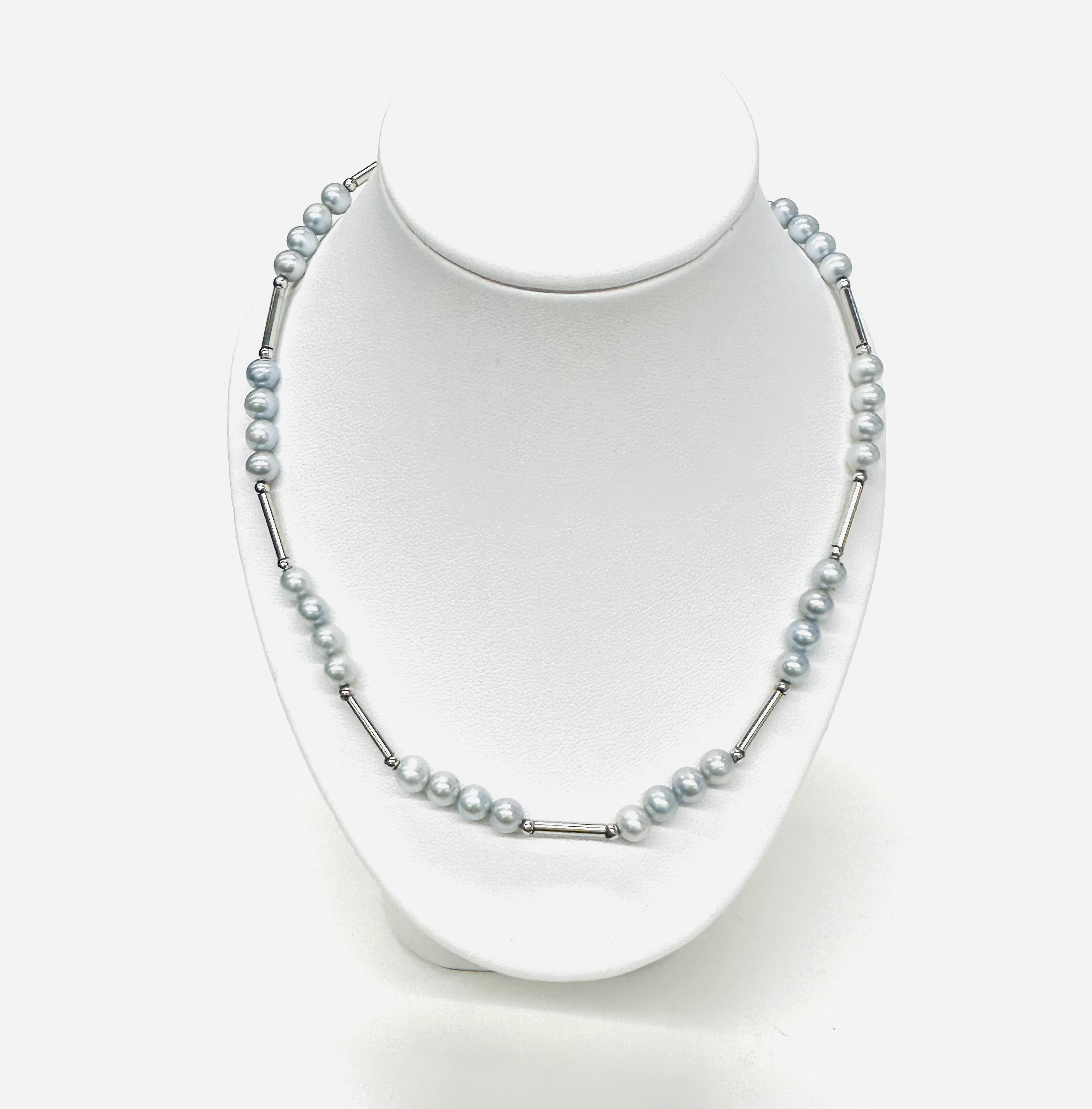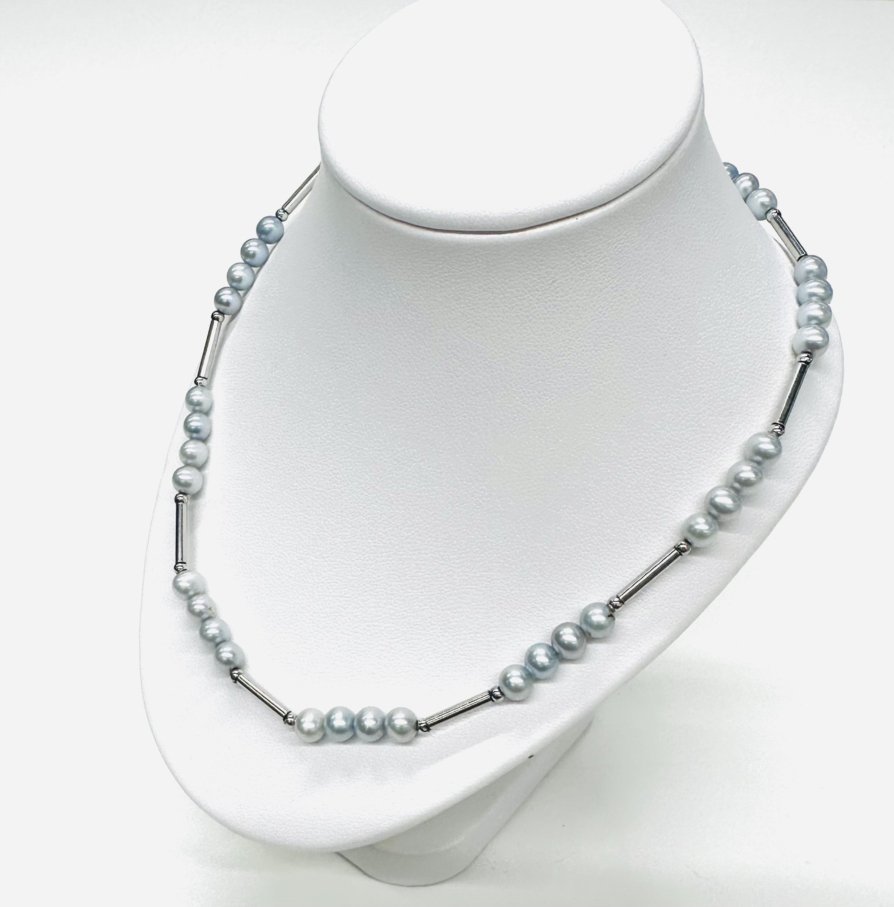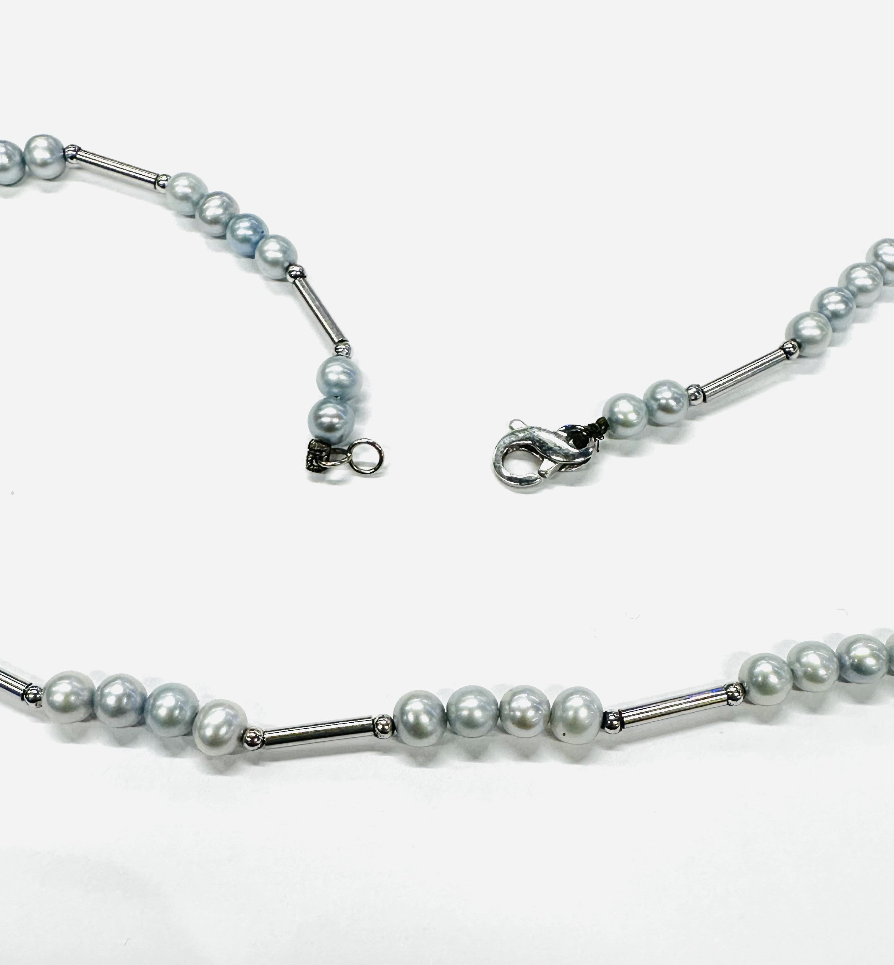 Magnifique collier en or blanc 18k et perle d’eau douce au reflet bleu