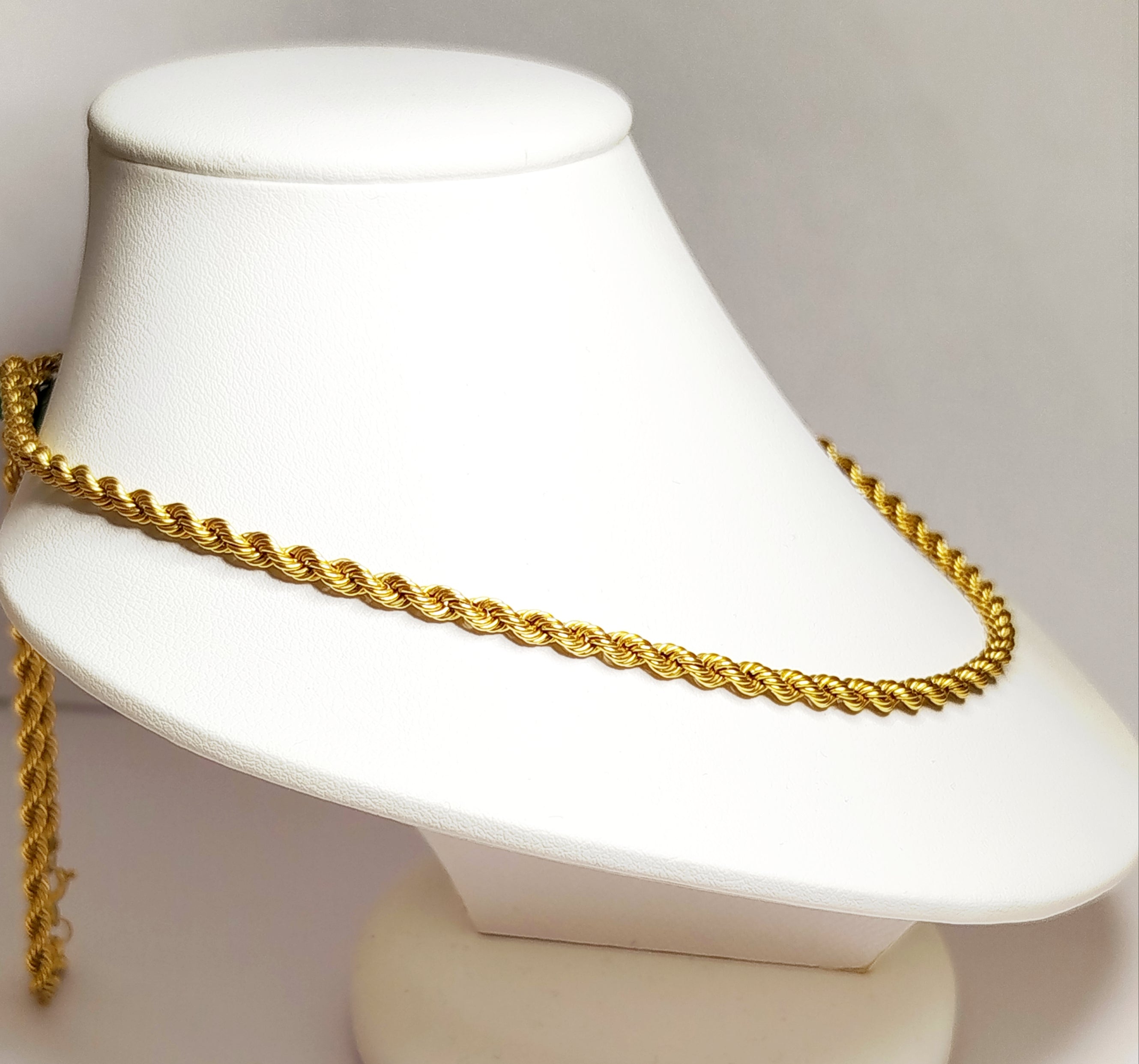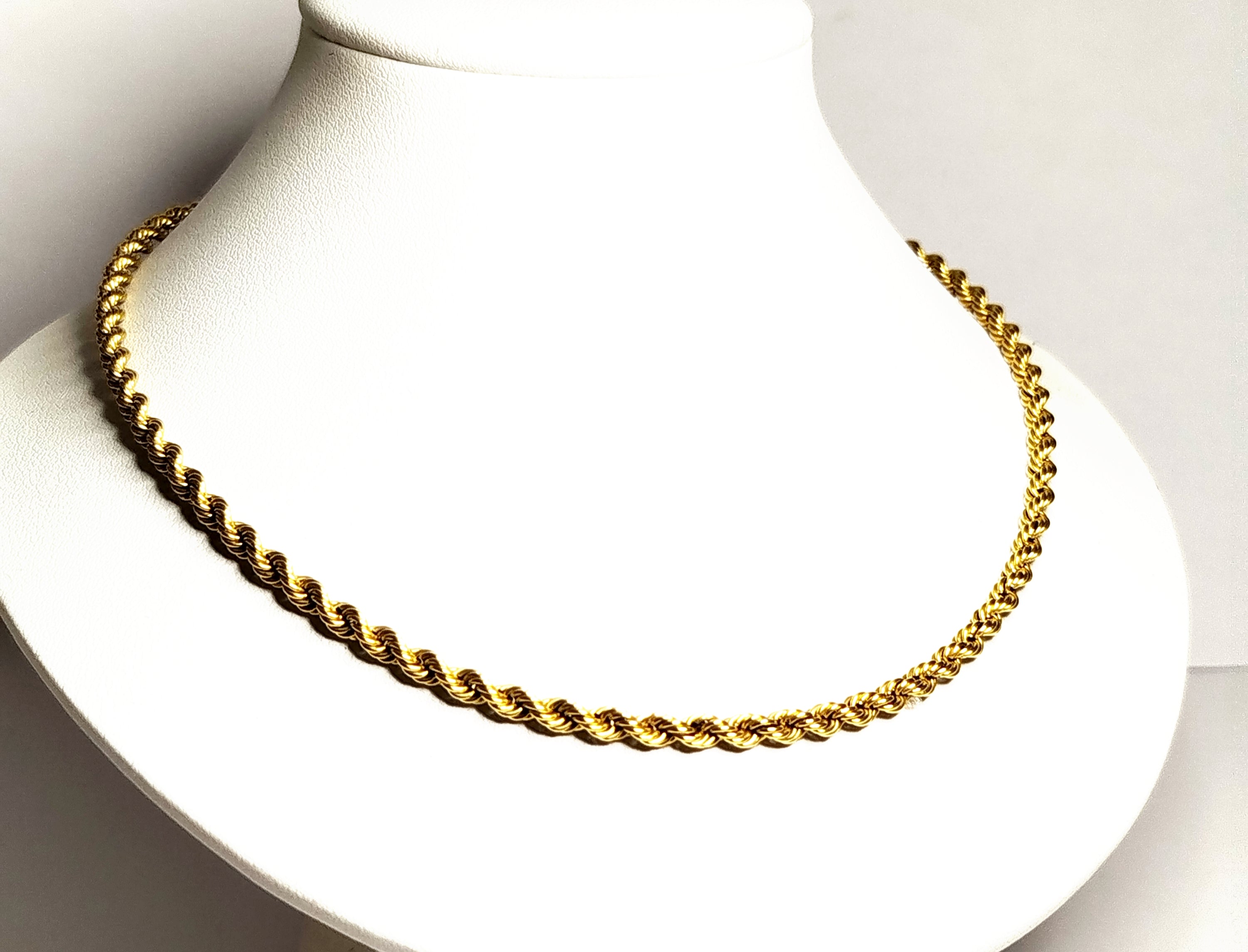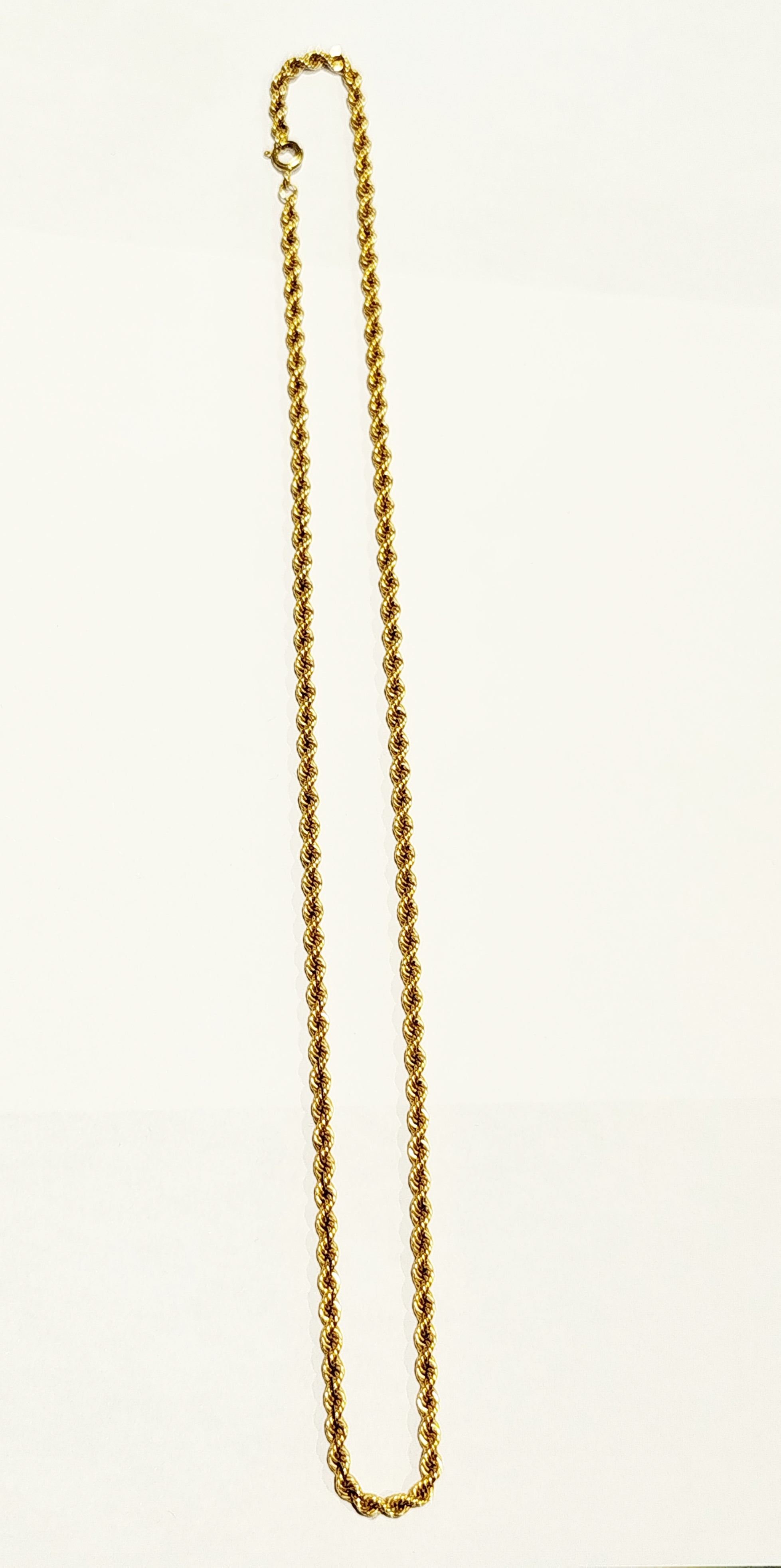 Magnifique collier maille corde en or jaune 18 carats (750/1000) Poinçonné 750, pesant 6,39 grammes. Il mesure 50 cm de long et 0,3 cm de largeur et d'épaisseur.