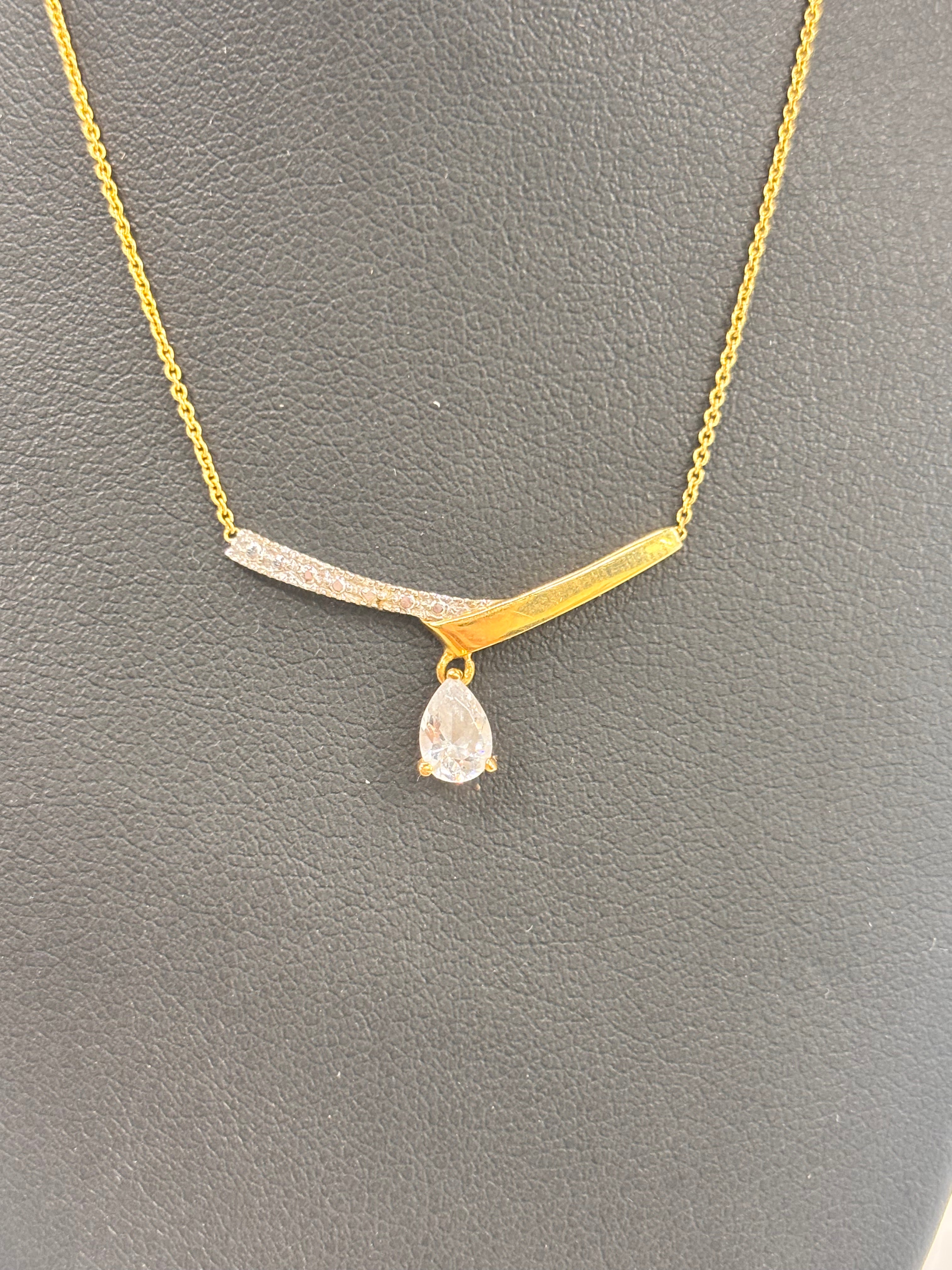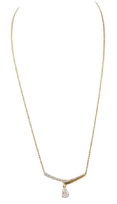 Collier de type princesse en or jaune 18 carats (750/1000), poinçonné 750, en très bon état. Il est composé d’une maille forçat fine et discrète, d’une longueur de 43 cm, avec un fermoir à anneau ressort assurant une fermeture sécurisée. Ce modèle est orné d’un oxyde de zirconium. Léger, avec un poids de 2,02 grammes.