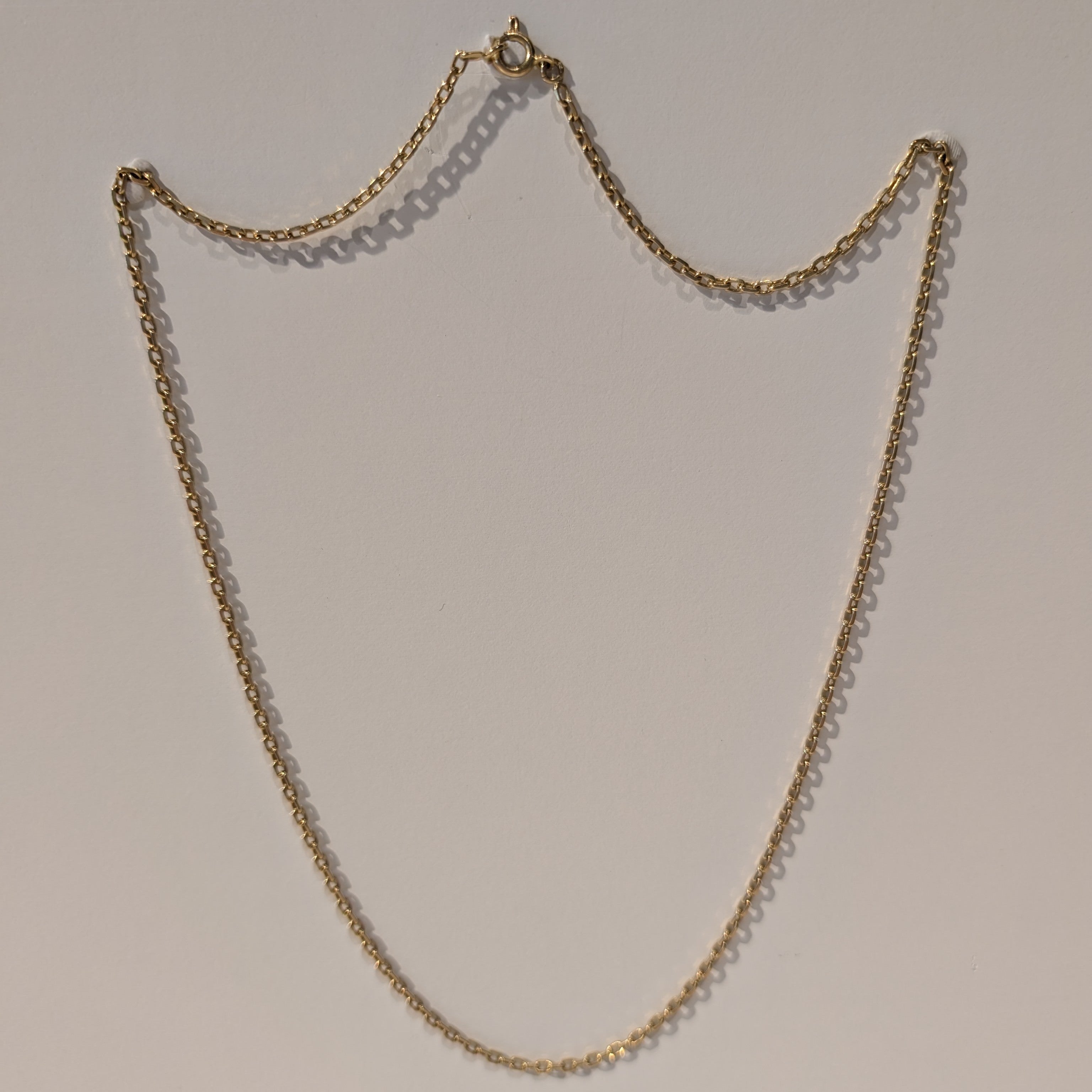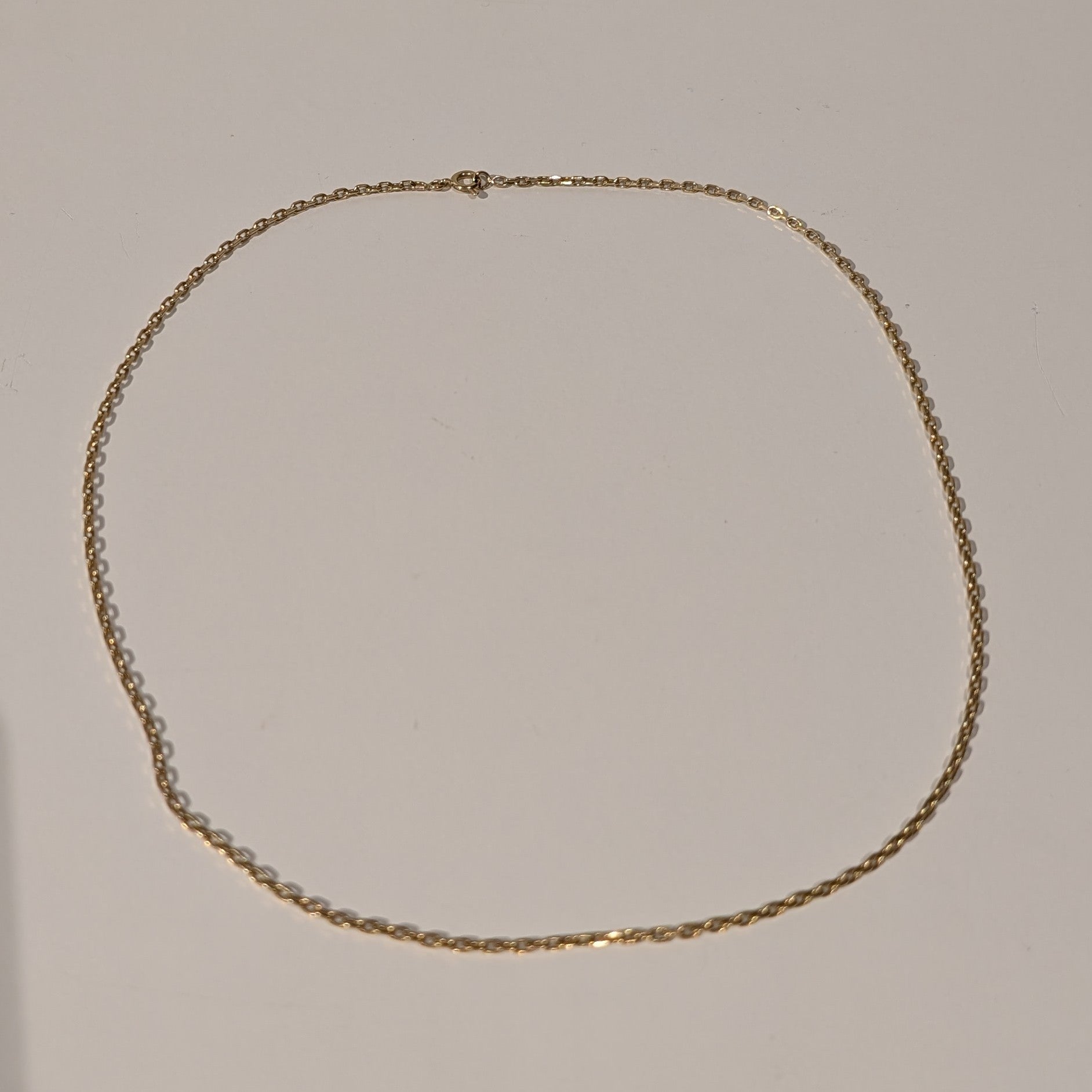 Cette chaîne princesse en or jaune 18 carats (750/1000) arbore une maille forçat élégante et intemporelle. Avec un poids de 8,61 grammes et une longueur de 50 cm, elle offre une belle présence tout en restant sobre et raffinée. Sa largeur et son épaisseur de 0,2 cm lui confèrent un équilibre parfait entre finesse et solidité. Dotée d’un fermoir anneau ressort pratique, elle est en bon état et constitue un choix idéal pour une touche d’élégance discrète au quotidien.