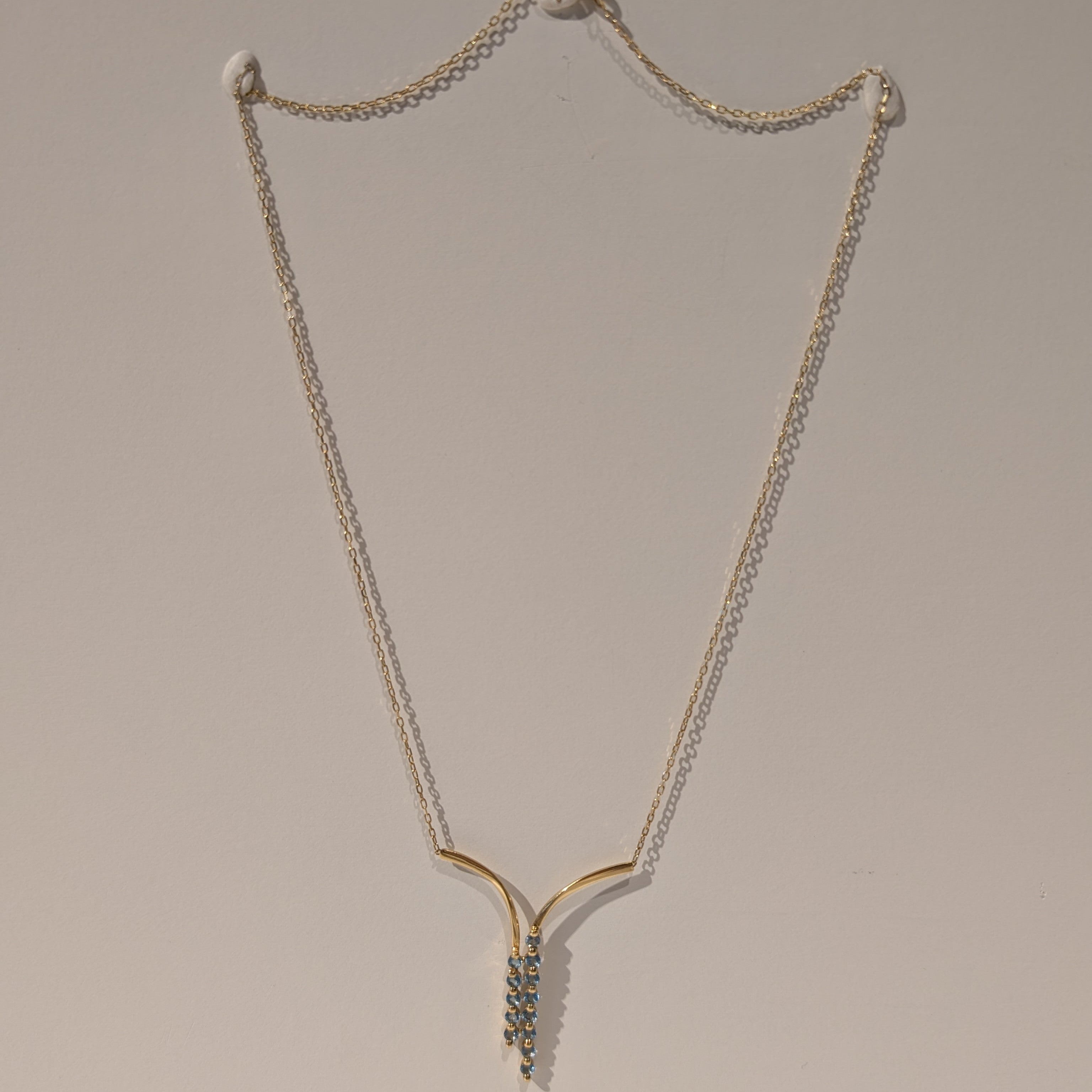 Collier Princesse Or Jaune 18k avec Topazes Bleues