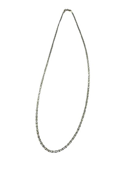 Collier de type princesse en or jaune 18 carats (750/1000) est composé d'une fine maille marine, élégante et discrète. Il mesure 45,5 cm de longueur, avec une largeur de 0,15 cm et une épaisseur de 0,01 cm, pour un poids léger de 2,56 grammes. Fermé par un anneau ressort et poinçonné 750, ce bijou est en bon état général.
