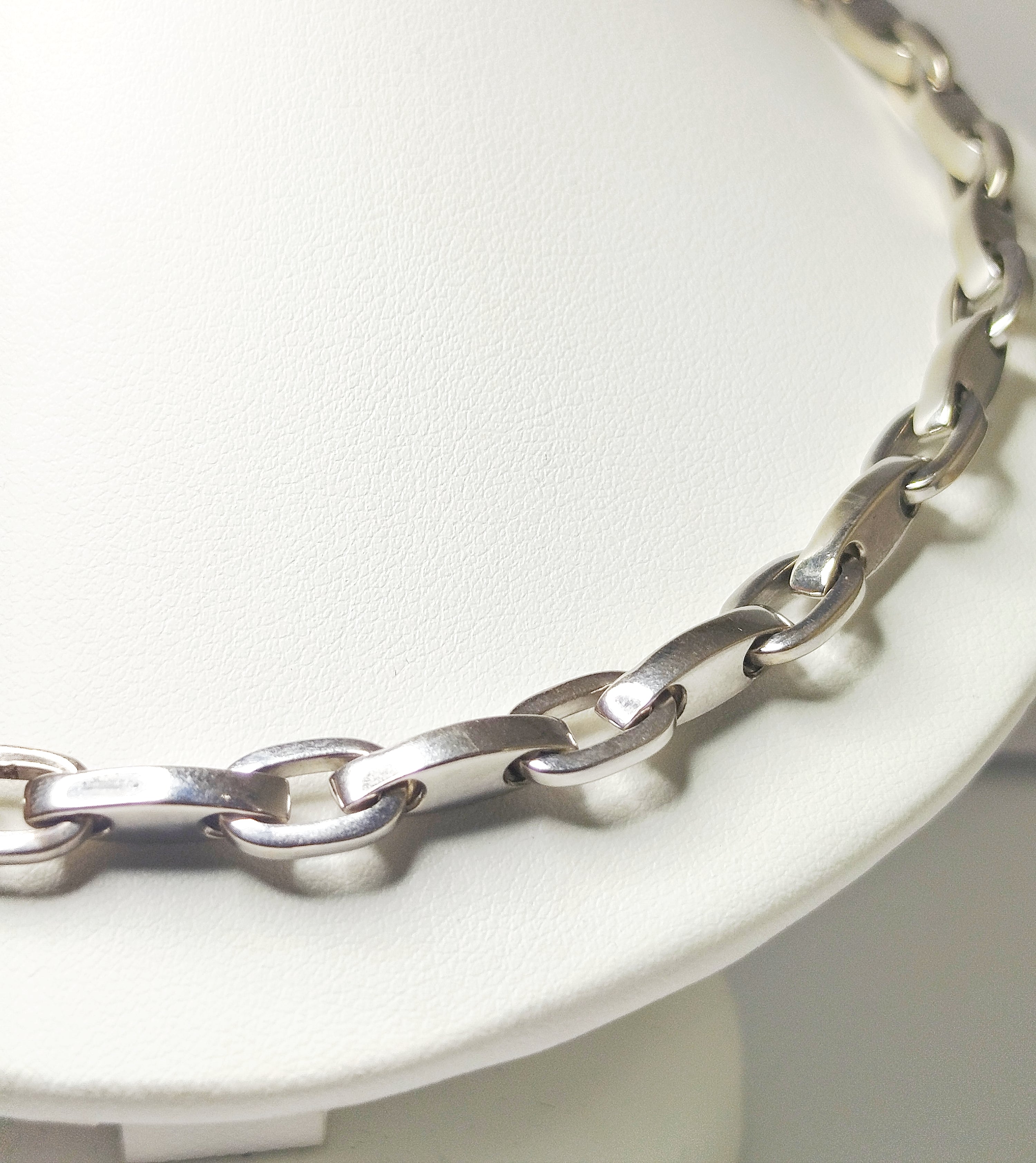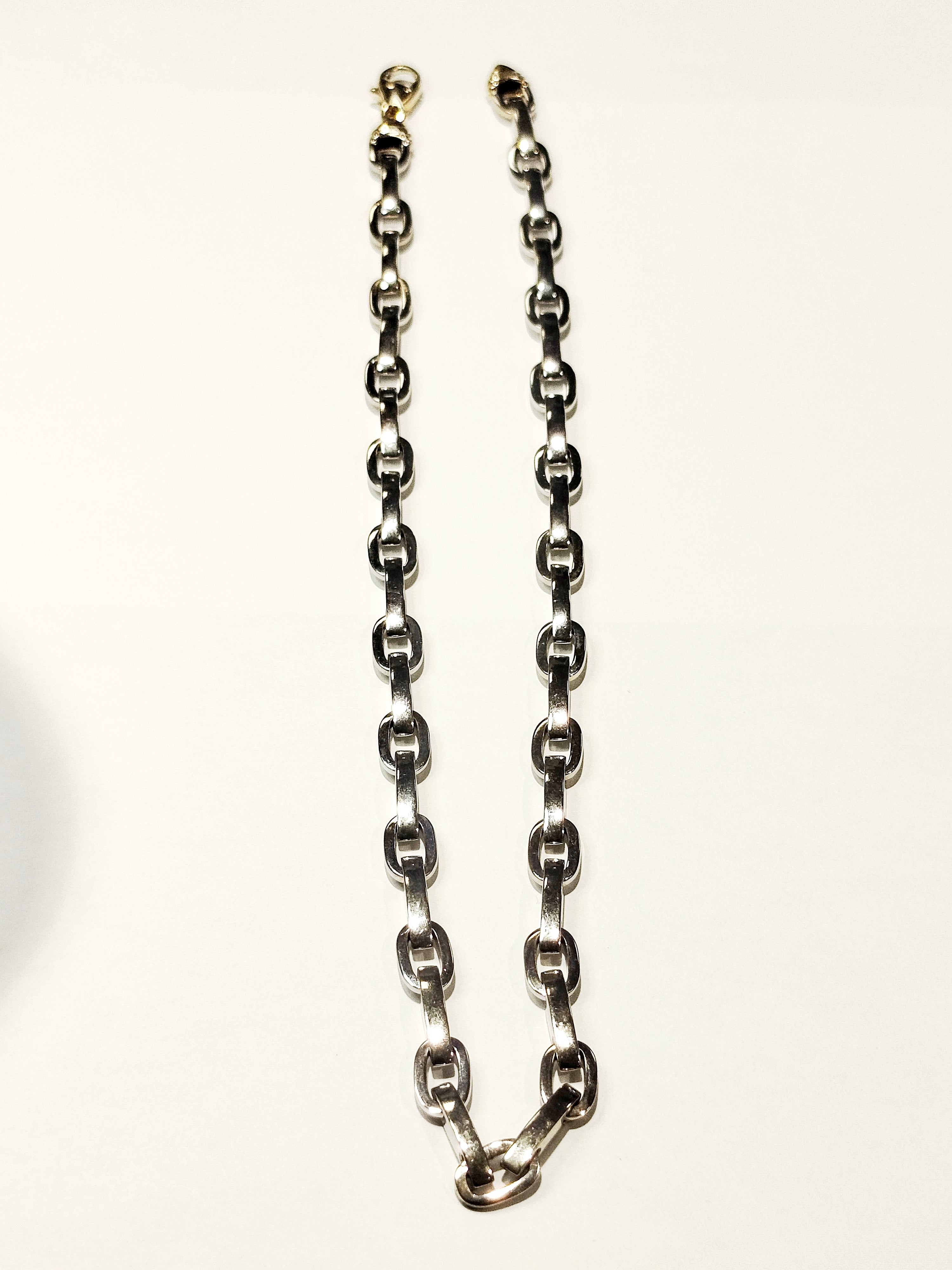 Collier en or jaune et blanc 18 carats (750/1000).Pesant 48,14 grammes.Il mesure 39 cm de long , 0,5 cm de largeur et 0,5cm d'épaisseur.