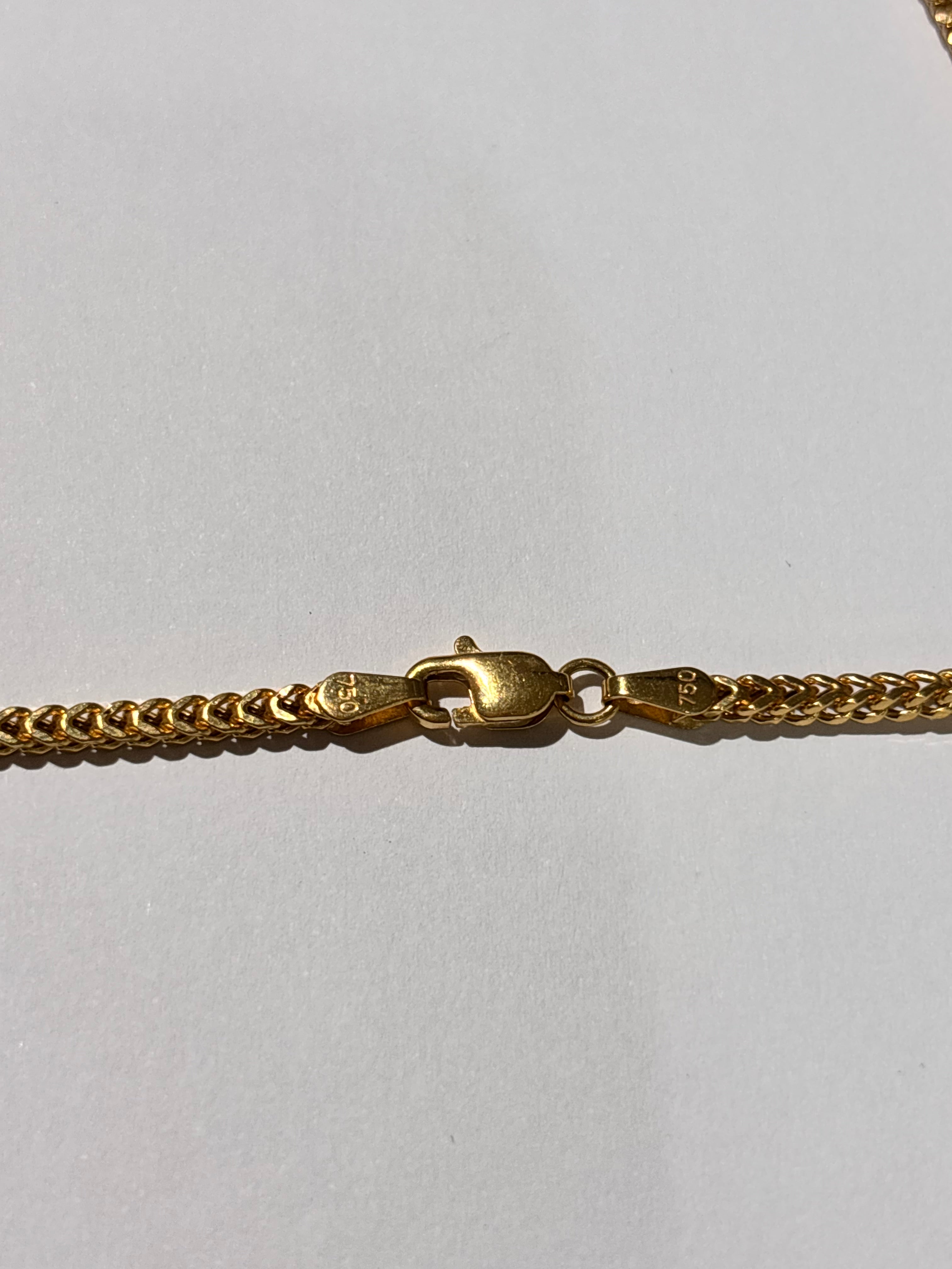Collier sautoir en or jaune 18 carats (750/1000) avec maille anglaise. Il est équipé d’un fermoir mousqueton avec poinçon 750. Ce collier pèse 7,51 grammes et mesure 55 cm de long, avec une largeur et une épaisseur de 0,2 mm. Sans pierres, il est en état comme neuf.