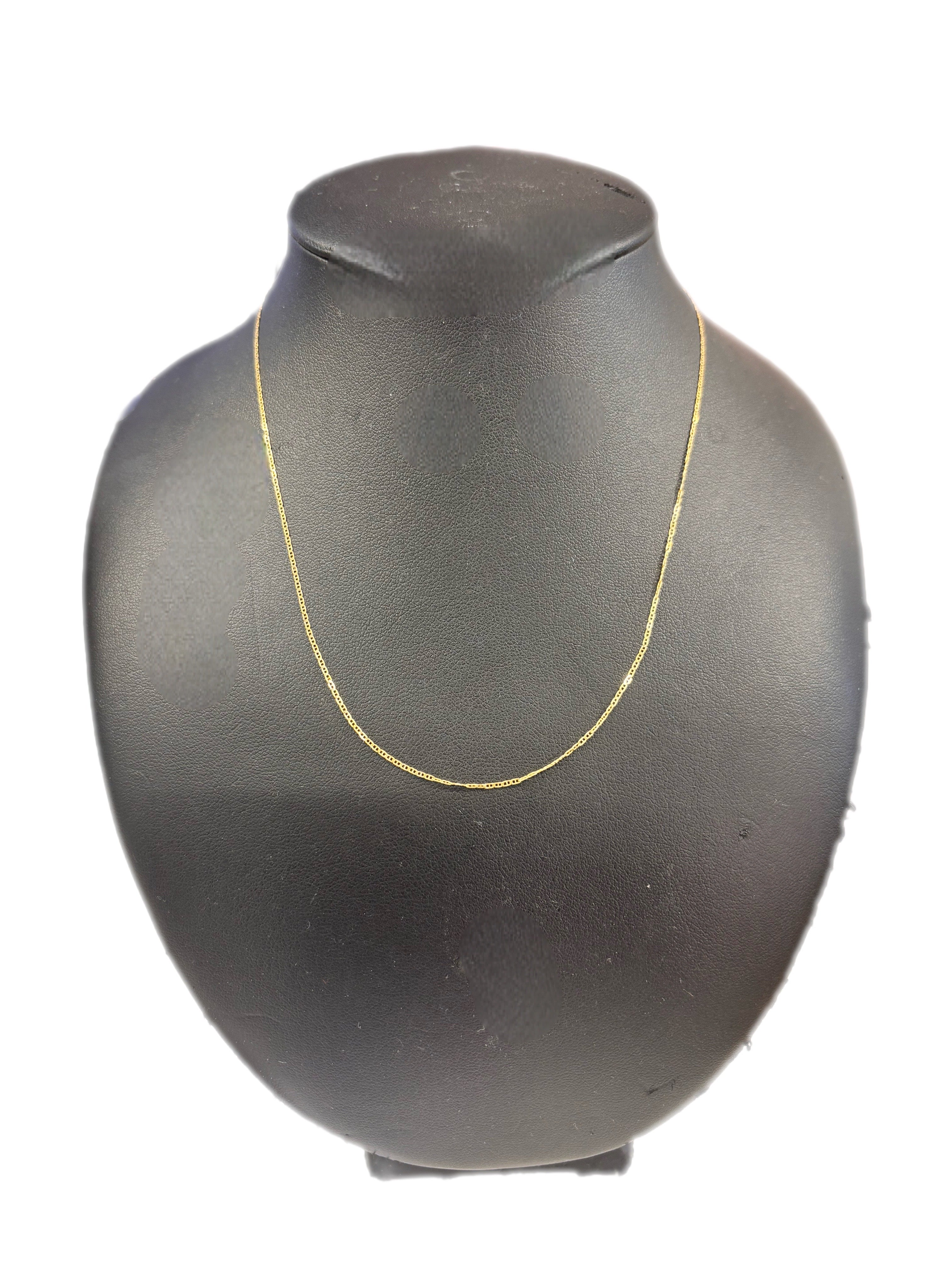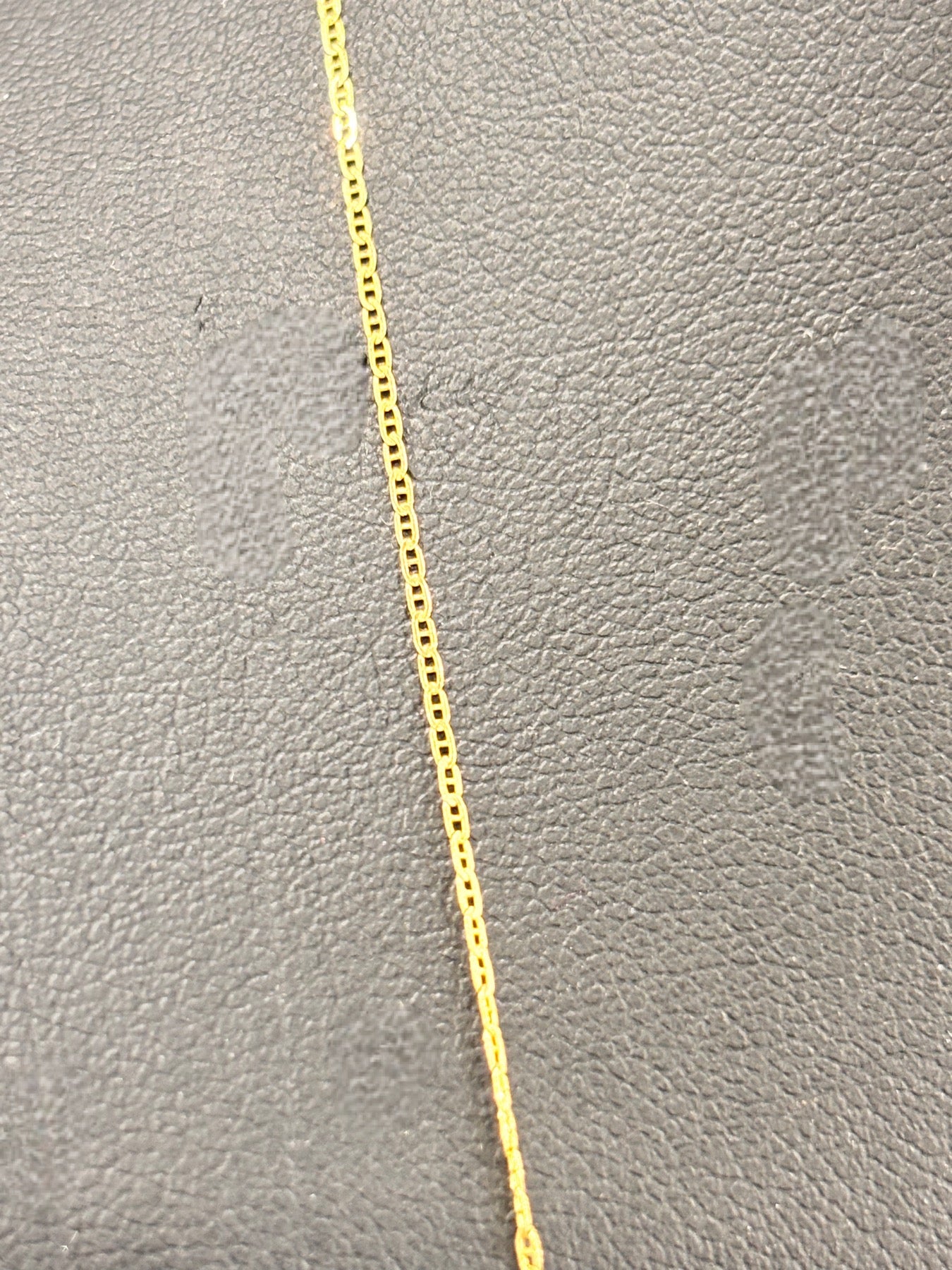 Sautoir en or jaune 18 carats (750/1000), maille marine, sans poinçon, avec fermoir à anneau ressort. Longueur : 40 cm ; largeur et épaisseur : 0,1 mm. Poids : 1,06 g. Sans pierre. Très bon état.