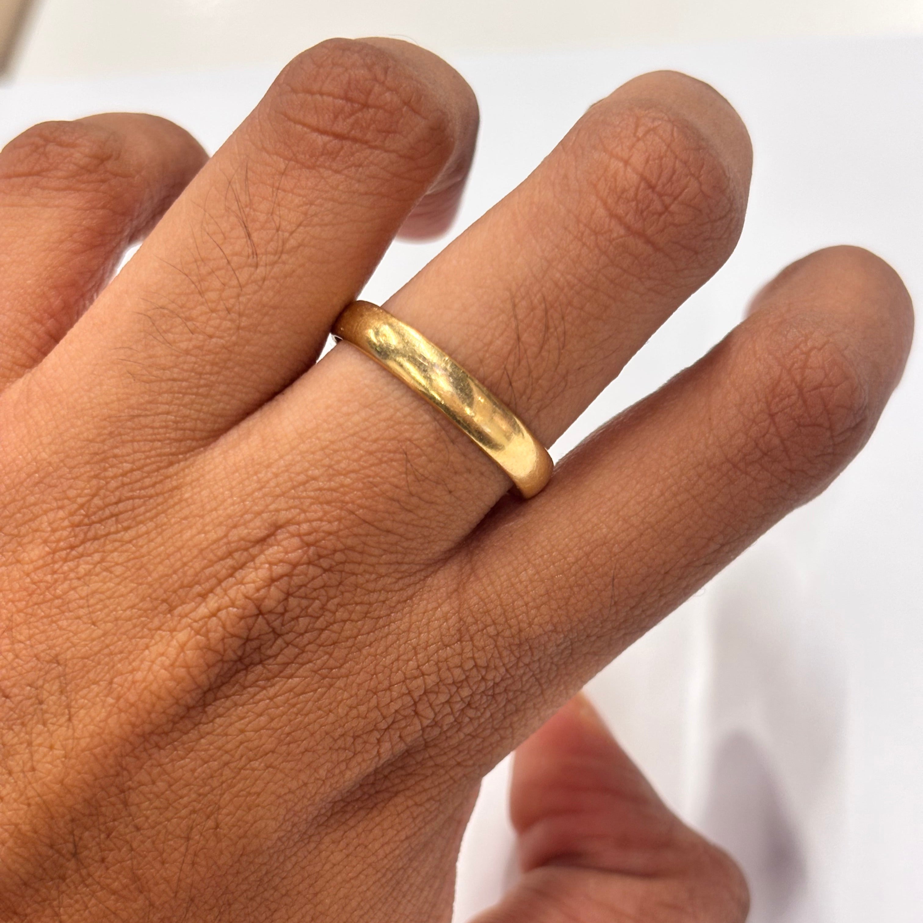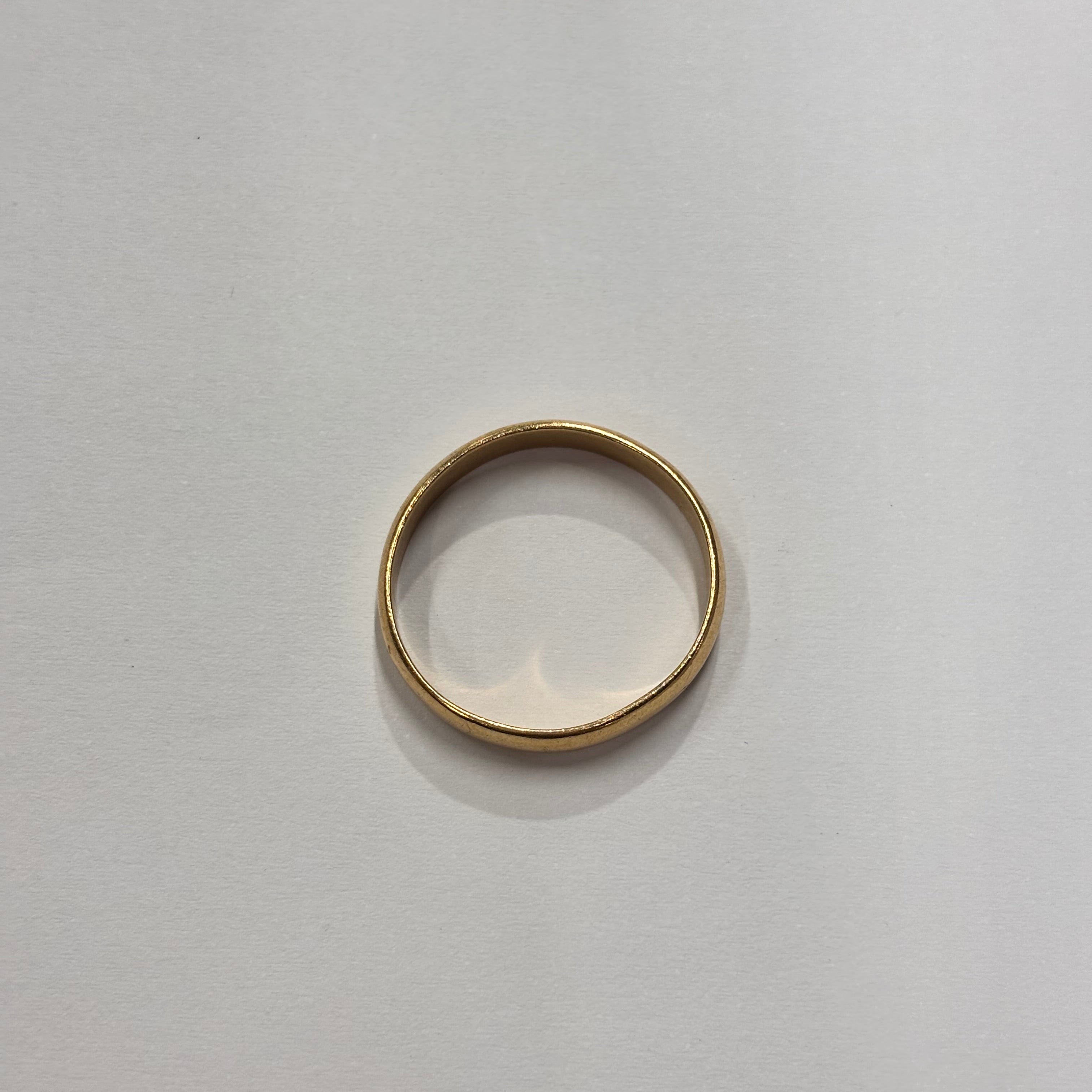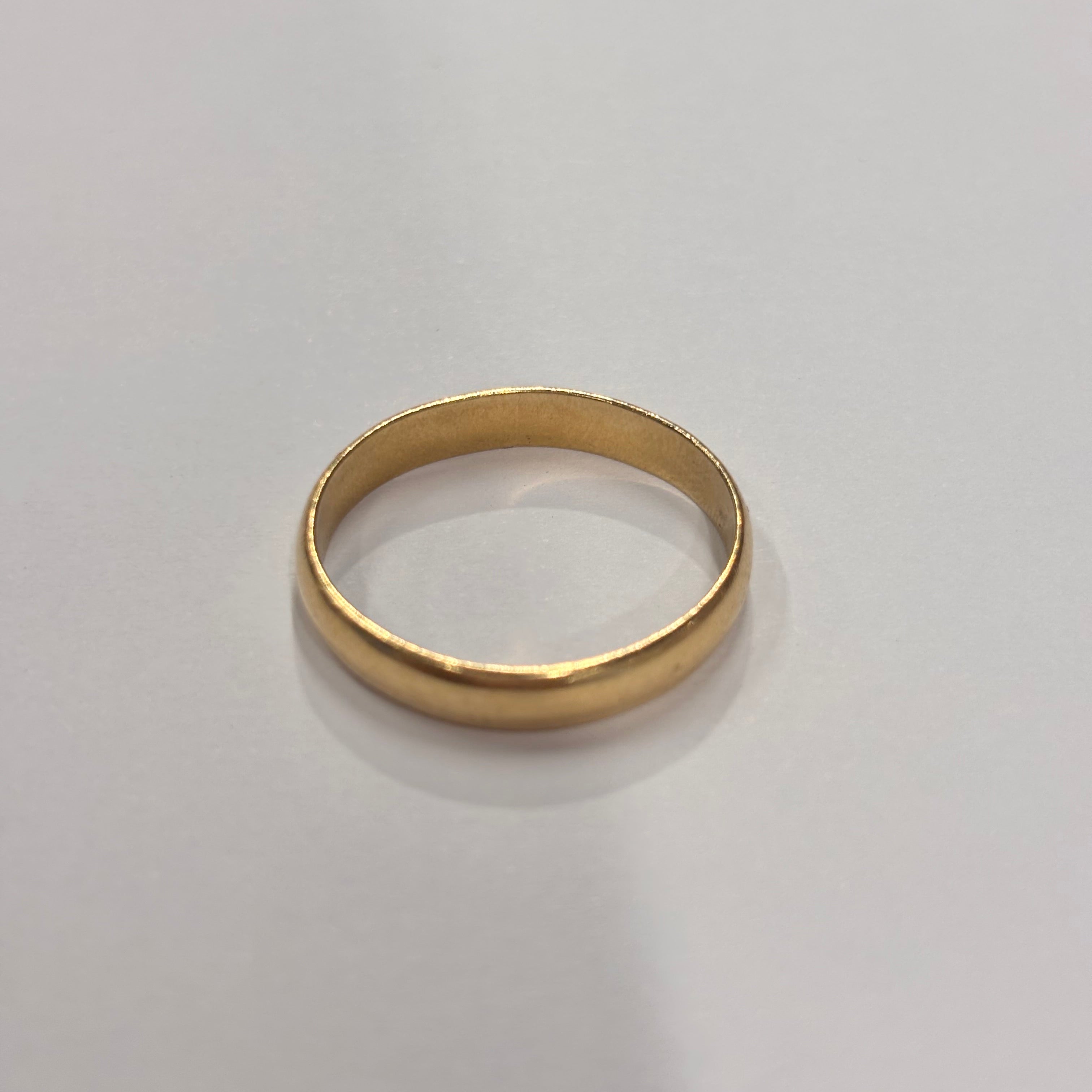 Alliance en or jaune pur (999/1000) séduit par sa simplicité et son éclat naturel. D’un poids de 3,84 grammes, elle est proposée en taille 53. En très bon état général.