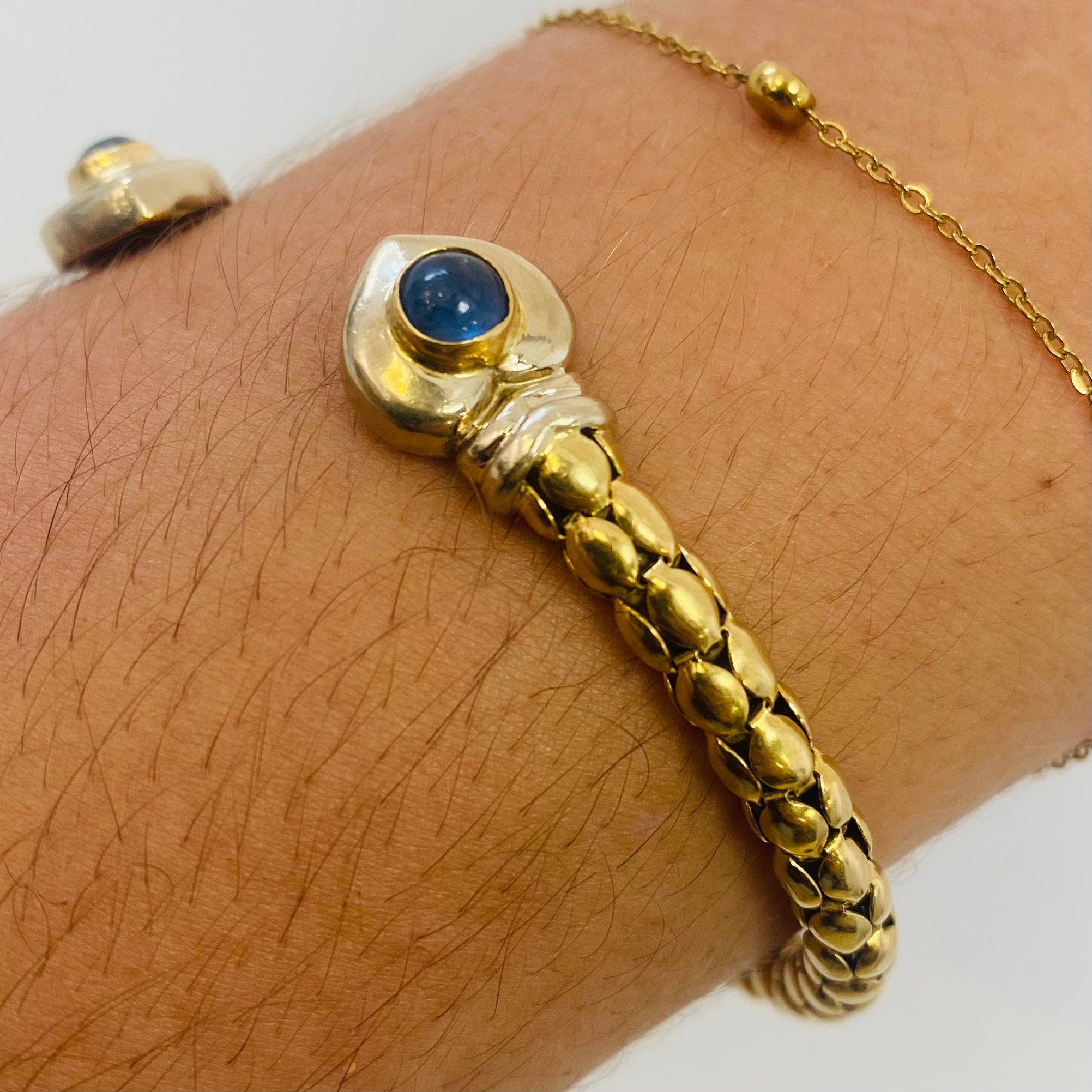 Magnifique jonc en or jaune 18 carats accompagné de ses deux saphir étoiles à ses extrémités