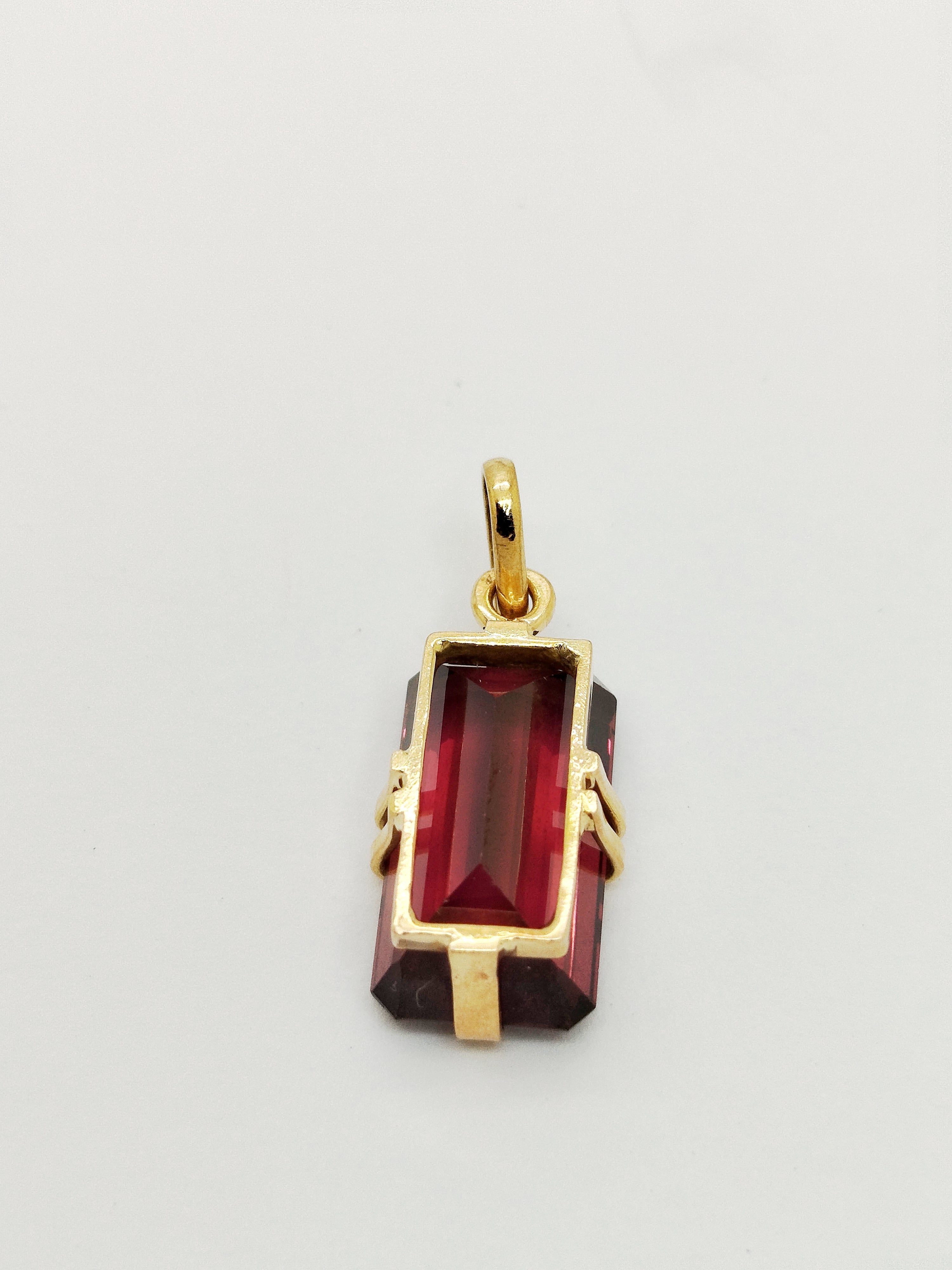 Magnifique pendentif grenat en or jaune 18 carats (750/1000) . Pesant 3,83 grammes. Il mesure 2 cm de hauteur , 1 cm de largeur , 0,5 cm d'épaisseur.