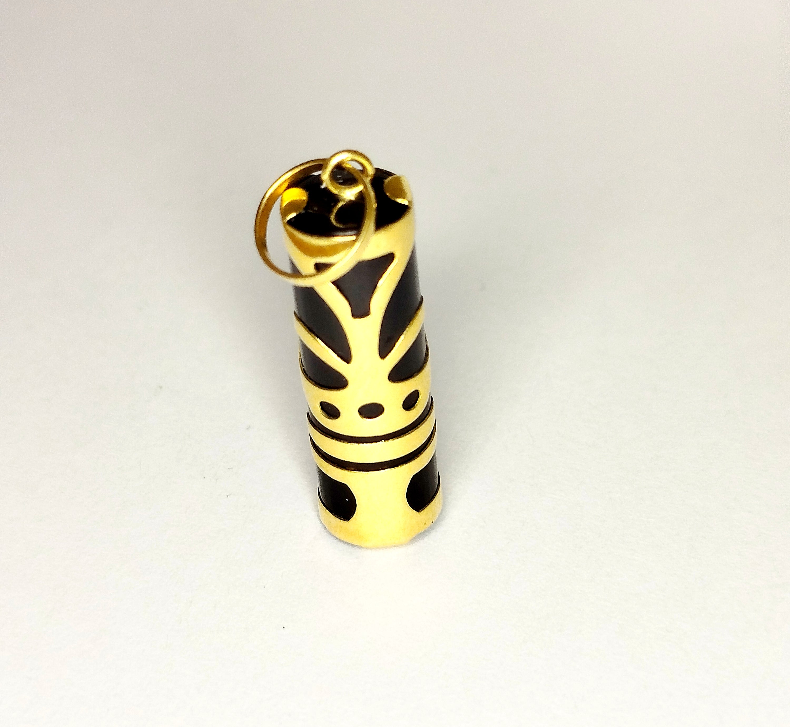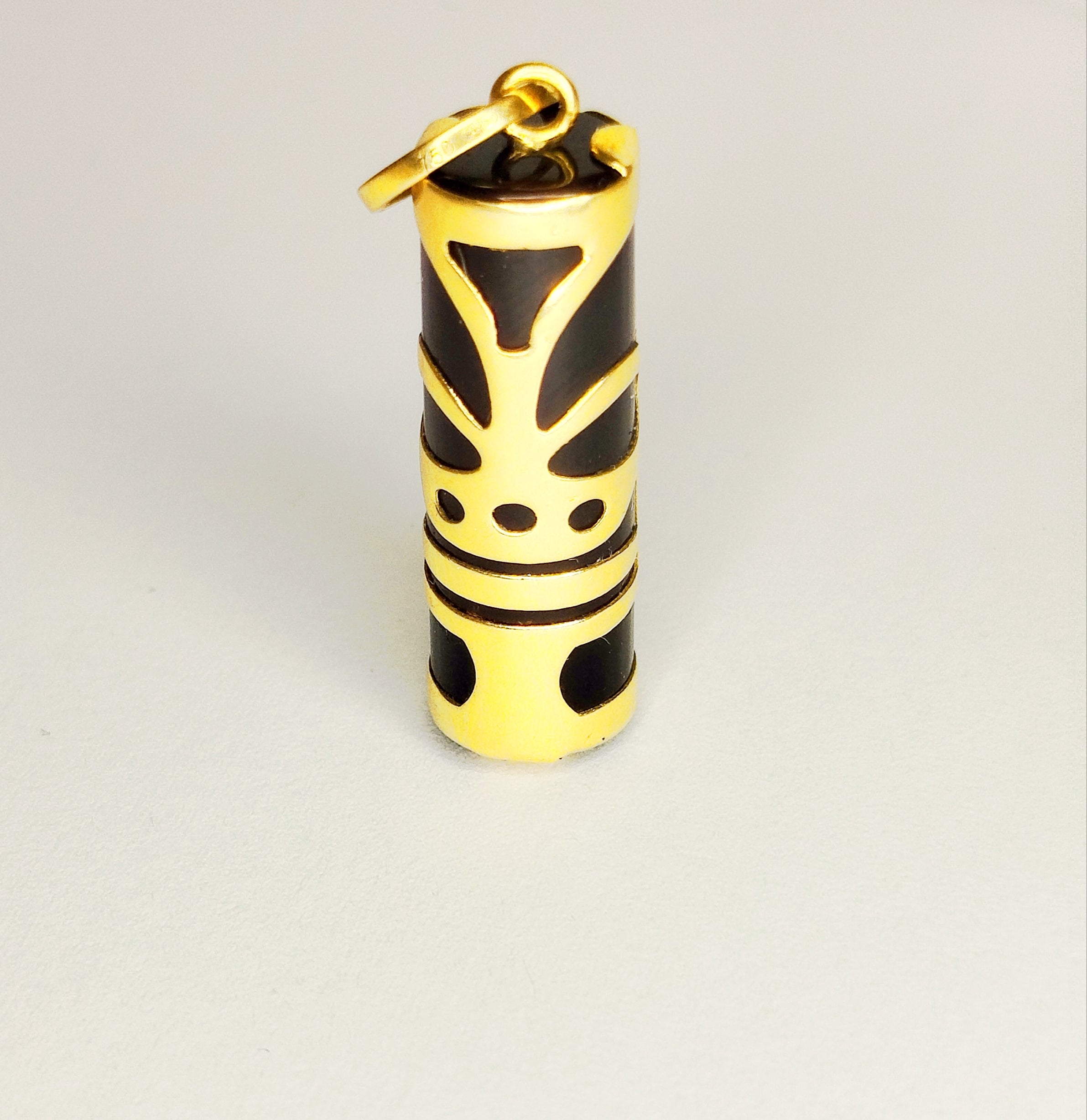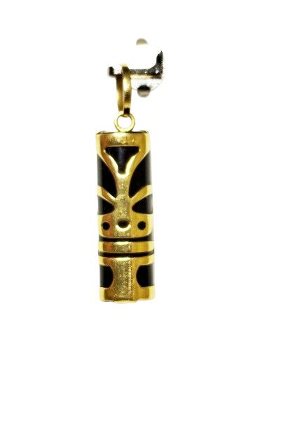 Pendentif de type tiki est réalisé en or jaune 18 carats (750/1000) et se présente en très bonne état. D'un poids de 2,49 grammes, il mesure 3 cm de hauteur ,0,8 cm de largeur et 0,5 d'épaisseur.