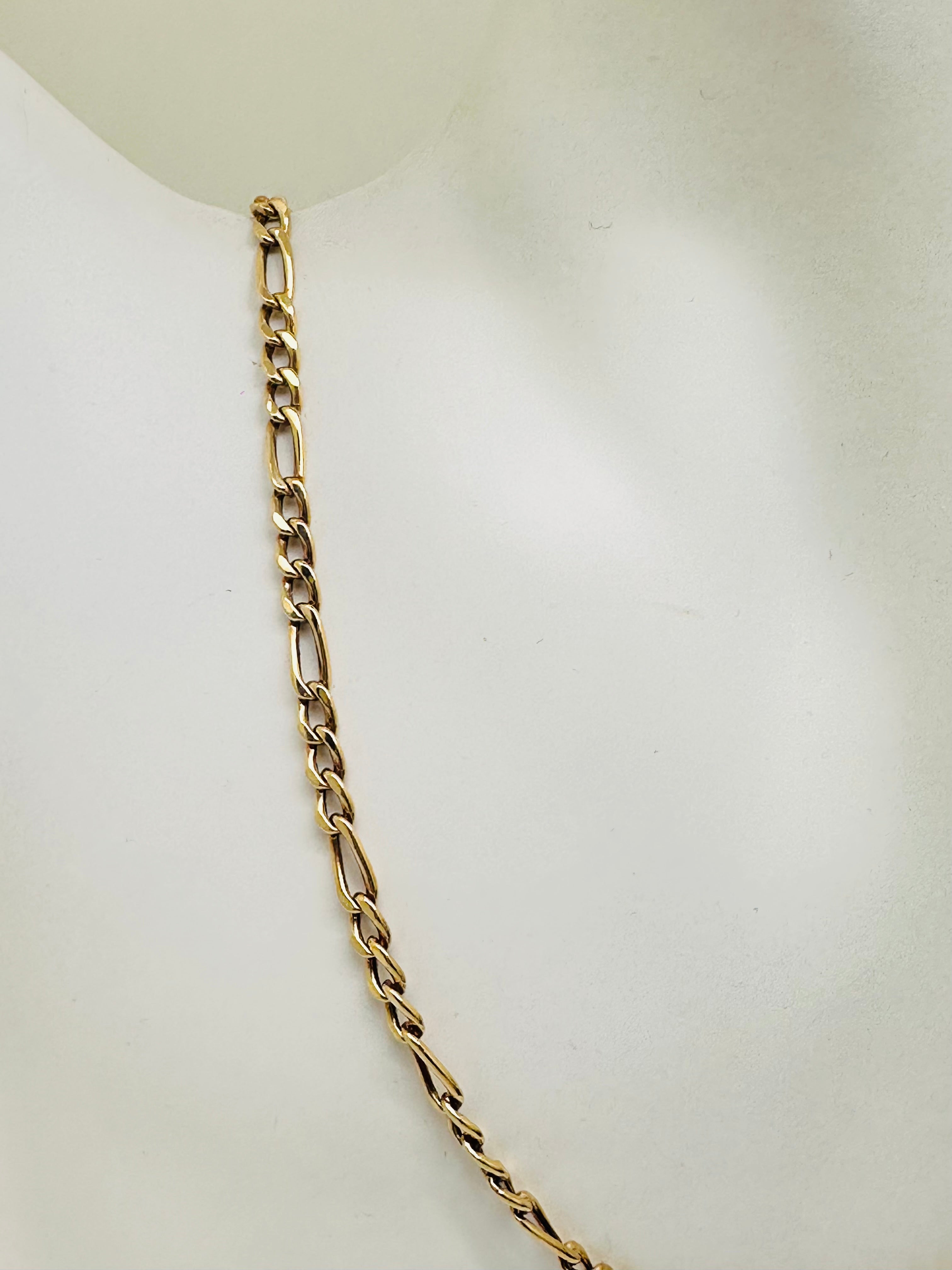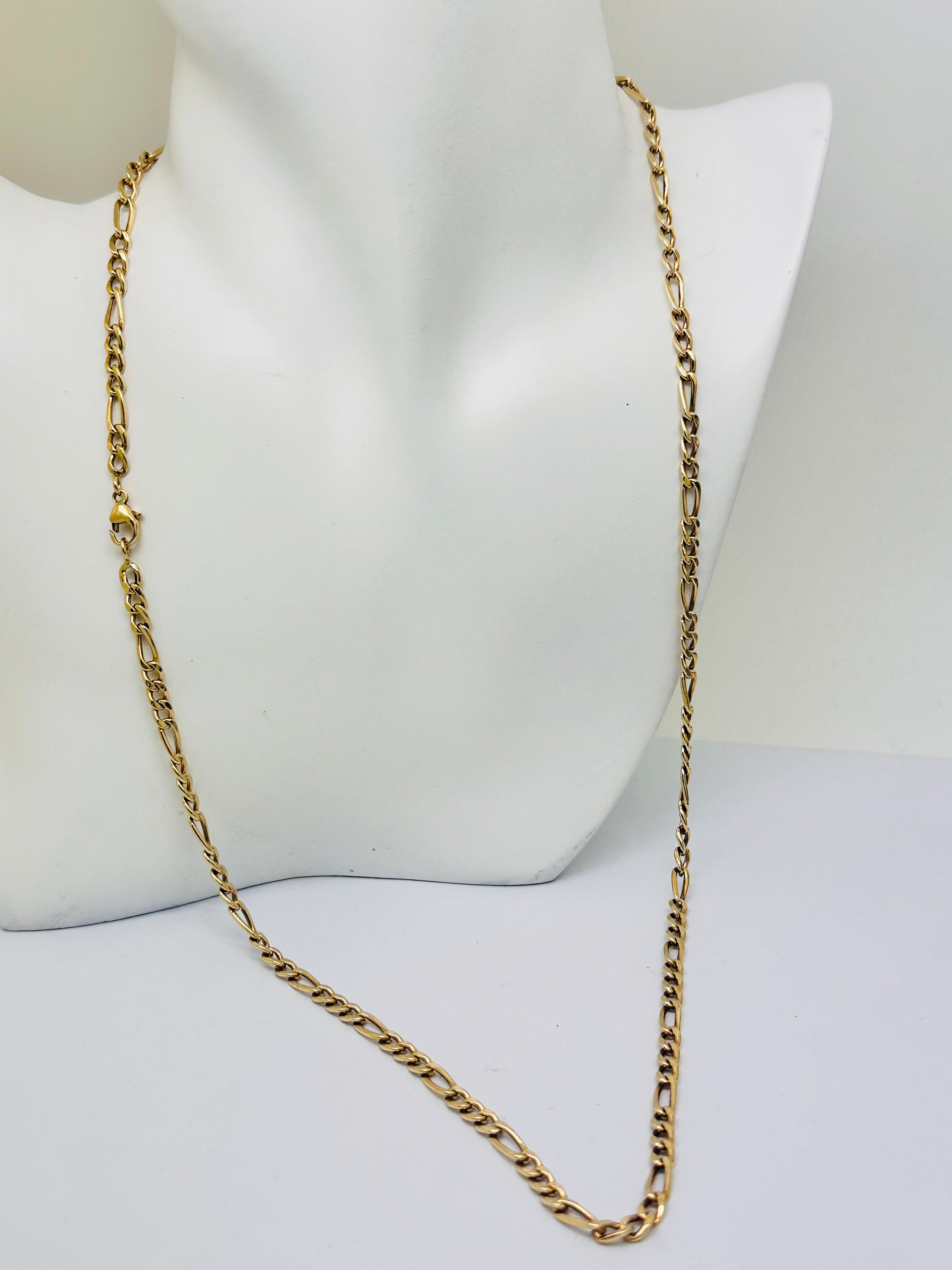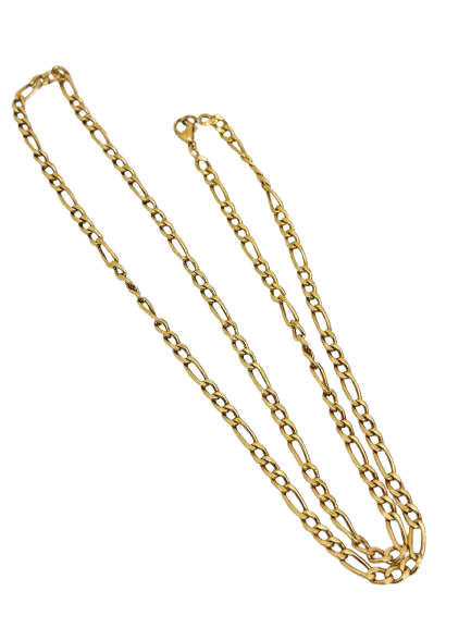 Sautoir élégant en or jaune 18K avec maille Figaro, longueur 65 cm et largeur 3 mm. Léger et raffiné, il apporte une touche sophistiquée à votre style au quotidien ou pour des occasions spéciales.