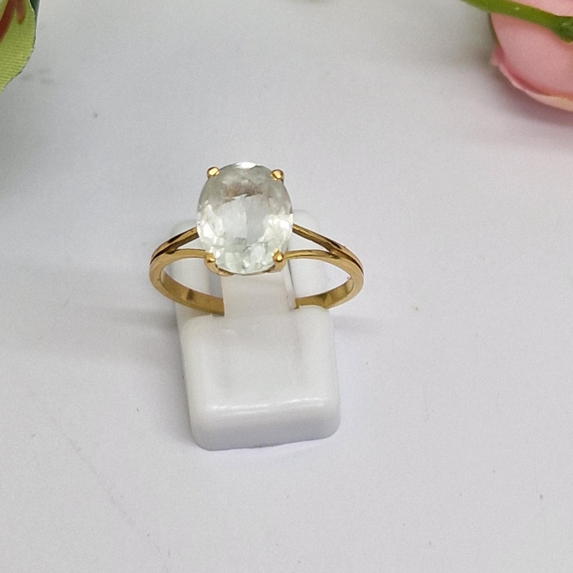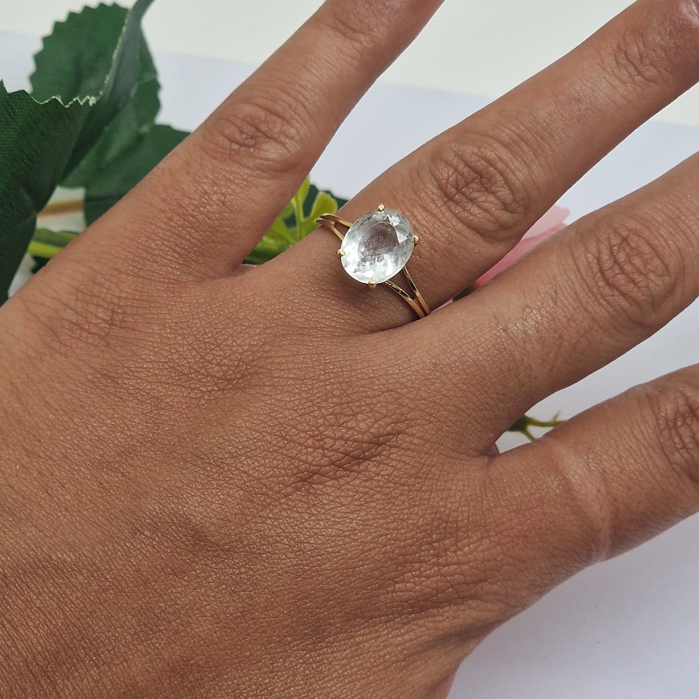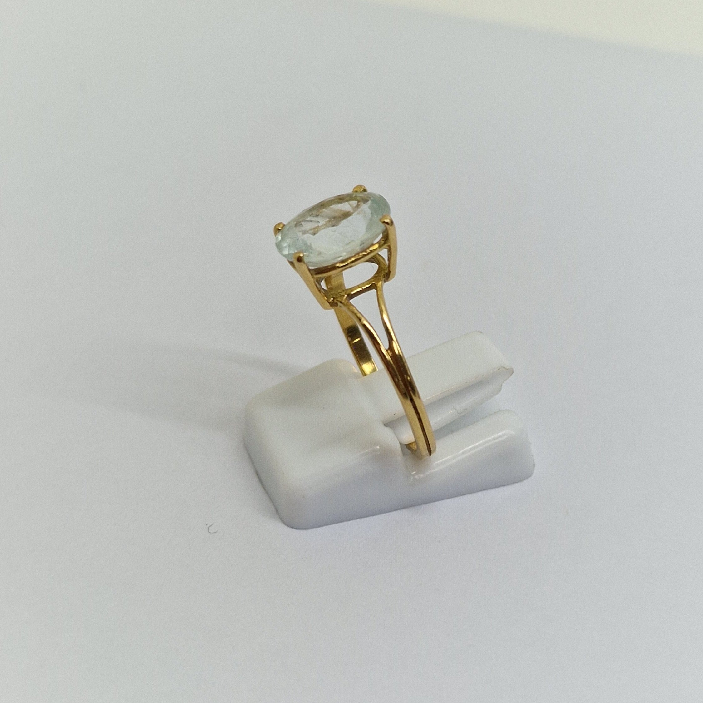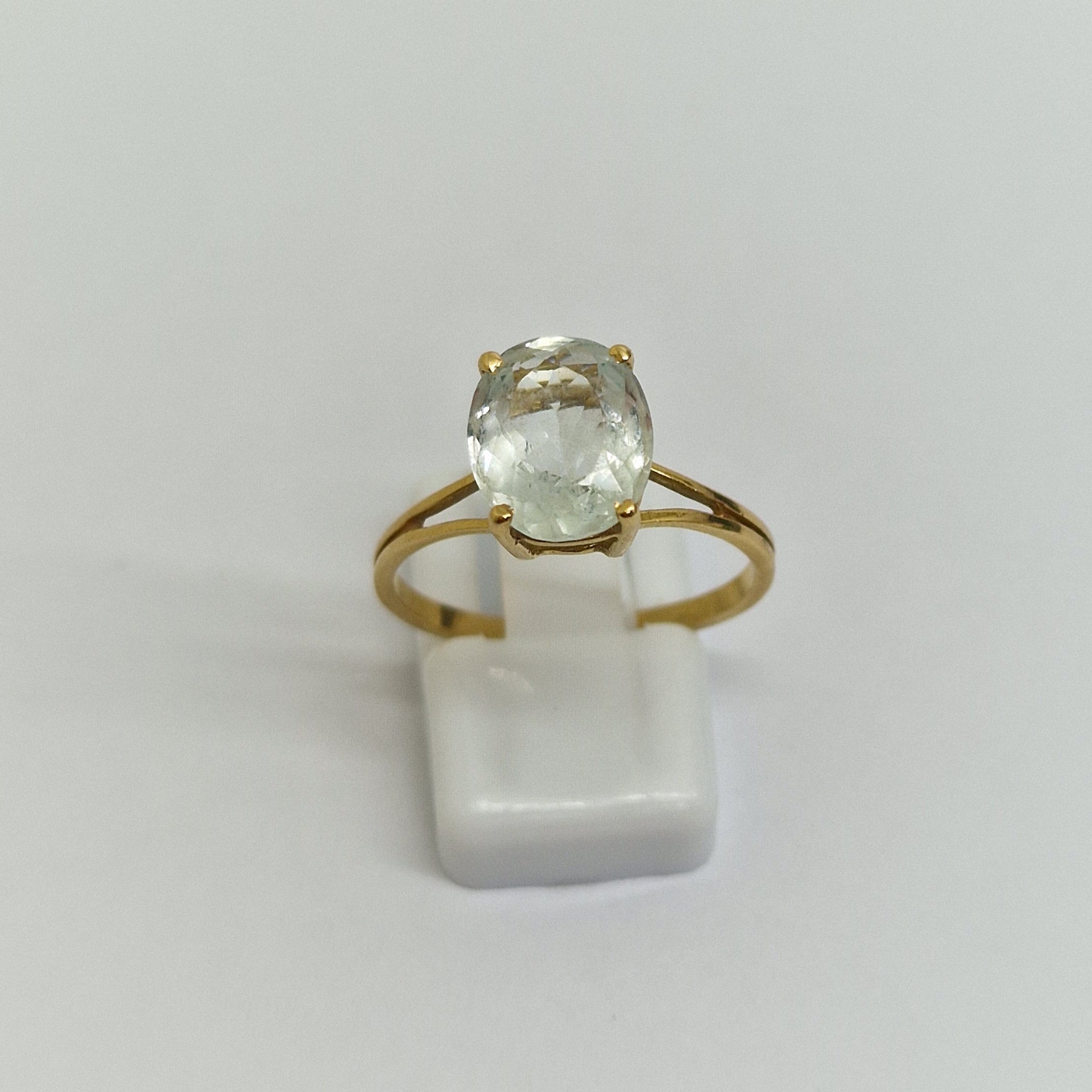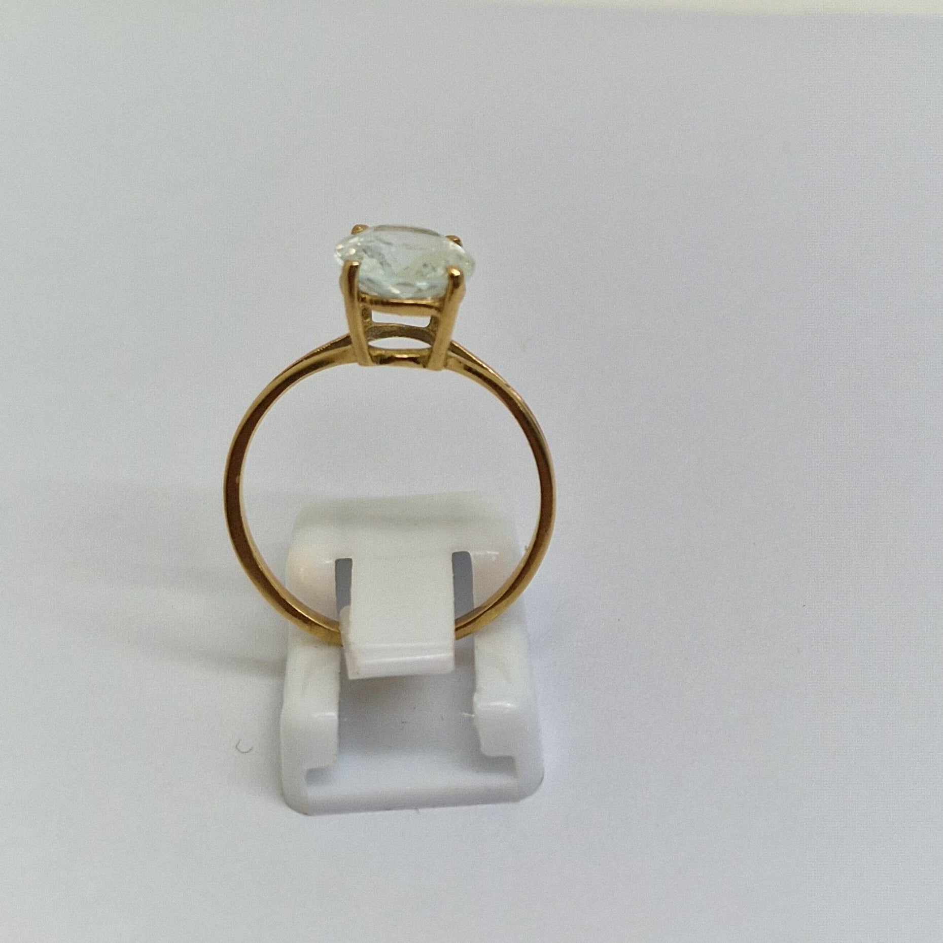 Bague solitaire en or jaune 18 carats (750/1000), poinçonnée tête d’aigle, en très bon état. Ce modèle élégant est orné d’un oxyde de zirconium, imitant l’éclat du diamant. Avec une taille 56 et un poids de 2,29 grammes.