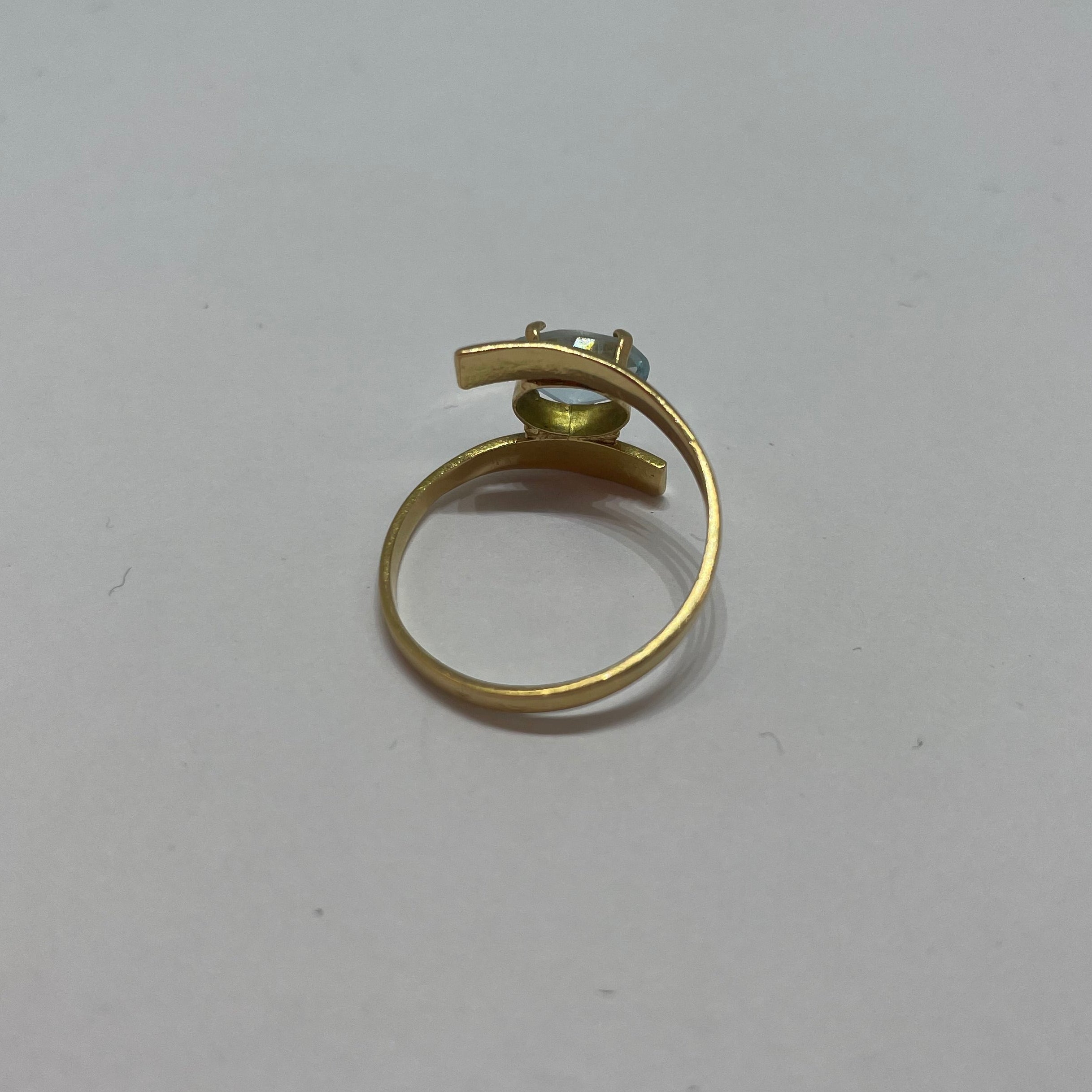 Solitaire en or jaune 18K, taille 53, poids 2,17 g, serti d’une aigue-marine.