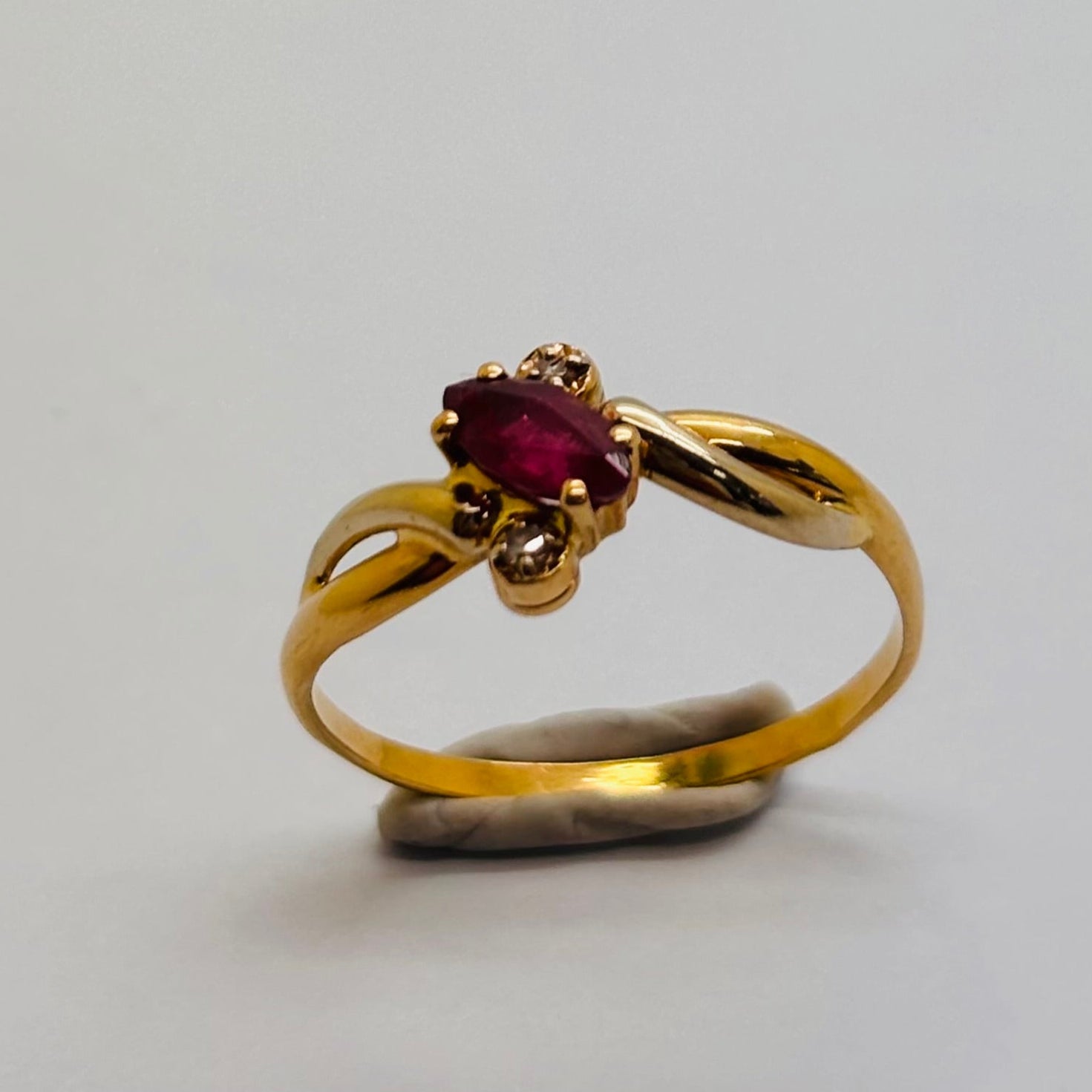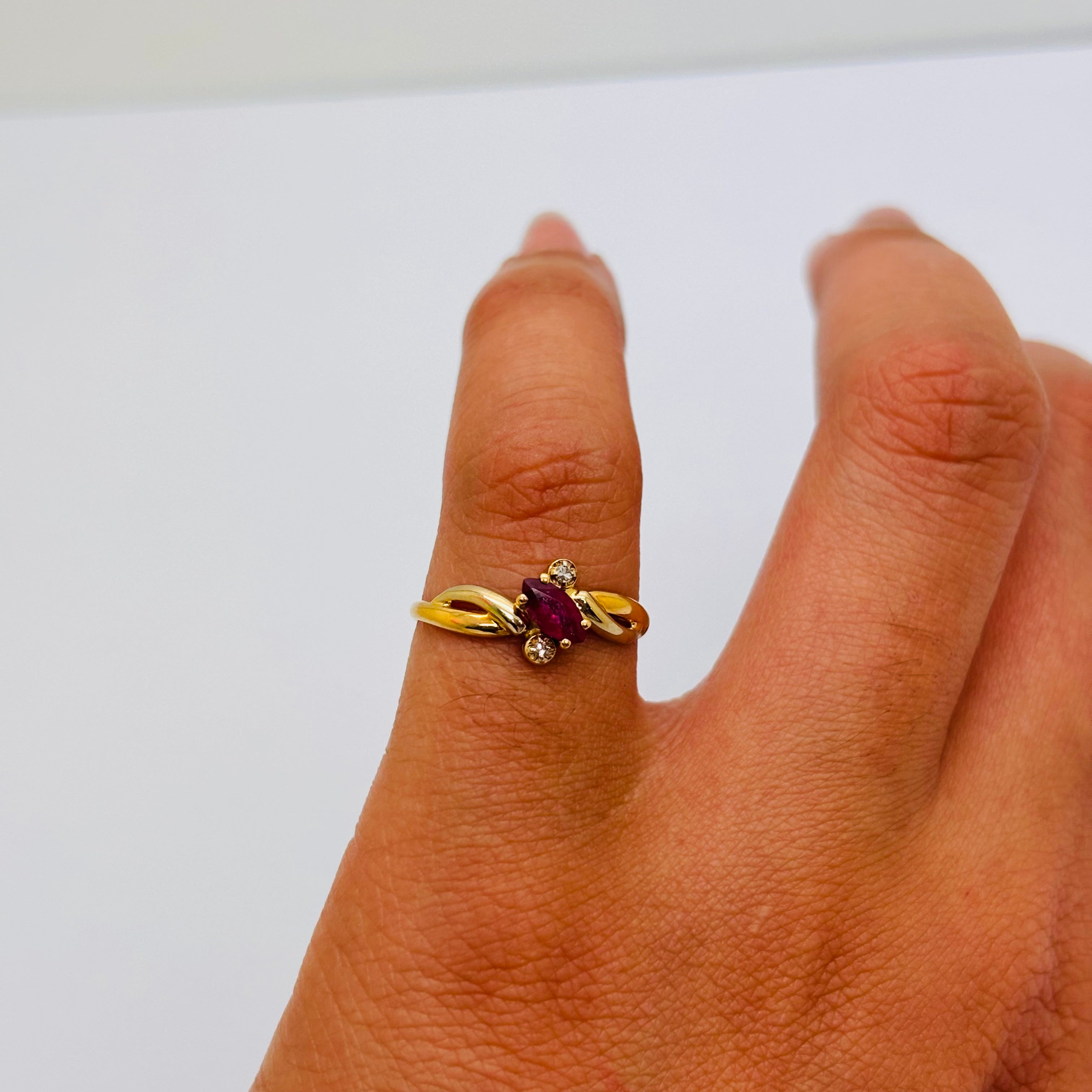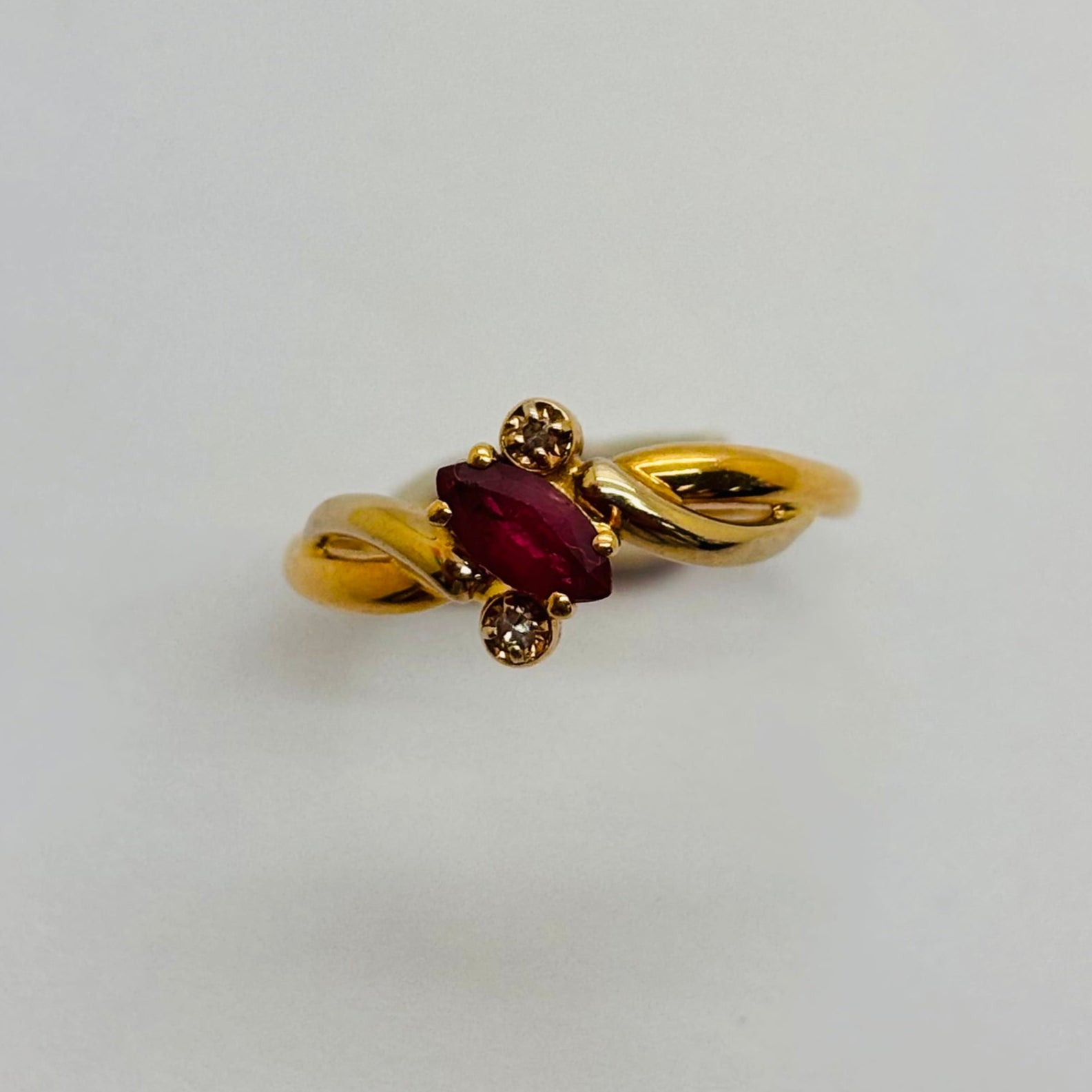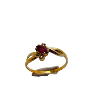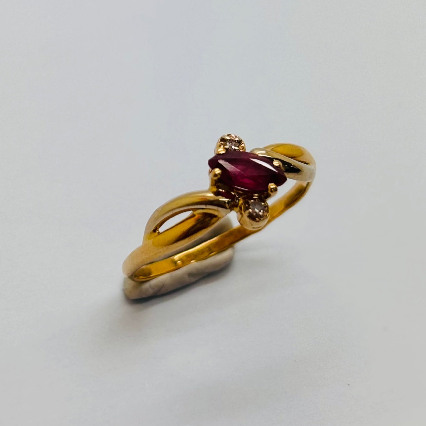Magnifique bague en ors jaune et blanc 18 carats (750/1000), ornée d’un rubis central et encadré par deux petits diamants.