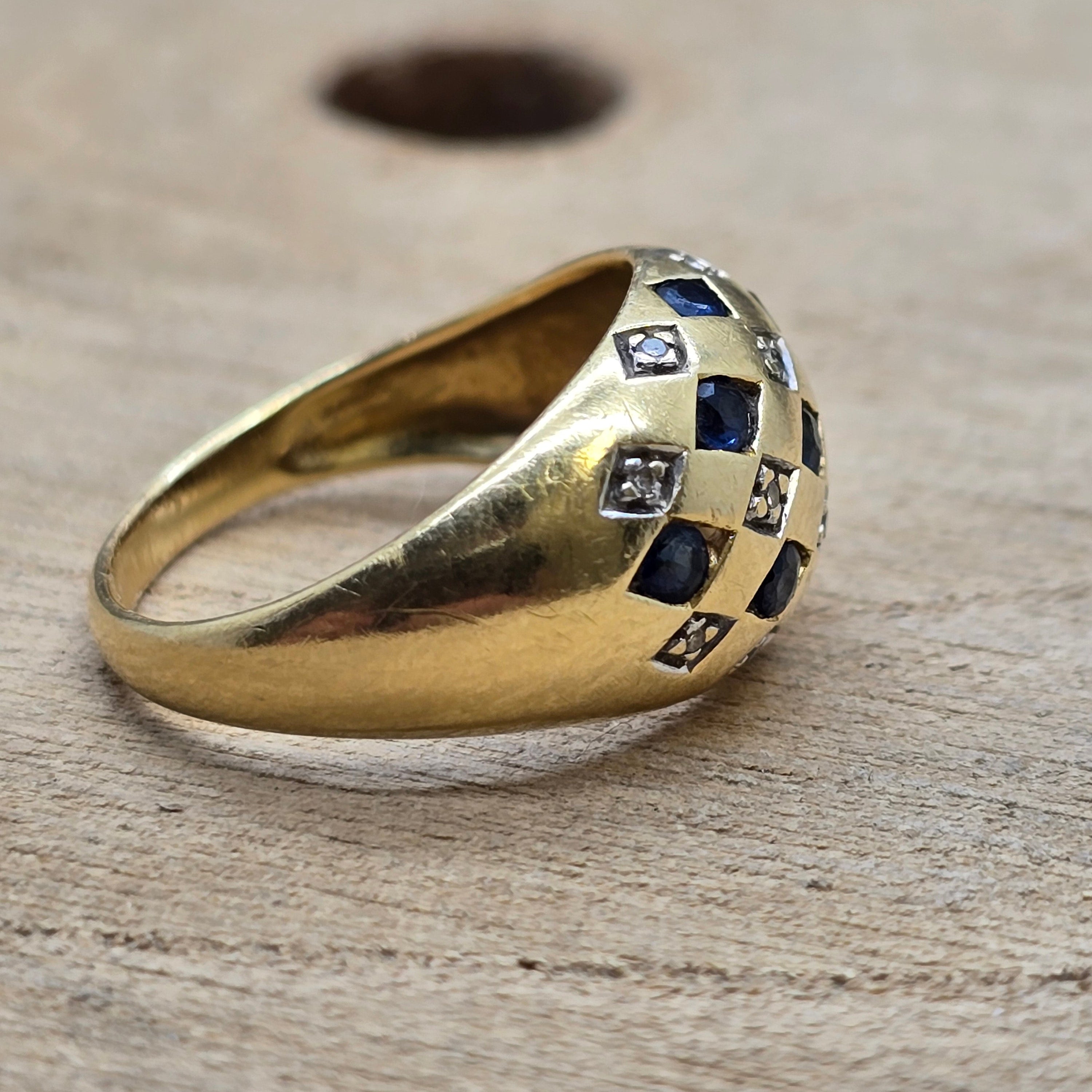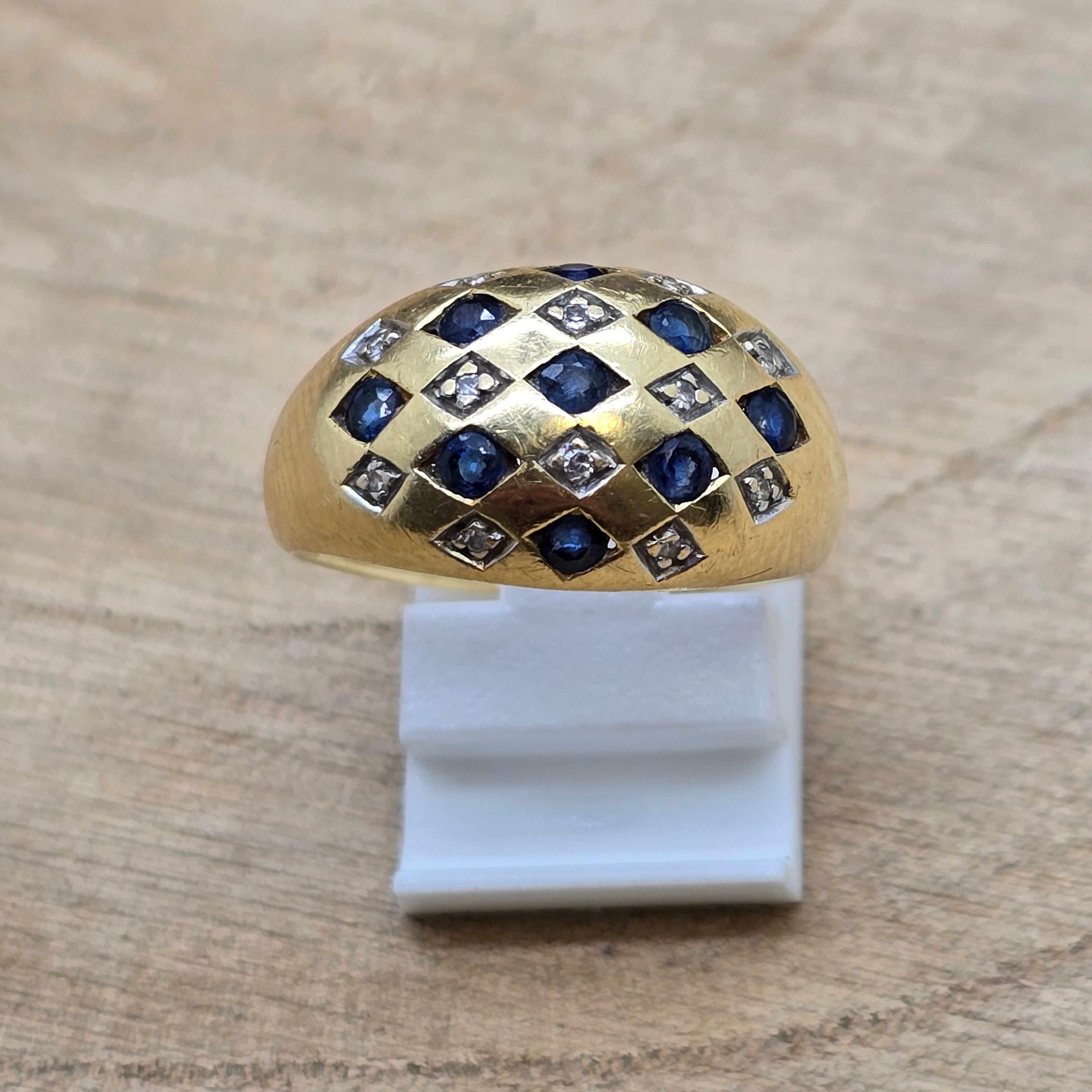 Bague en or jaune 18K avec diamants et pierres bleues - 4.78 Grs