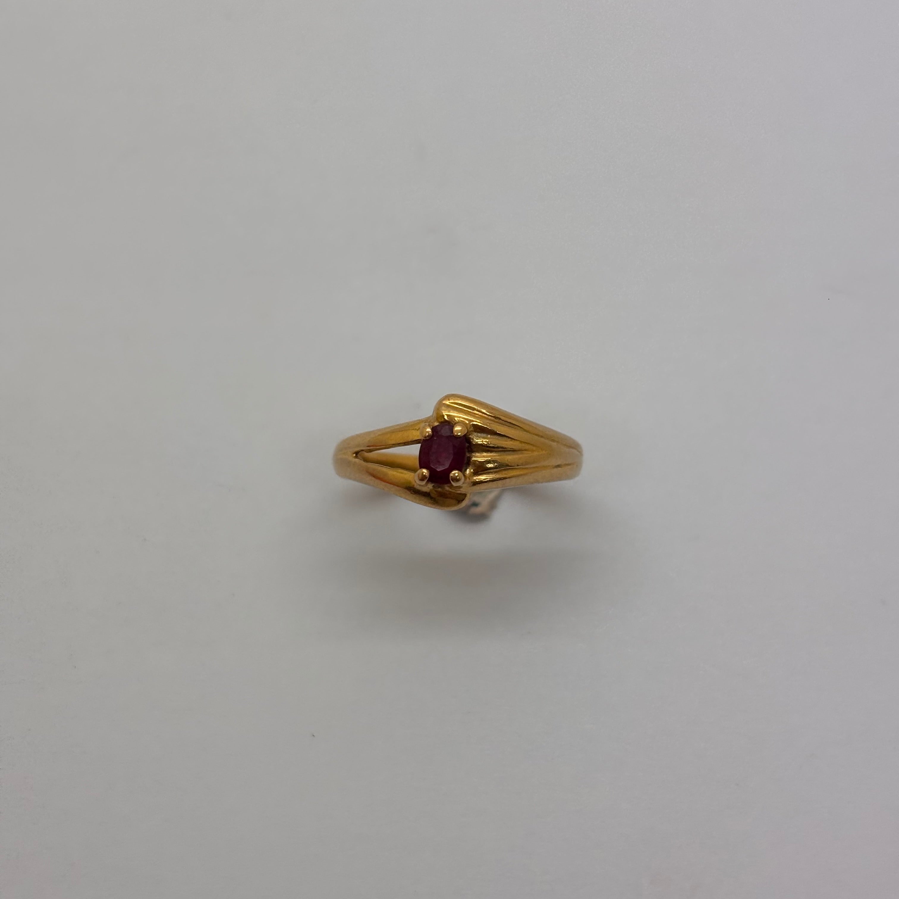 Bague empierrée en or jaune 18 carats (750/1000), poinçonnée tête d’aigle. Poids : 2,32 g, taille : 50,5. Elle comporte 1 rubis. Bon état.