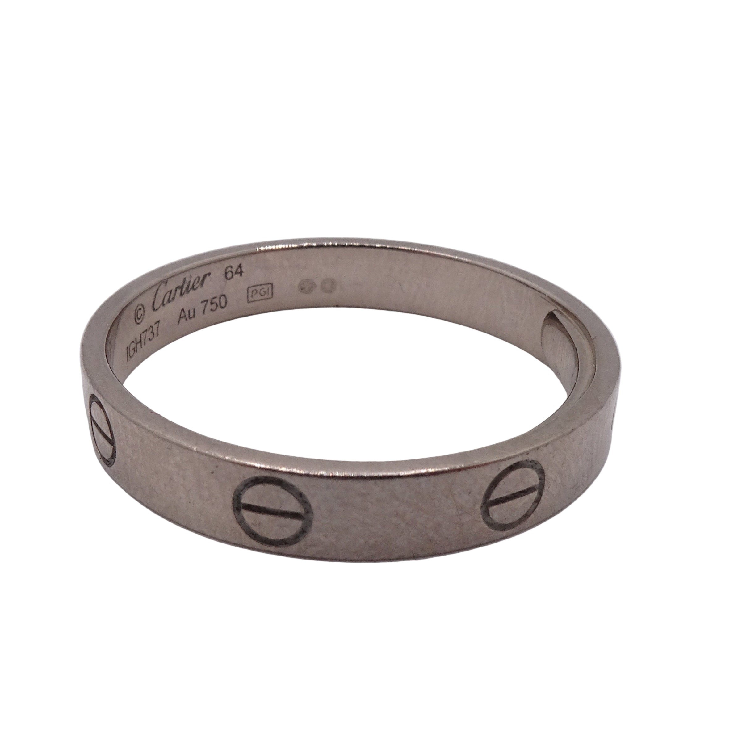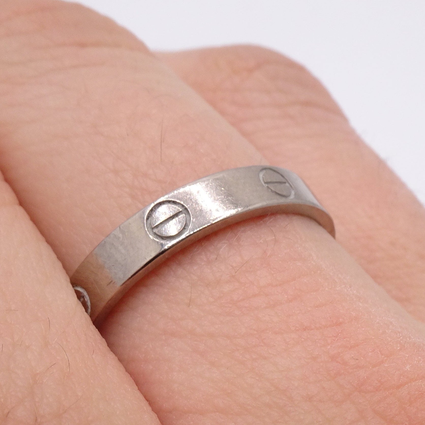 Bague signée en or blanc 18 carats (750/1000), de taille 63 et d’un poids de 4,70 g, poinçonnée 750 et en très bon état.