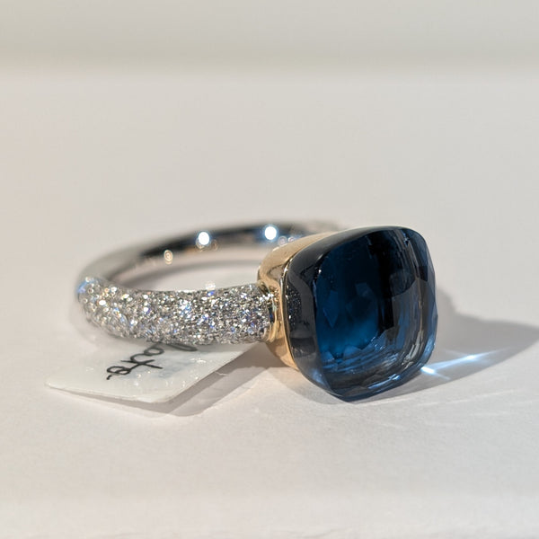Pierres : 1 topaze bleue london et 58 diamants 0.70 carats