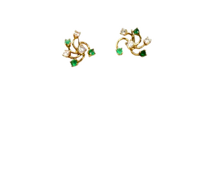 Boucles d’oreilles clou en or jaune 18 carats (750/1000), serties de 3 pierres vertes et 3 zirconiums par boucle. Modèle sans poinçon, avec fermoirs poussettes. Dimensions : 1 x 1 cm, épaisseur 0,3 cm, poids total 1,33 g. En très bon état.