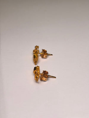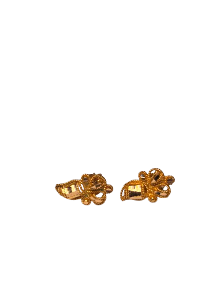 Boucles d’oreilles clou en or jaune 22 carats (titre 916/1000), fermoir poussettes. Hauteur : 2 cm ; largeur : 1 cm ; épaisseur : 0,6 mm. Poids : 2,19 g. Très bon état.