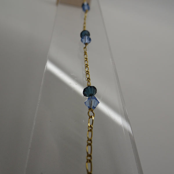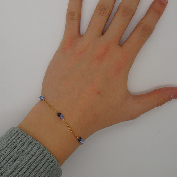 Laissez-vous séduire par la délicatesse de ce bracelet en or 750/1000, sublimé par des perles aux nuances de bleu profond et cristal. Son design raffiné allie la chaleur de l’or à l’éclat envoûtant des pierres, évoquant un ciel étoilé ou l’éclat des eaux cristallines.