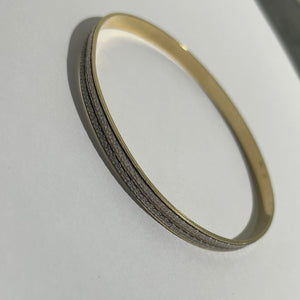 Bracelet jonc en or jaune 18 carats (750/1000), poinçonné 750, au design lisse. Il pèse 13,62 grammes et mesure 6,5 cm de diamètre avec une épaisseur de 0,1 cm. Il est orné d’un oxyde de zirconium et se ferme par un système à cliquet avec anneau ressort. Très bon état.