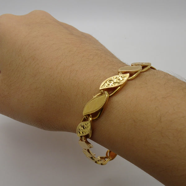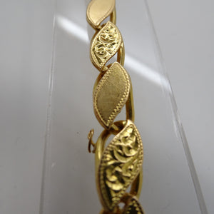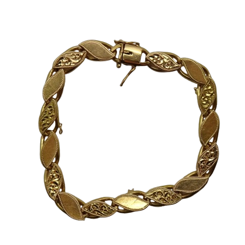 Offrez-vous une touche de luxe intemporel avec ce superbe bracelet en or 18 carats (750/1000). Son design raffiné, composé de maillons en forme de feuilles délicatement ajourées et finement texturées, apporte une élégance unique à chaque tenue. Un bijou idéal pour sublimer votre style ou pour offrir un cadeau d’exception à un être cher. Ne passez pas à côté de cette pièce d’exception !