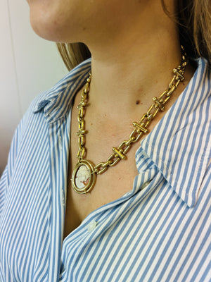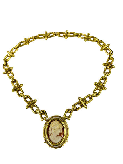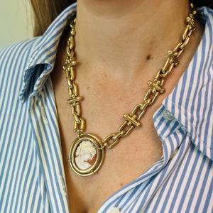 • Etat : Très Bon Etat Très beau collier, grosse Maille en jaune 14k avec Camée