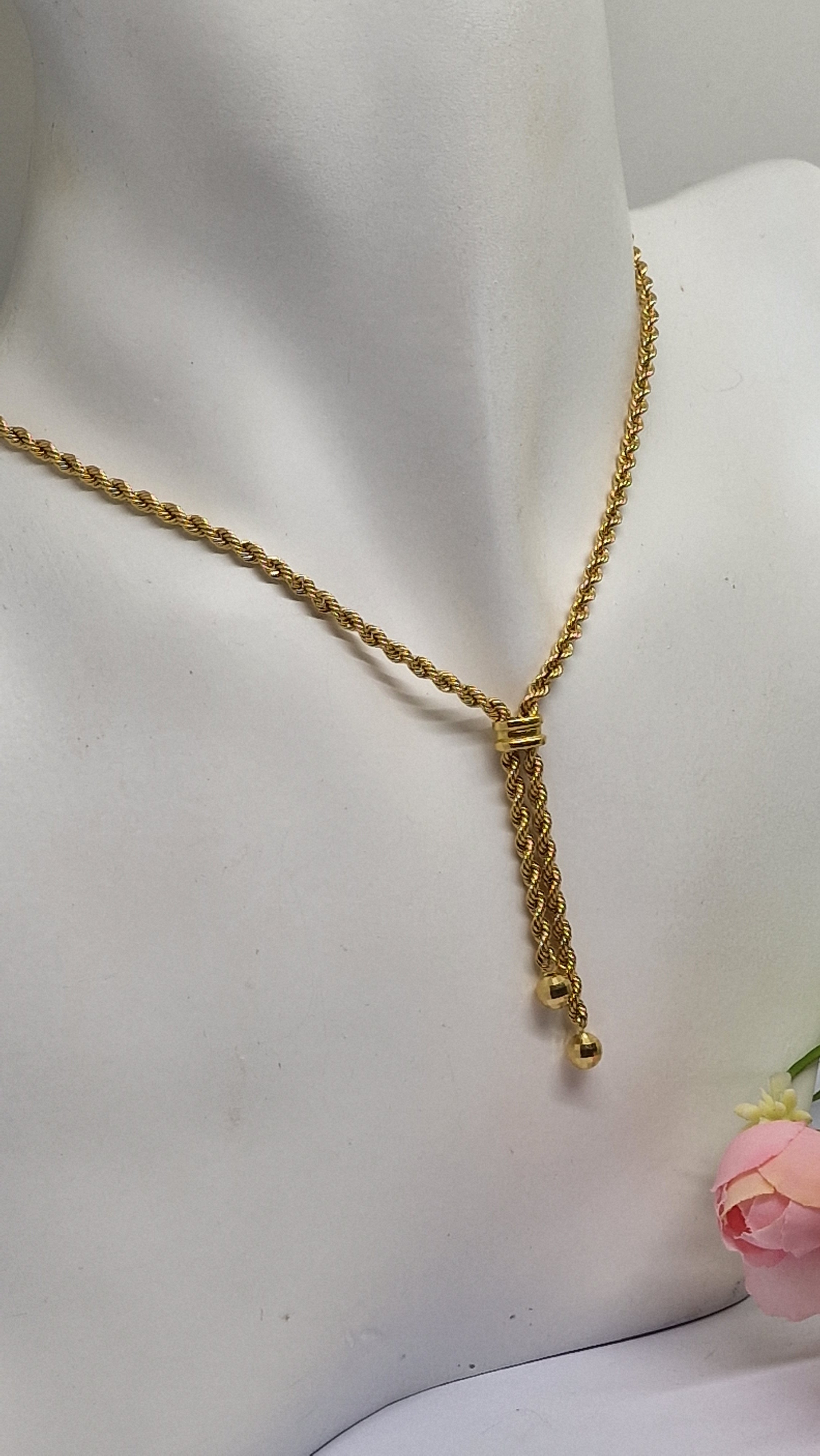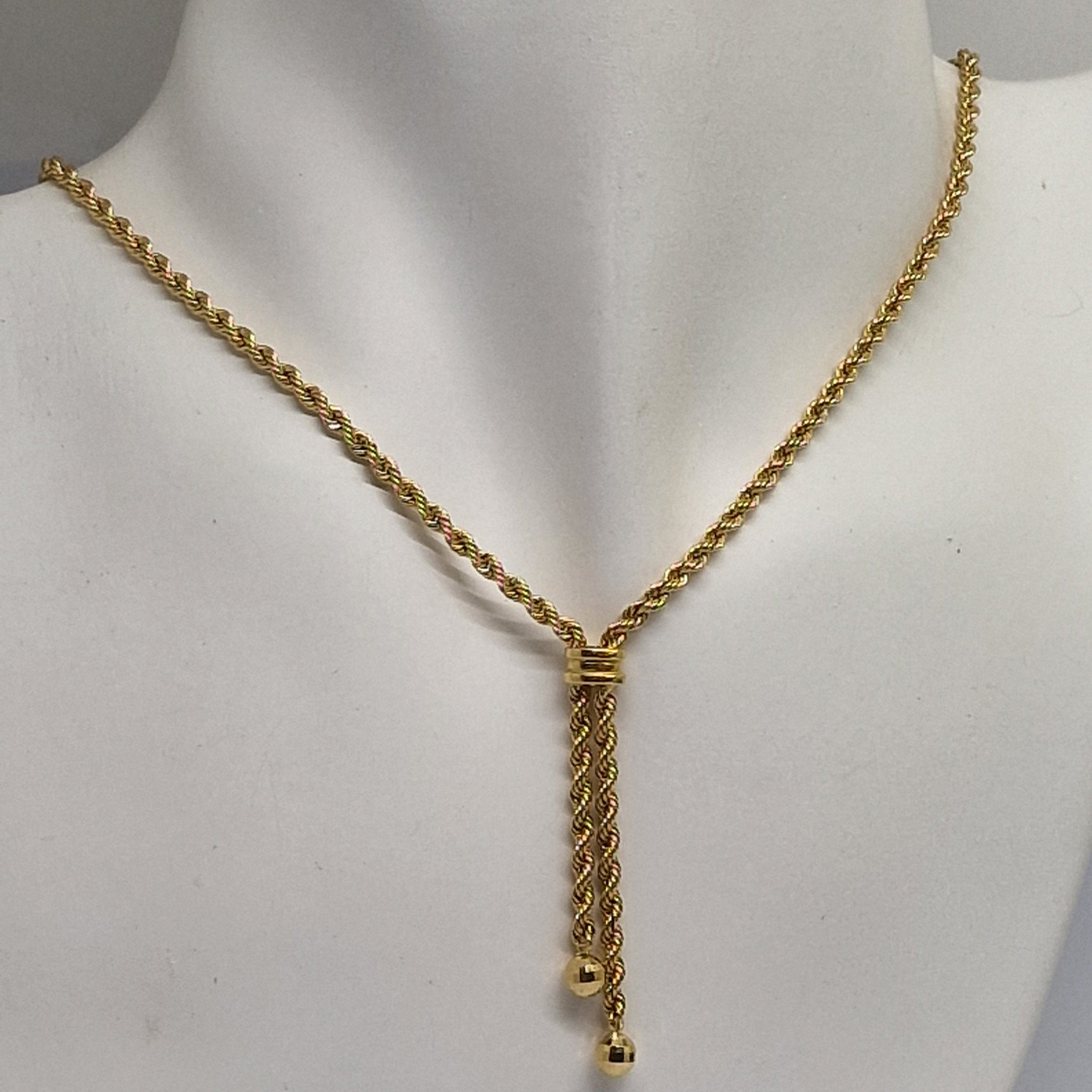 Collier de type princesse en or jaune 18 carats (750/1000), à maille corde torsadée, muni d’un fermoir à anneau ressort. Il porte les poinçons 750 et tête d’aigle, pèse 5,80 grammes, mesure 45 cm de longueur et se trouve en très bon état.