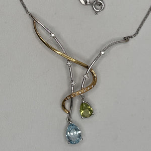 Sublime collier très léger empierré de diamants et pierres semi précieuses