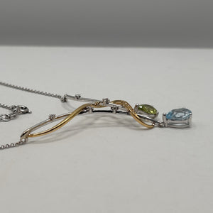 Pierre : 5 diamants et 7 petits brillants et 1 péridot et 1 topaze