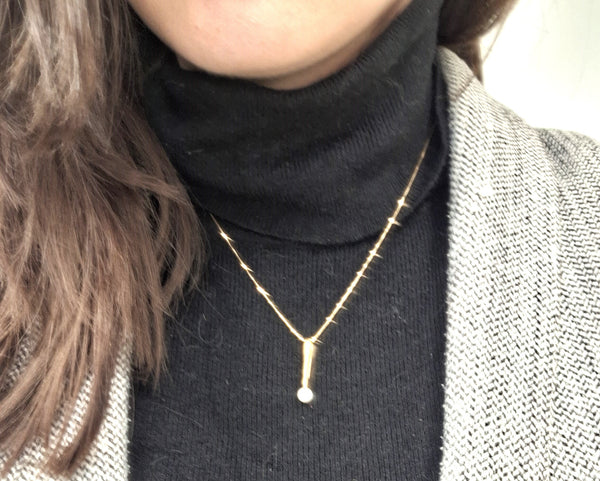 Très jolie collier avec pendentif sertie d'une perle de culture en or jaune 18 carats.