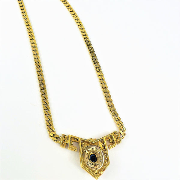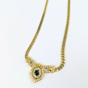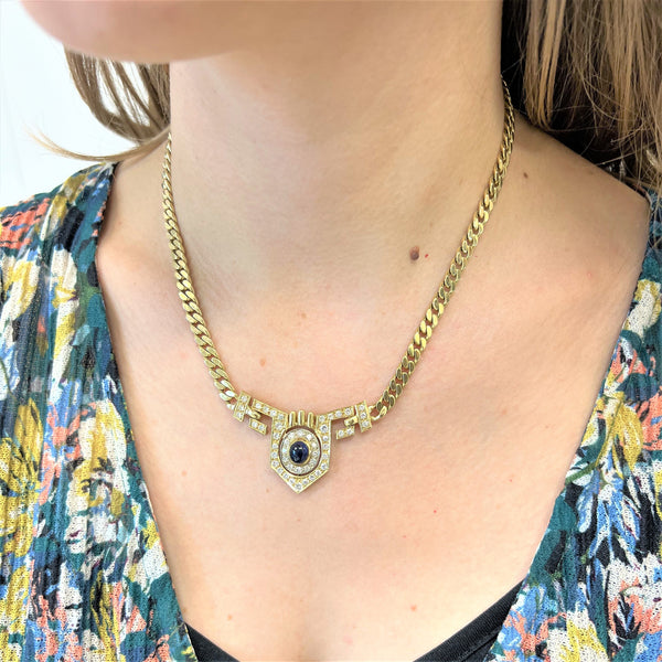 Très Joli collier en or jaune 18k avec saphir Cabochon et diamants