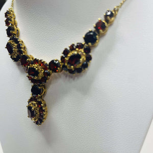 Collier de type princesse en or jaune 18 carats (750/1000) présente une maille forçat fine et élégante. Il est orné de 47 grenats, apportant une touche de couleur profonde et raffinée. Long de 41 cm, il mesure 1 mm de largeur et d’épaisseur, pour un poids de 14,40 grammes. Équipé d’un fermoir mousqueton et poinçonné 750, il se trouve en très bon état général.