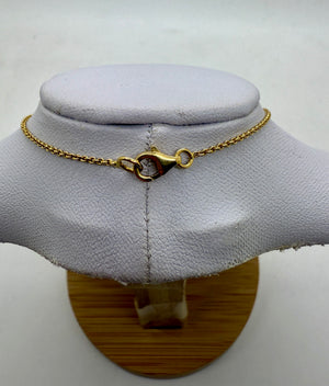 Collier princesse en or jaune 18 carats (750/1000), maille forçat, poinçonné 750, fermoir mousqueton. Longueur : 38 cm ; largeur et épaisseur : 2 mm. Poids : 5,72 g. Sertie de six oxydes de zirconium. Très bon état.