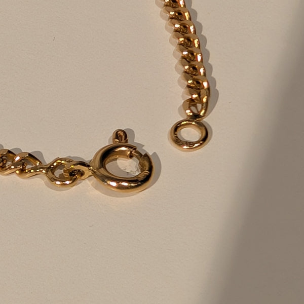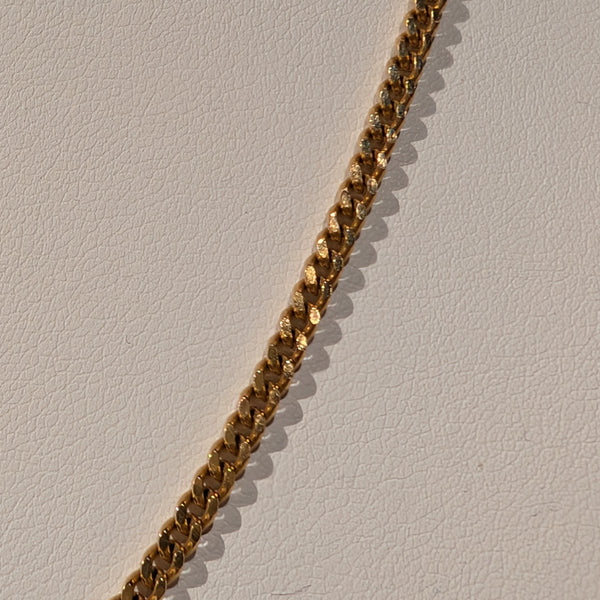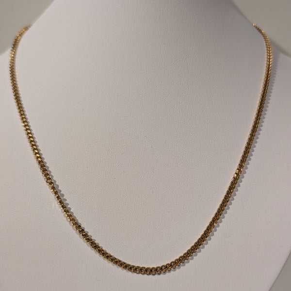 Collier de type princesse est réalisé en or jaune 18 carats (titrage 750/1000), sans poinçon. Il présente une maille gourmette et mesure 45 cm de longueur, 0,2 cm de largeur et 0,1 cm d’épaisseur, pour un poids de 12,06 grammes. Le fermoir est de type anneau ressort. Ce collier est en très bon état.