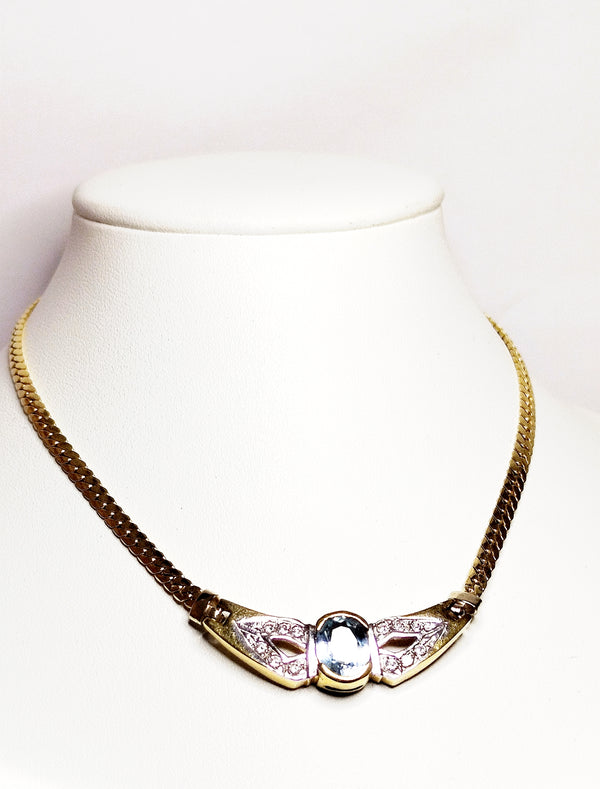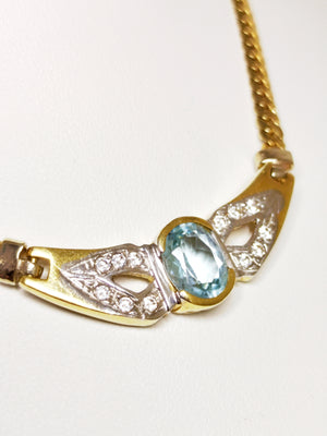 Collier de type Princesse en or jaune 18 carats (750/1000), poinçonné 750, en très bon état. Il est composé d’une maille anglaise fine et élégante, avec un fermoir mousqueton assurant une fermeture sécurisée. Le collier mesure 41 cm de long pour un poids de 10,30 grammes, et est orné d’une aigue-marine.tificat d'authenticité.